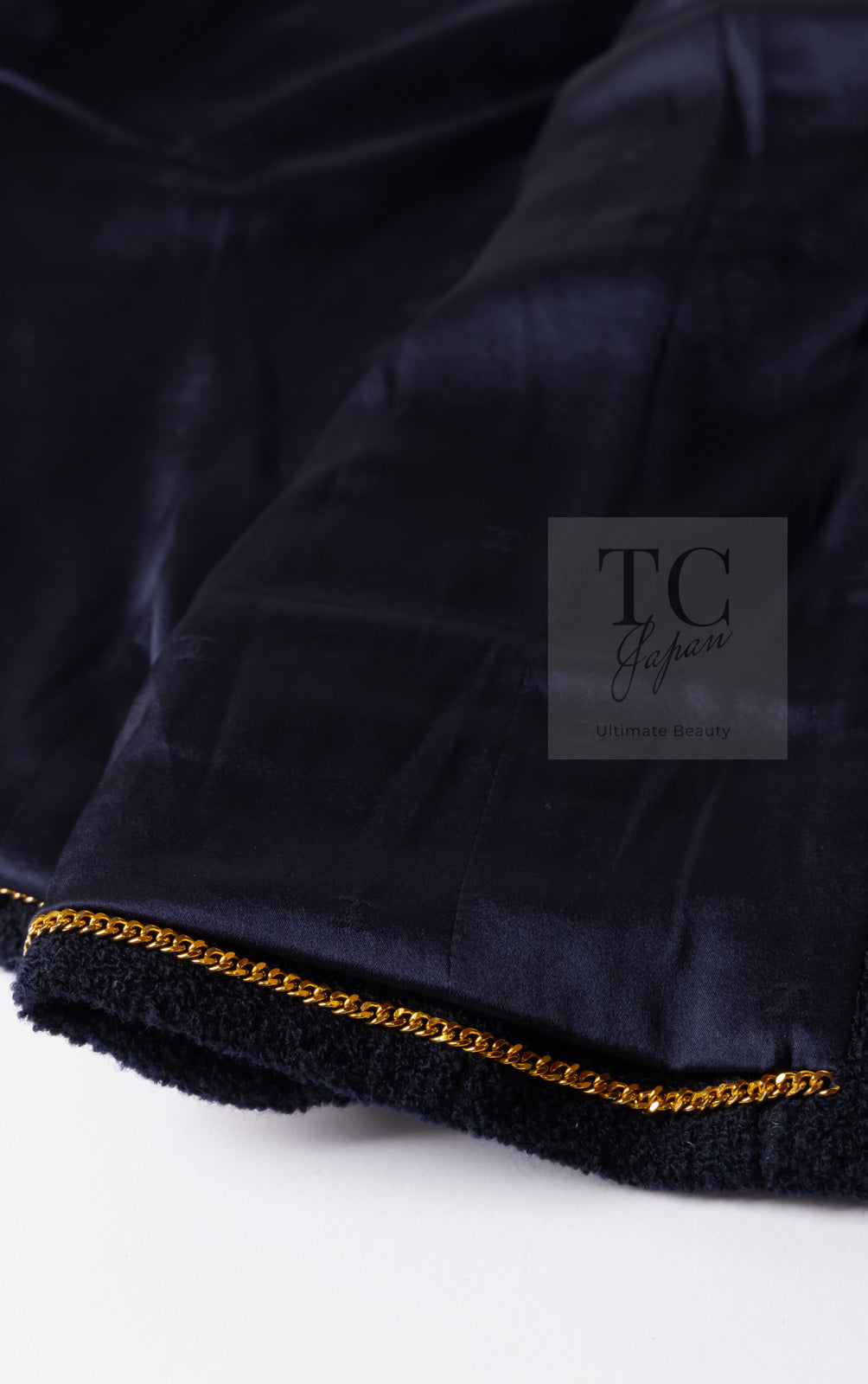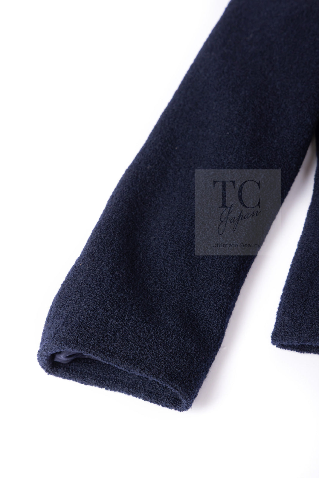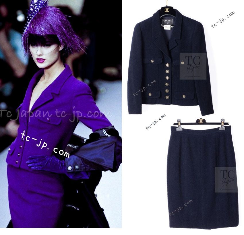CHANEL 95A Vintage Dark Navy CC Buttons Wool Tweed Jacket Skirt Suit 44 シャネル ヴィンテージ ダーク ネイビー ココボタン ウール ダブル ツイード ジャケット スカート スーツ 即発