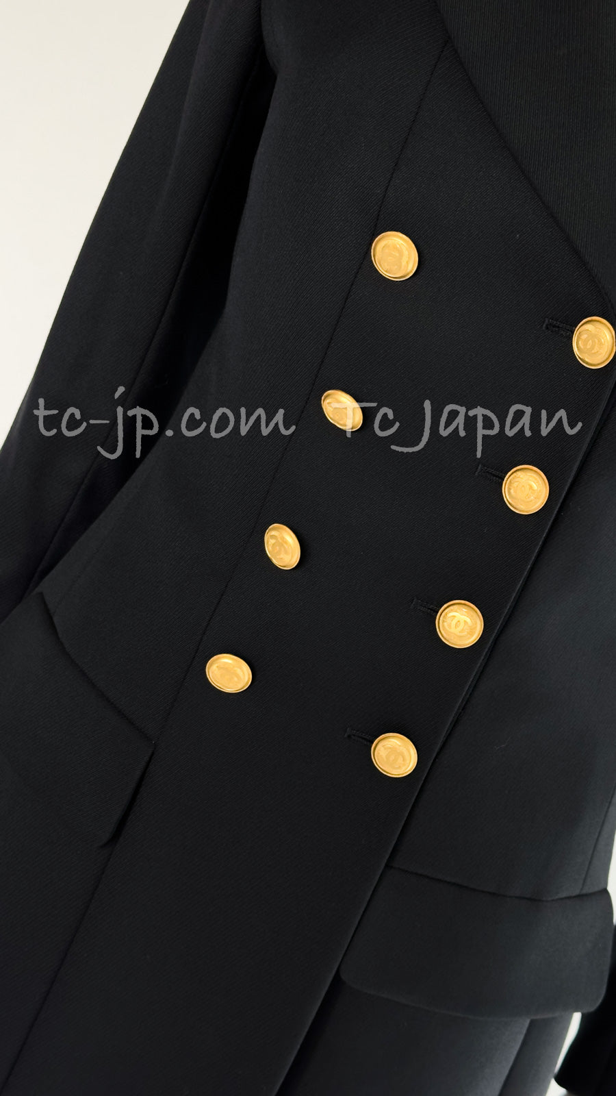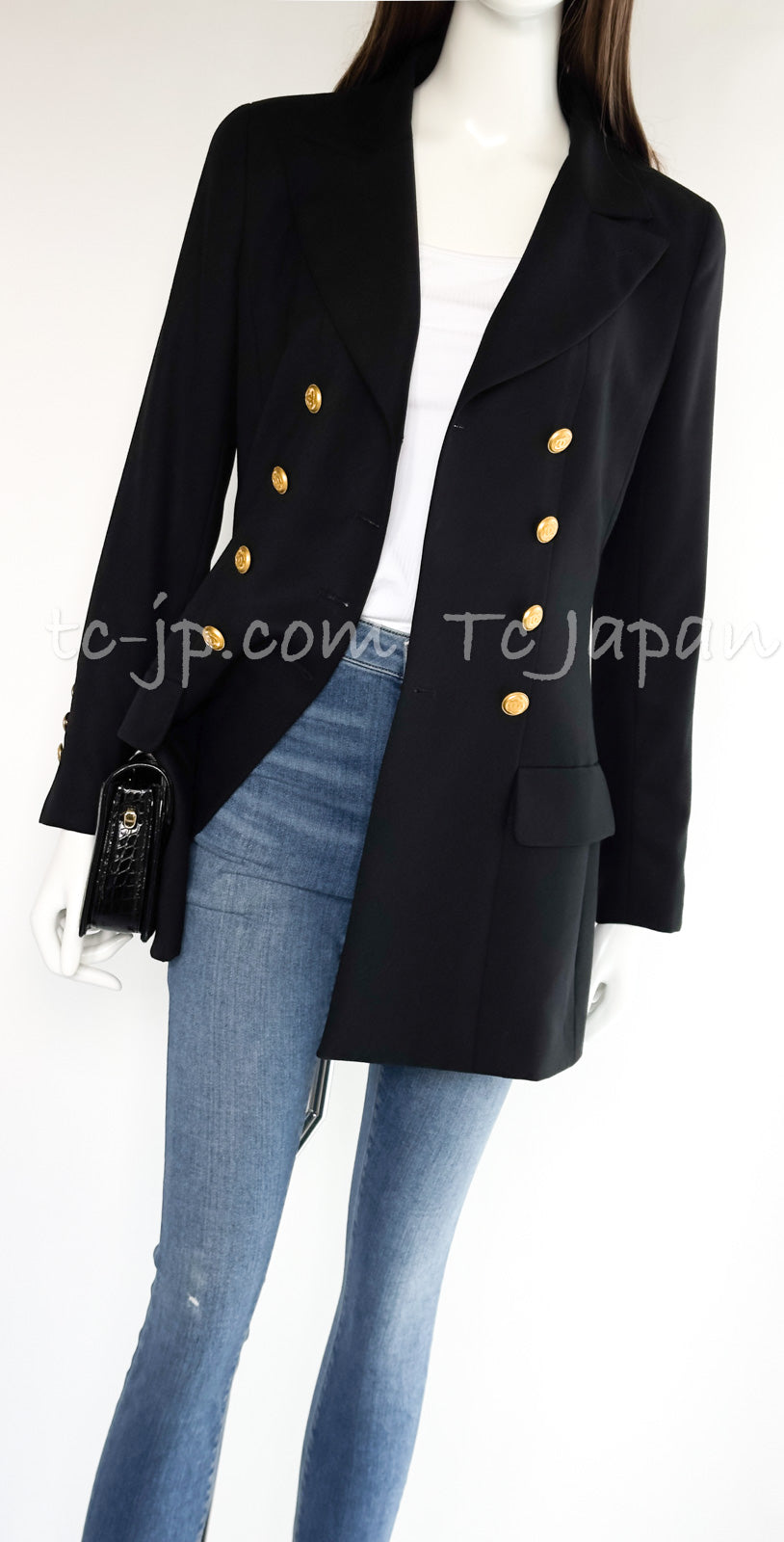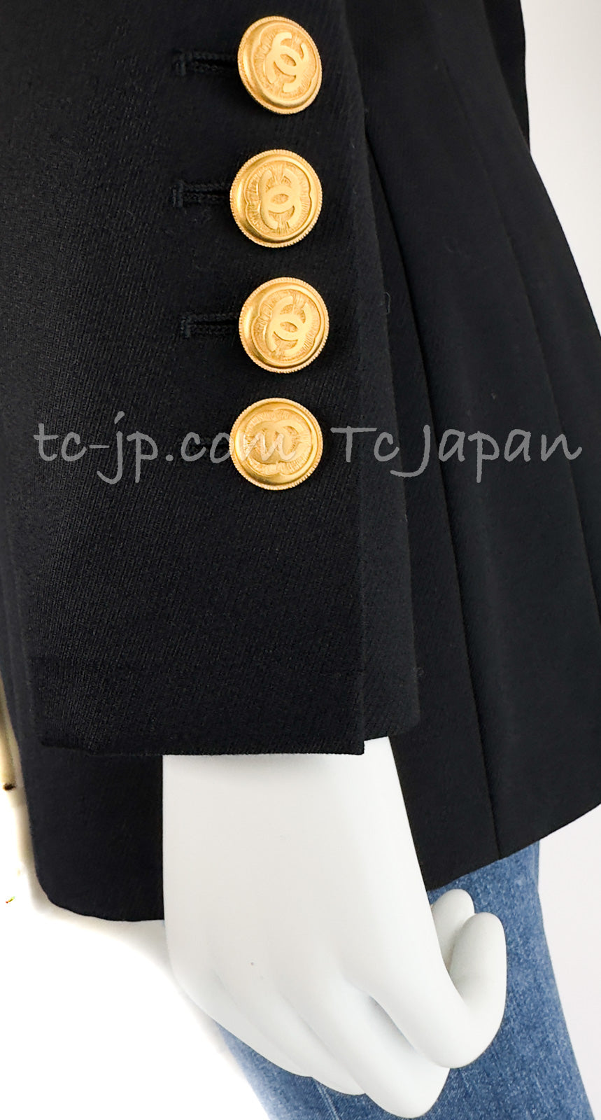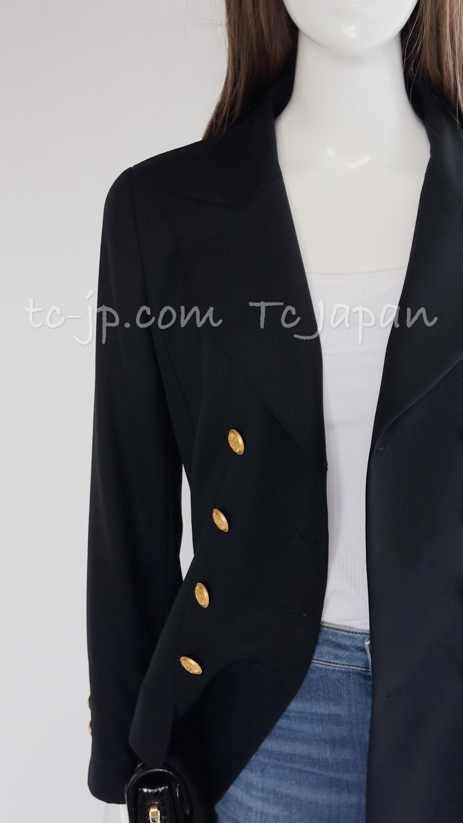 CHANEL 96A Vintage Black Wool 100 Gold CC Logo Buttons Jacket 38 シャネル ヴィンテージ ブラック ウール100% ゴールド CCボタン ジャケット 即発