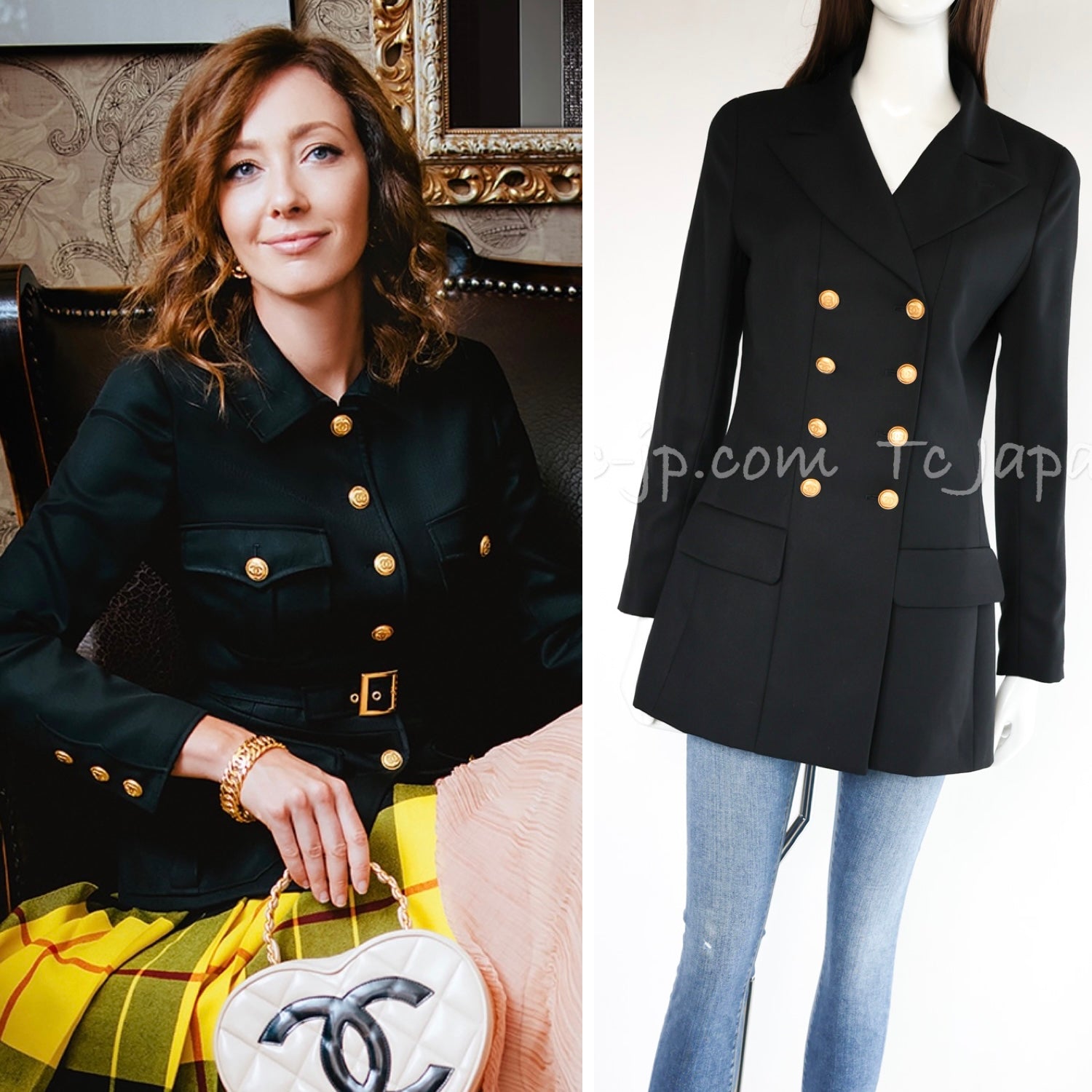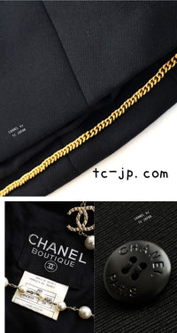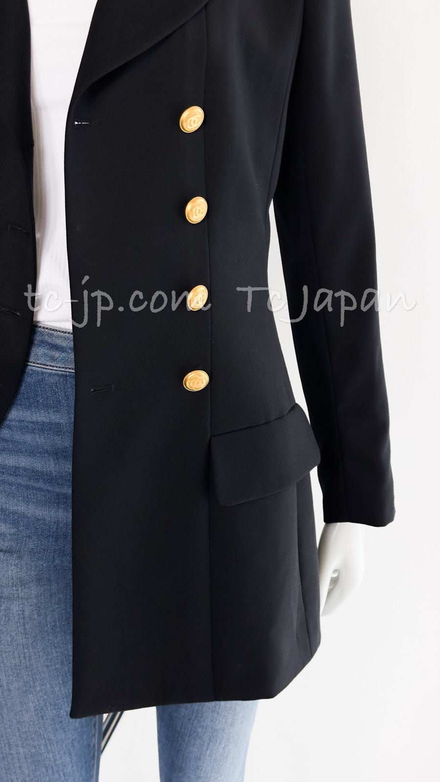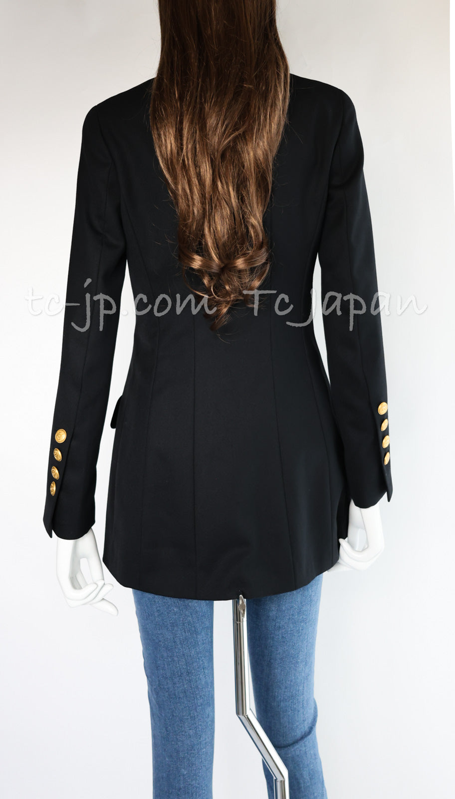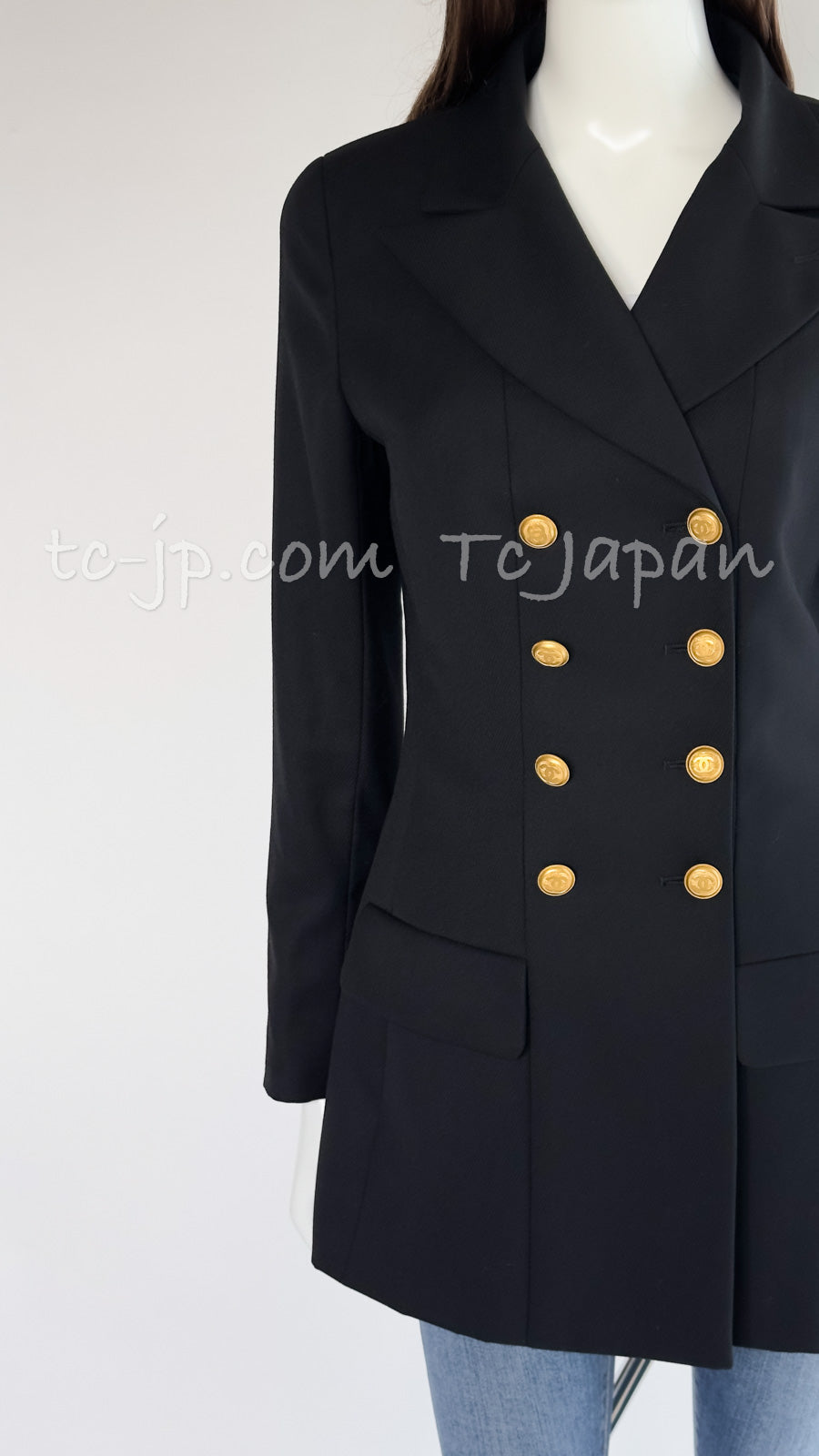 CHANEL 96A Vintage Black Wool 100 Gold CC Logo Buttons Jacket 38 シャネル ヴィンテージ ブラック ウール100% ゴールド CCボタン ジャケット 即発