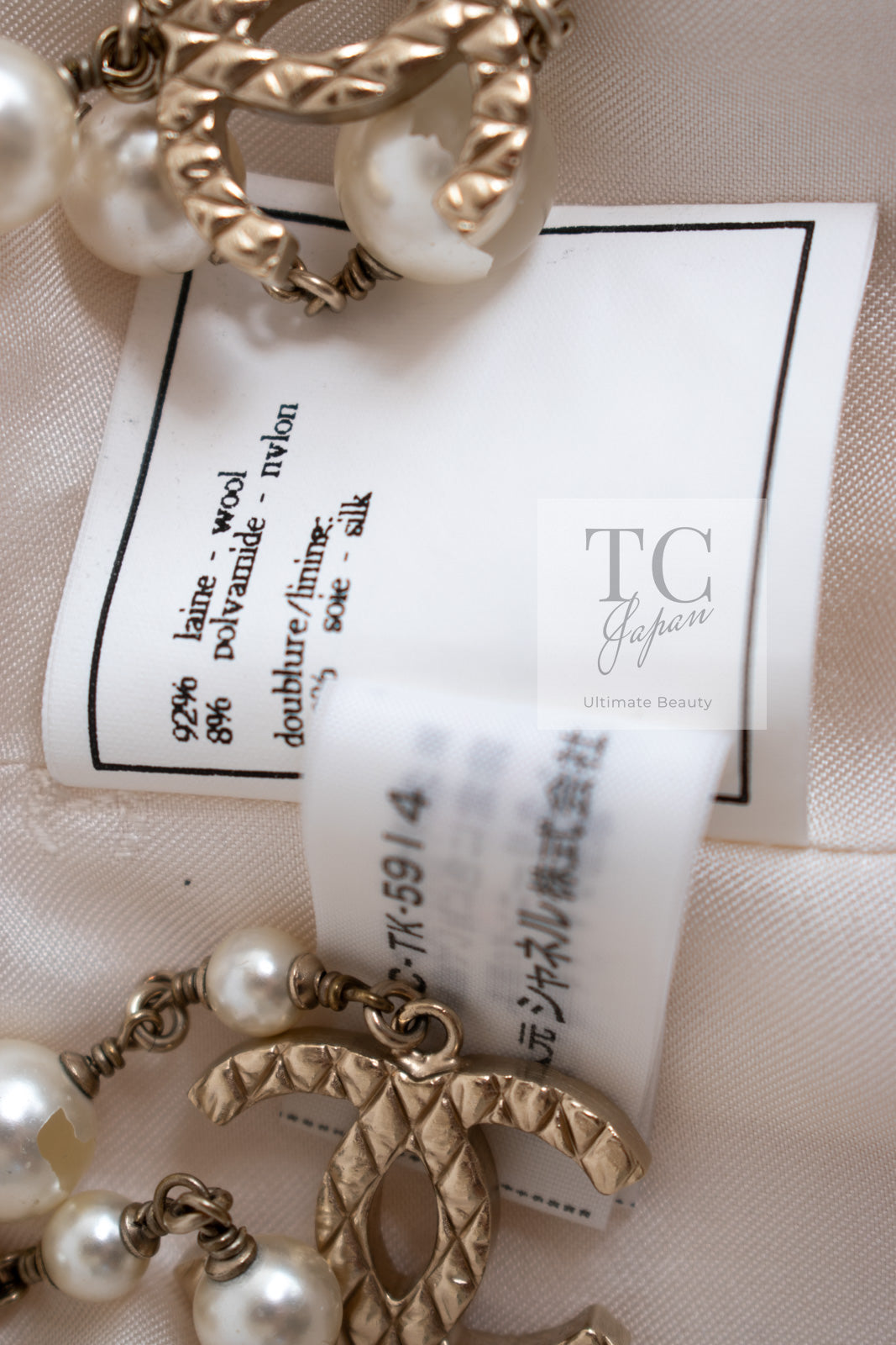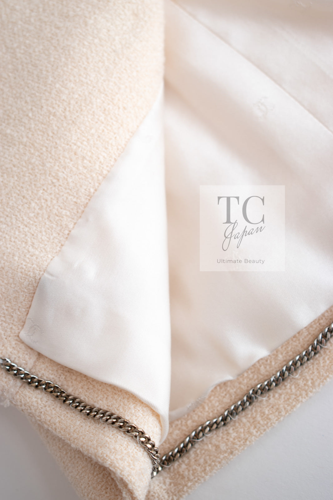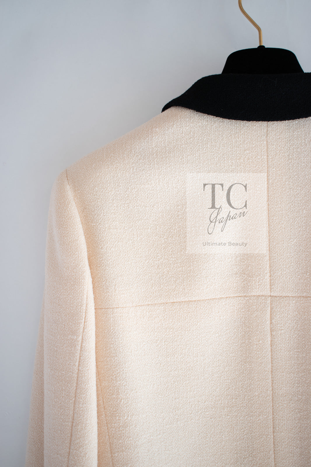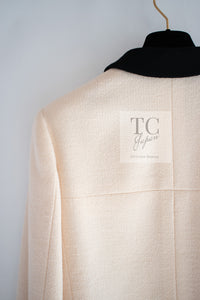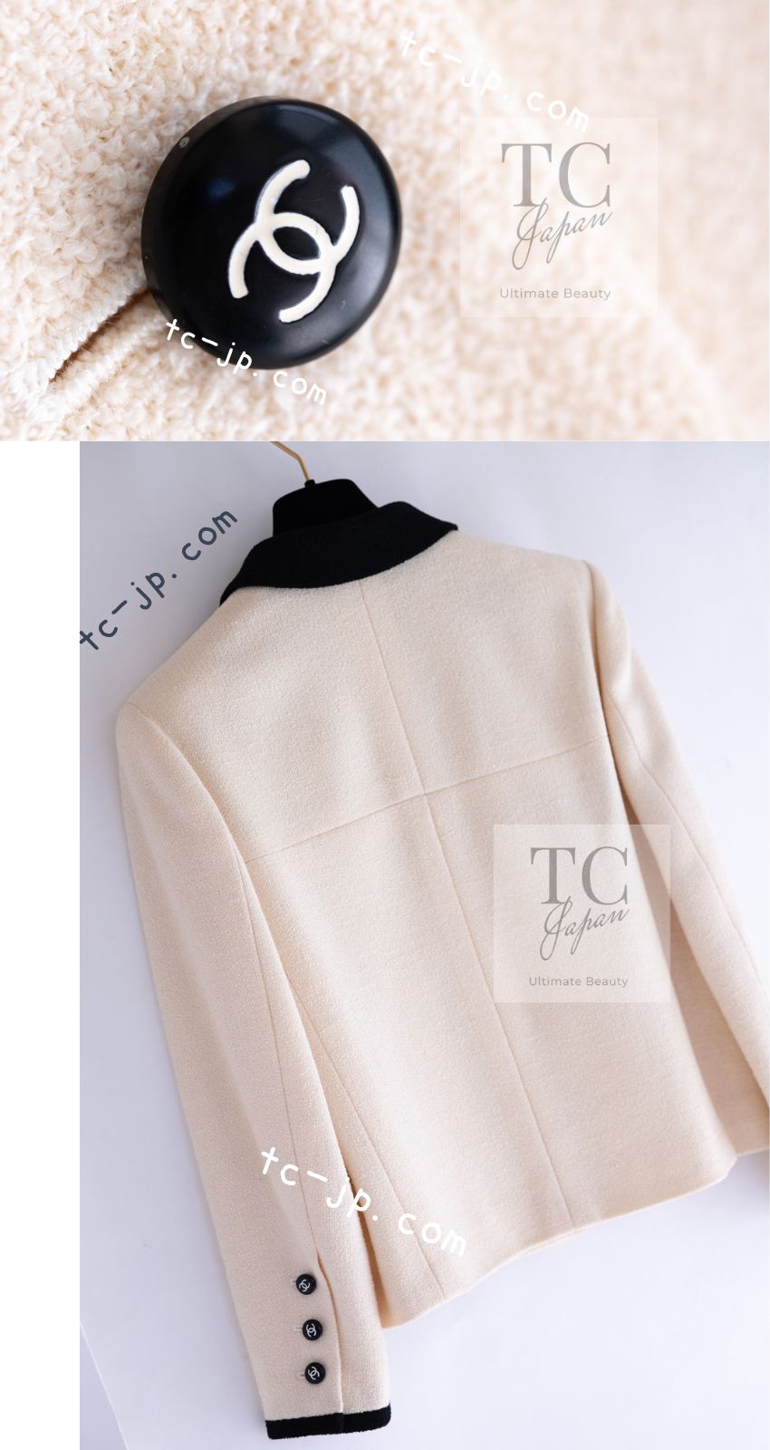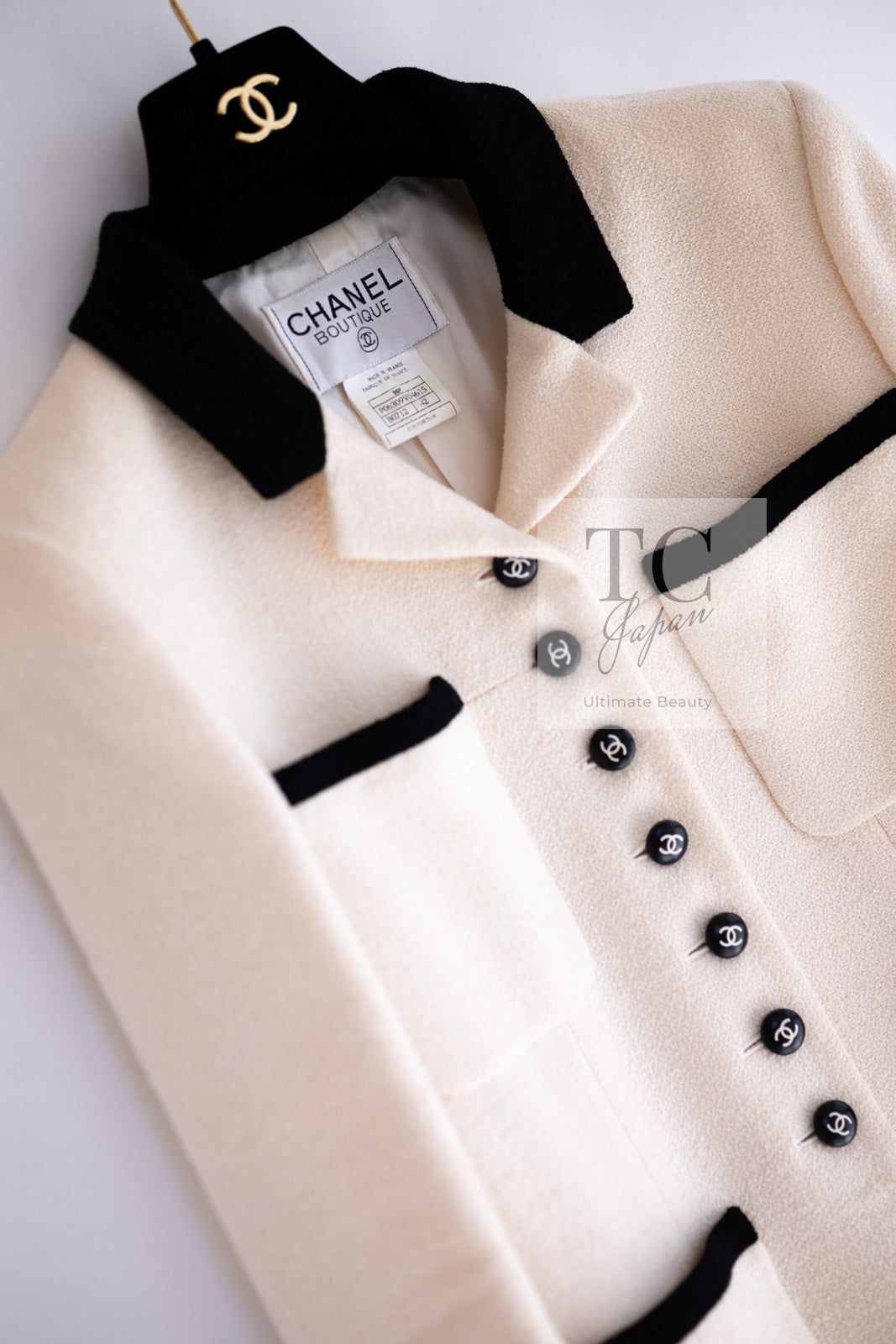 CHANEL 96S Creme Ivory Black Trim Wool Tweed Jacket 42 シャネル クリーム アイボリー ブラック トリム ウール ツイード ジャケット 即発