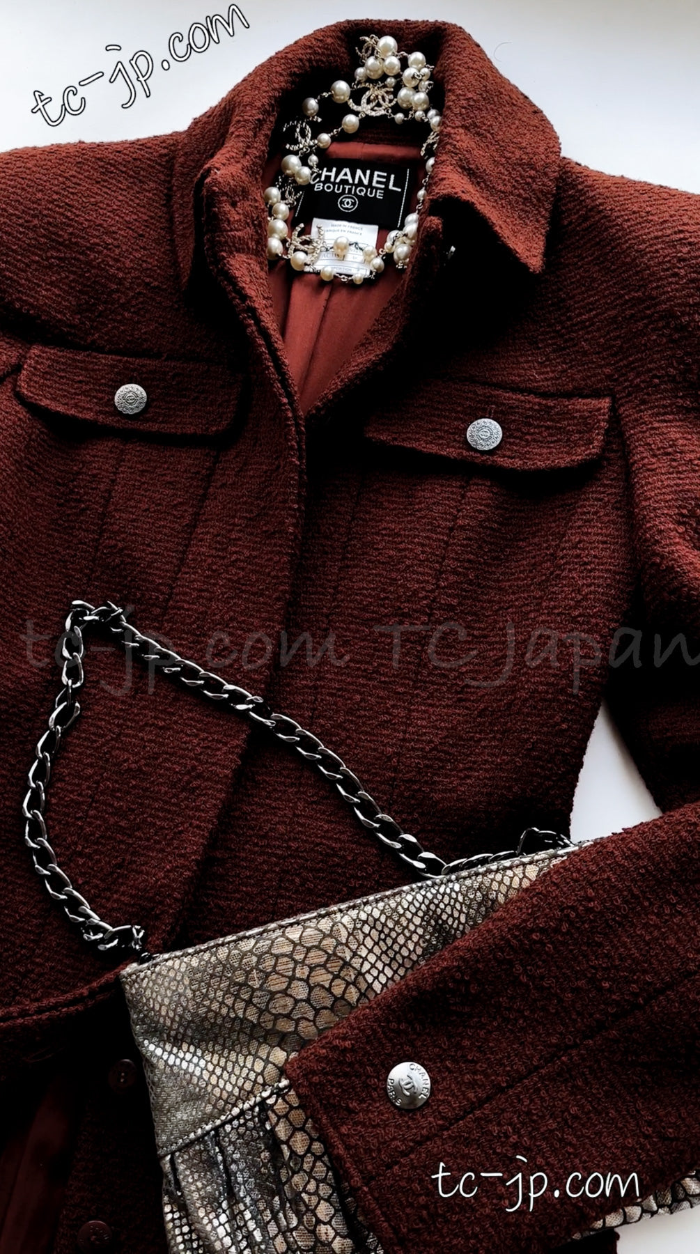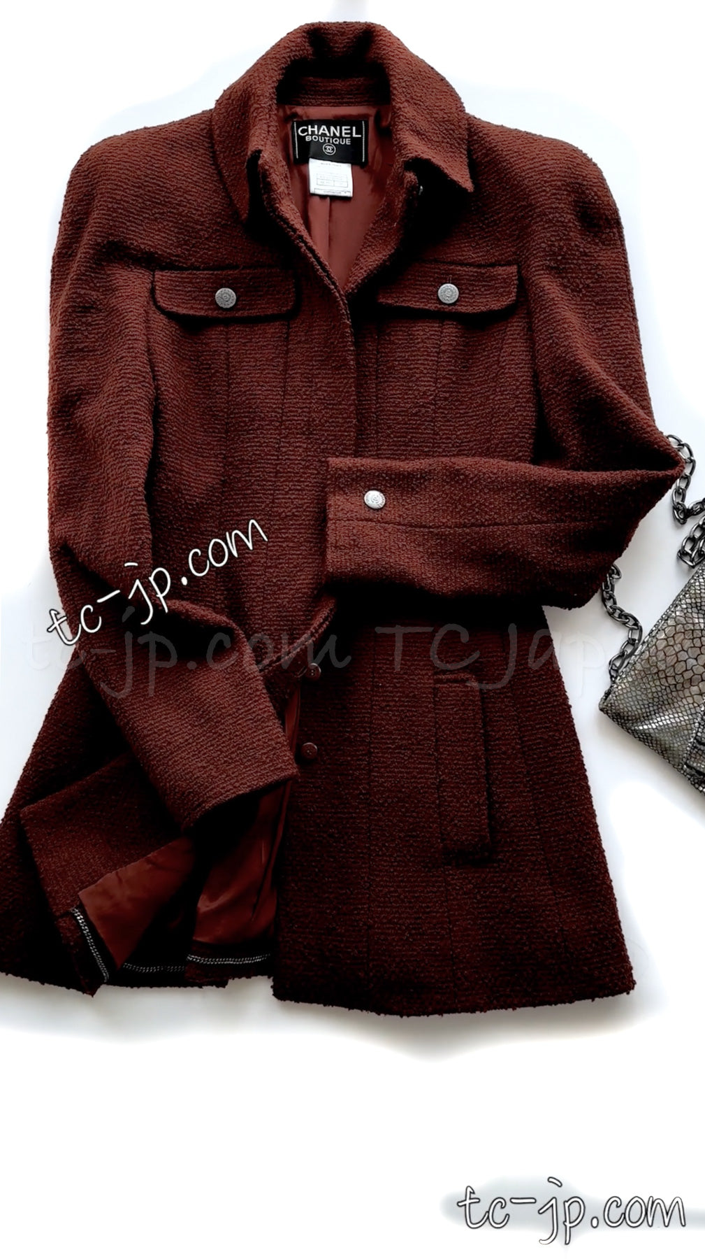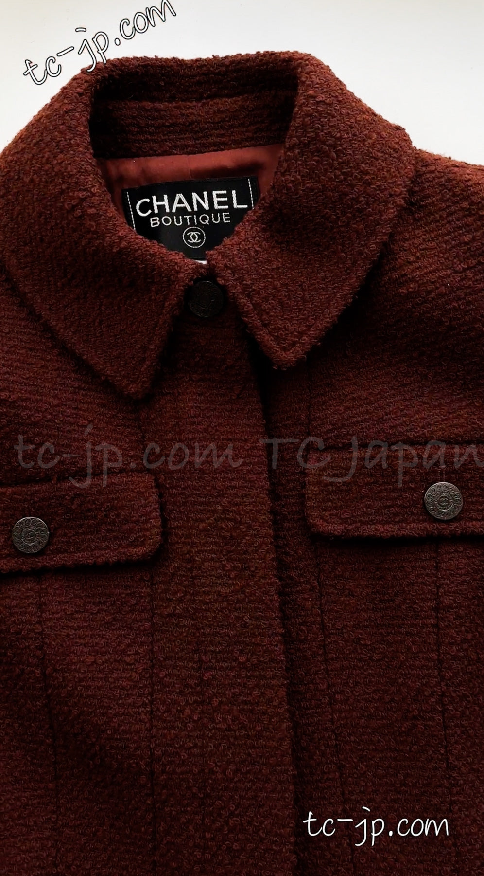 CHANEL 97A Choco Brown Wool Tweed Jacket 36 38 シャネル チョコ ブラウン ウール ツイード ジャケット 即発