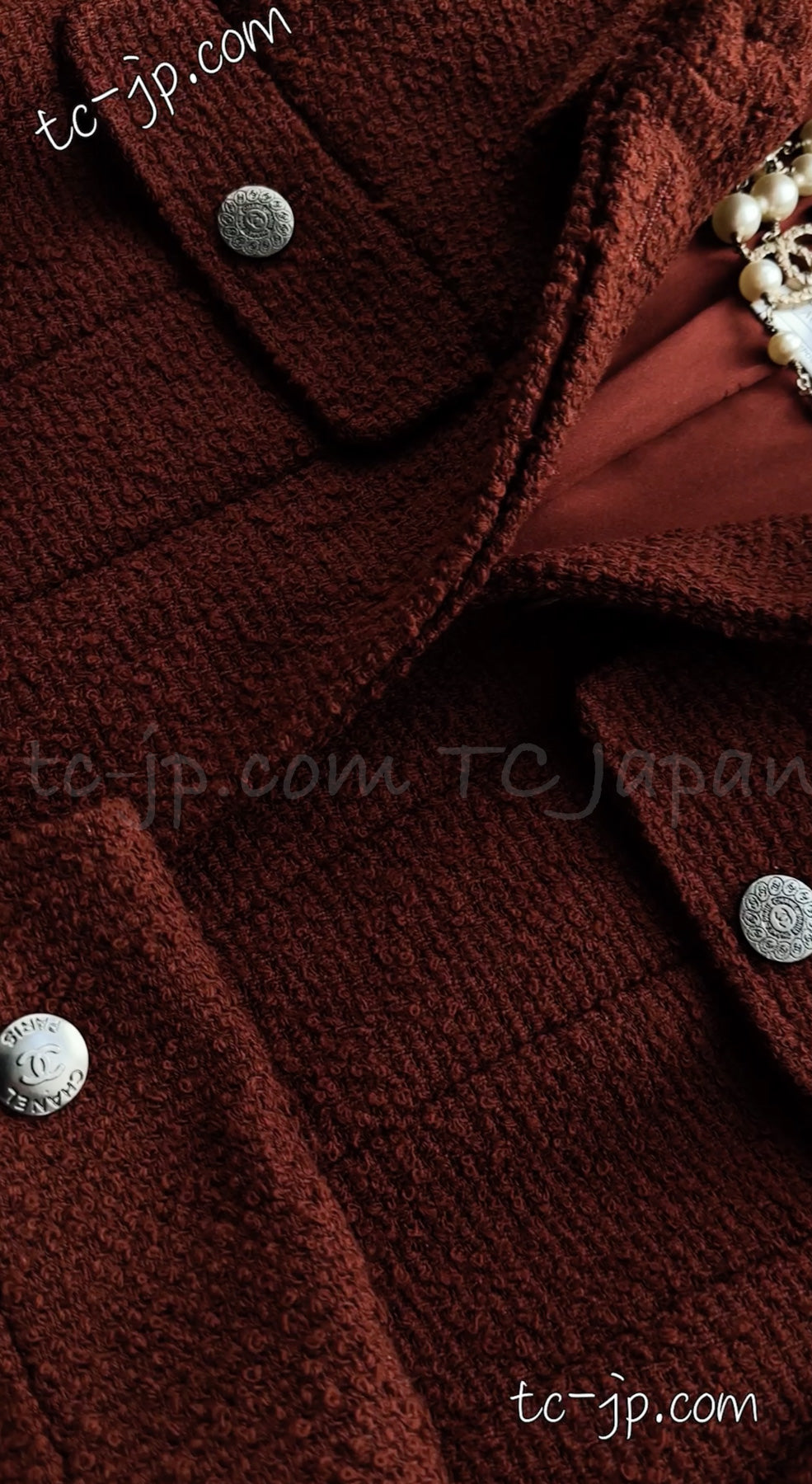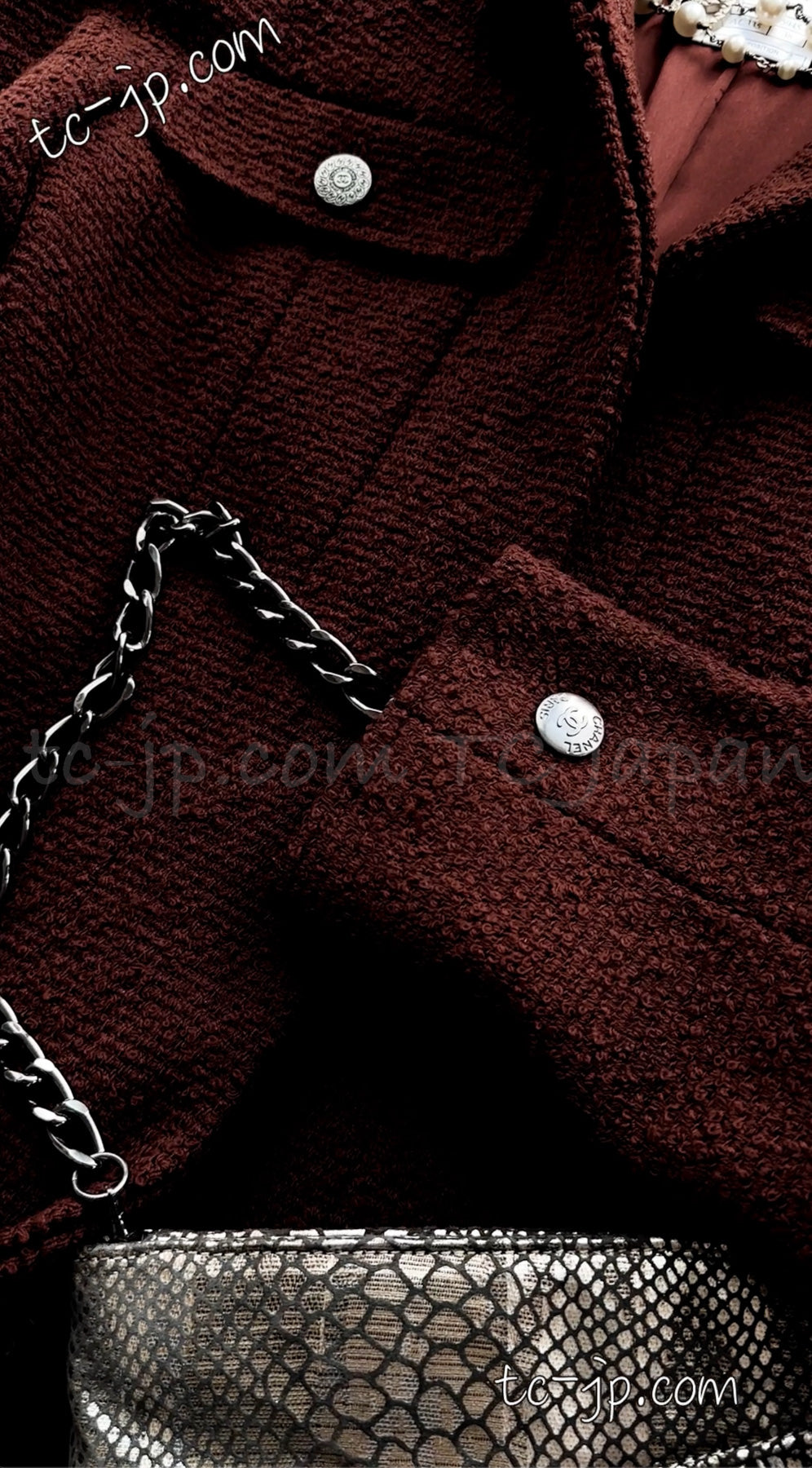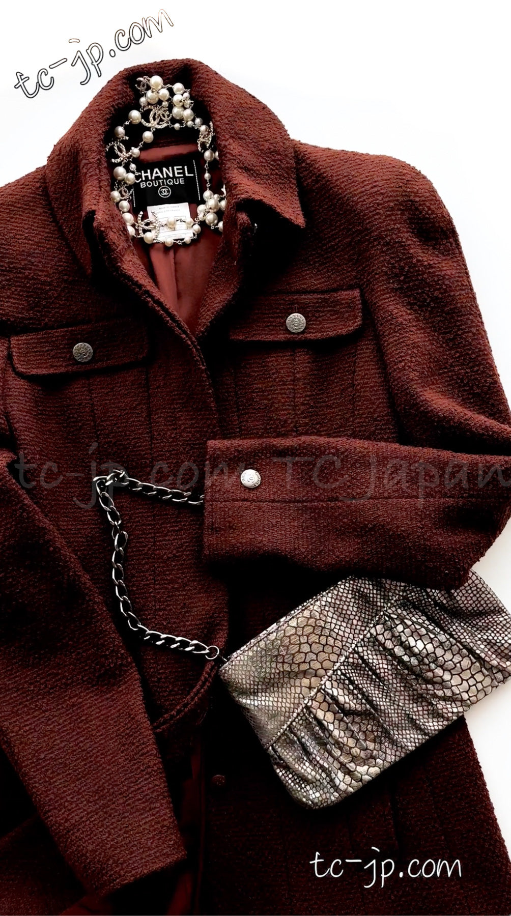 CHANEL 97A Choco Brown Wool Tweed Jacket 36 38 シャネル チョコ ブラウン ウール ツイード ジャケット 即発