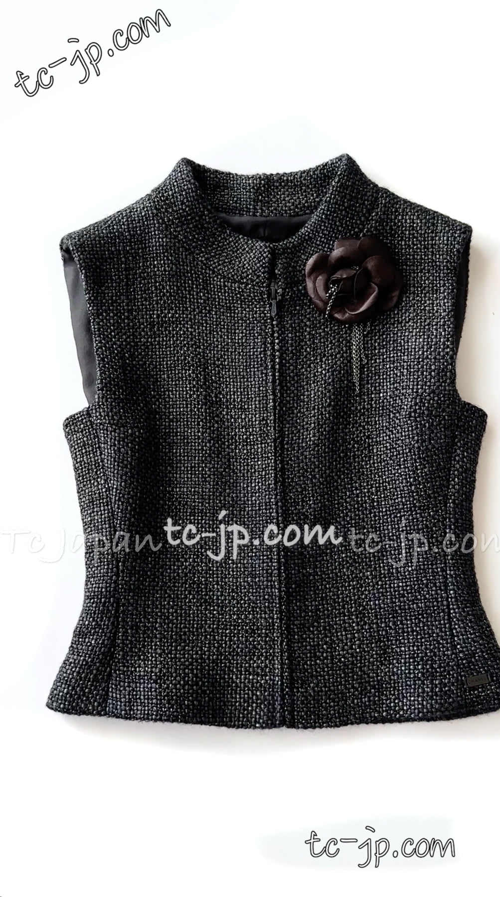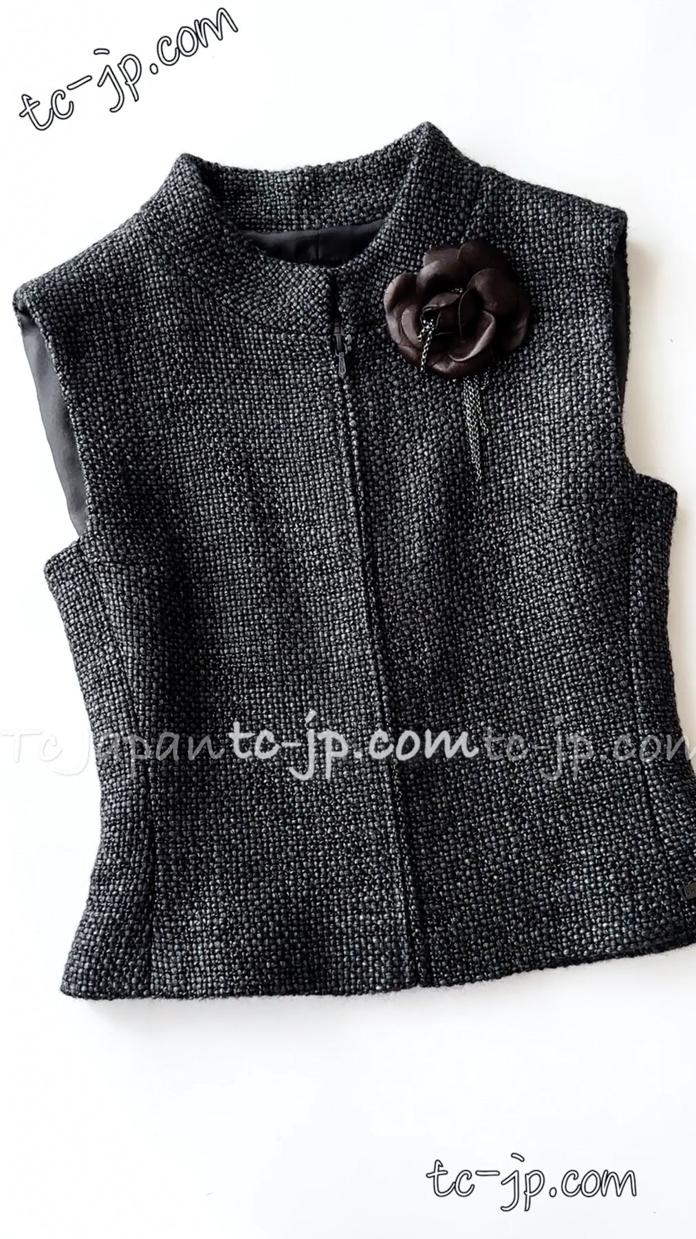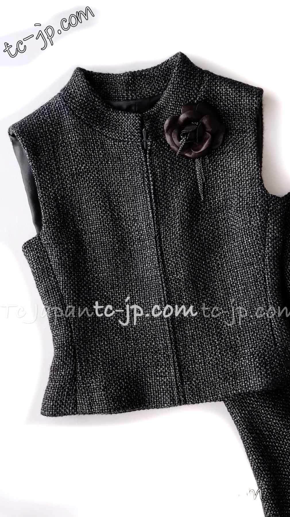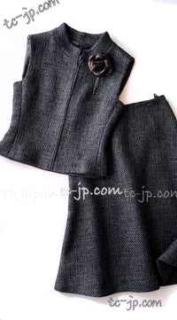 CHANEL 00A Dark Gray Zipper Setup Vest Skirt 34 36 シャネル 訳あり!ダークグレー・ジップアップ・ベスト・セットアップ・スカート 即発