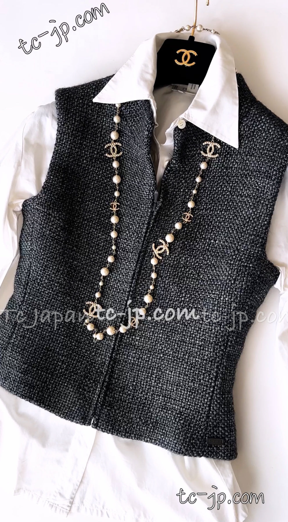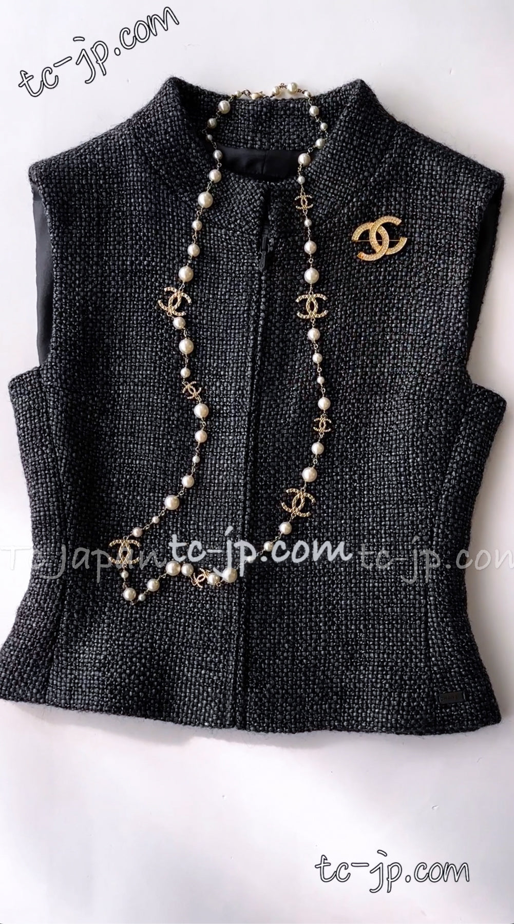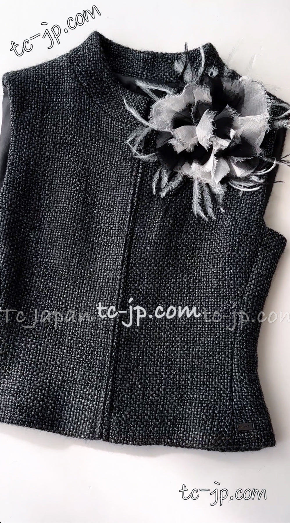 CHANEL 00A Dark Gray Zipper Setup Vest Skirt 34 36 シャネル 訳あり!ダークグレー・ジップアップ・ベスト・セットアップ・スカート 即発