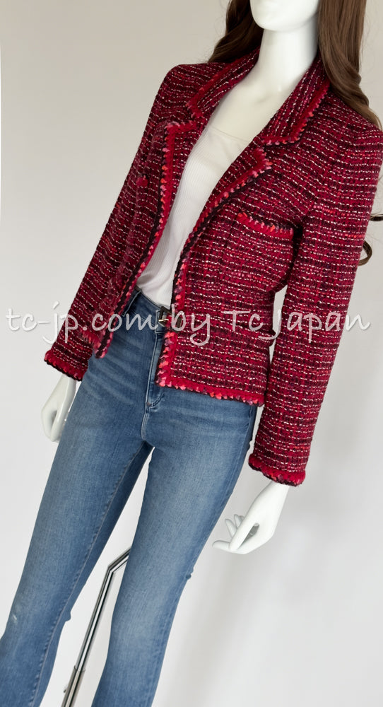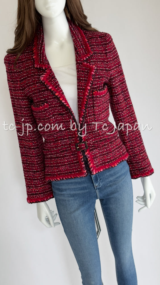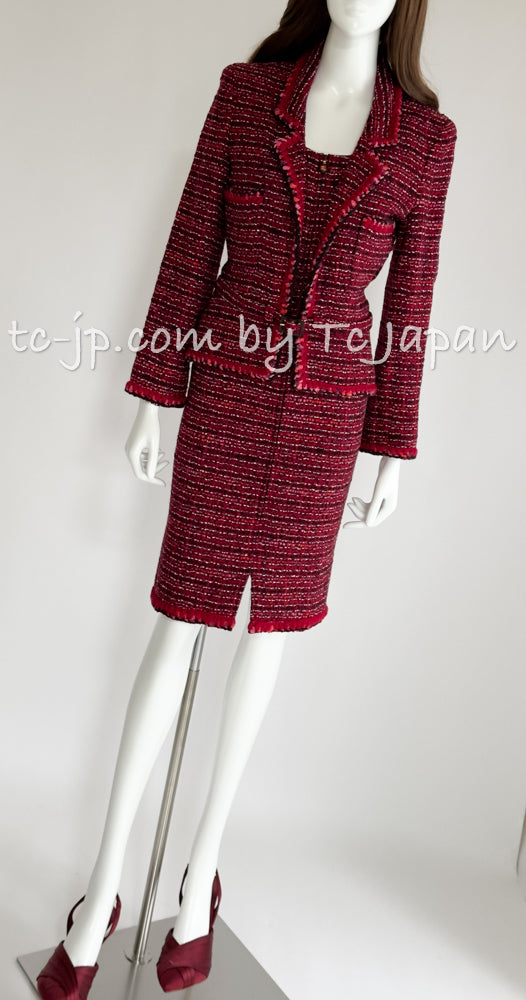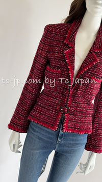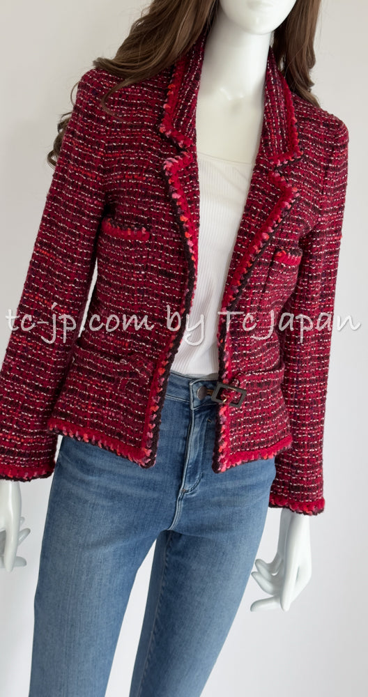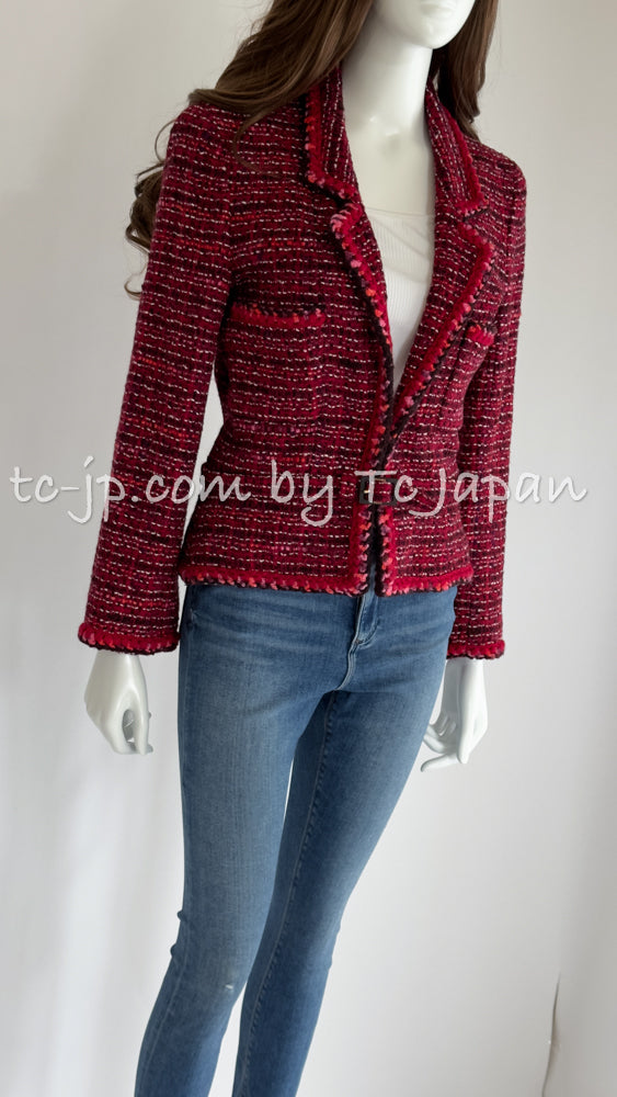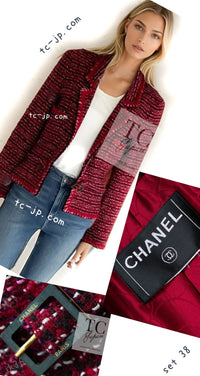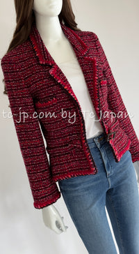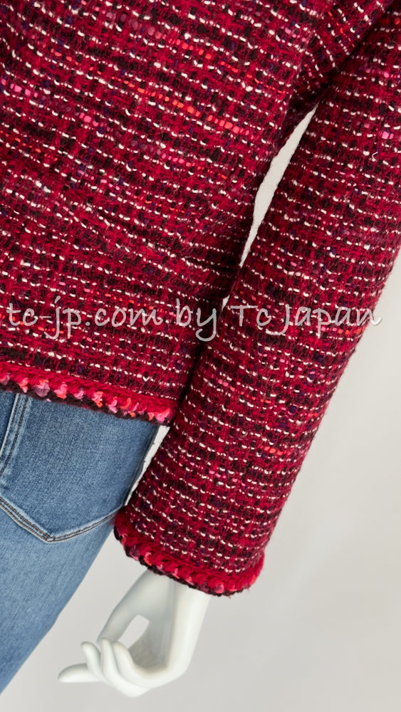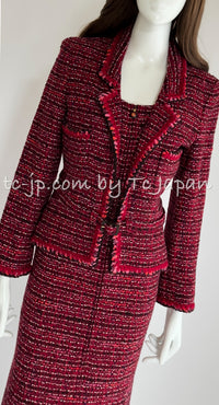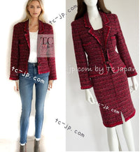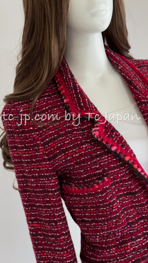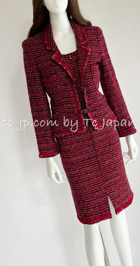CHANEL 01A Red Pink Wool Tweed Jacket Dress Set 38 シャネル レッド ピンク ウール ツイード ジャケット ワンピース セットアップ 即発