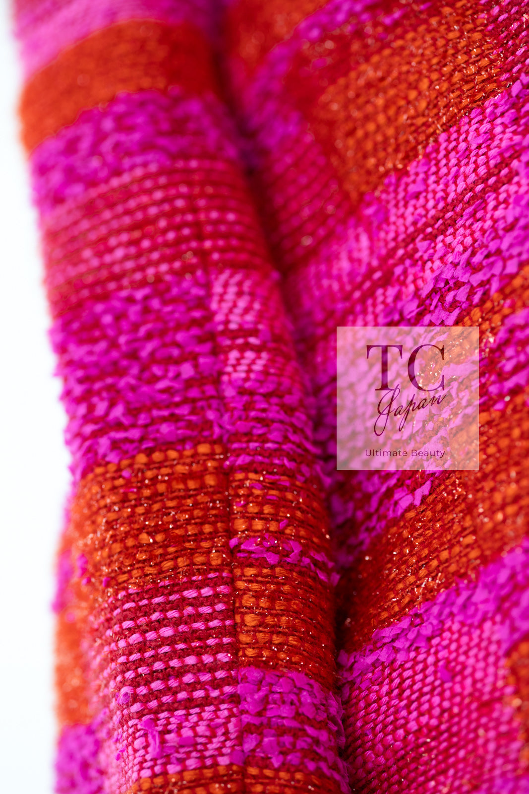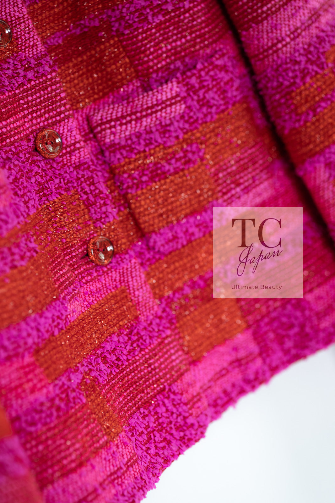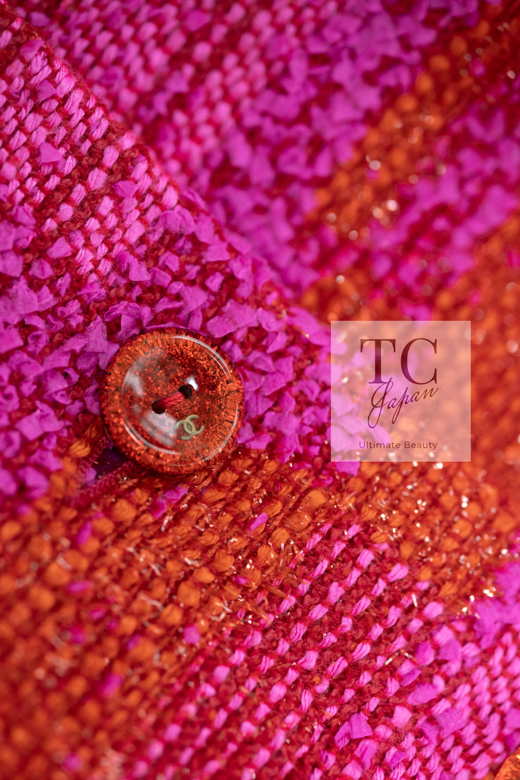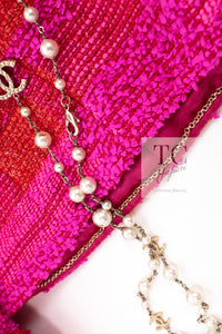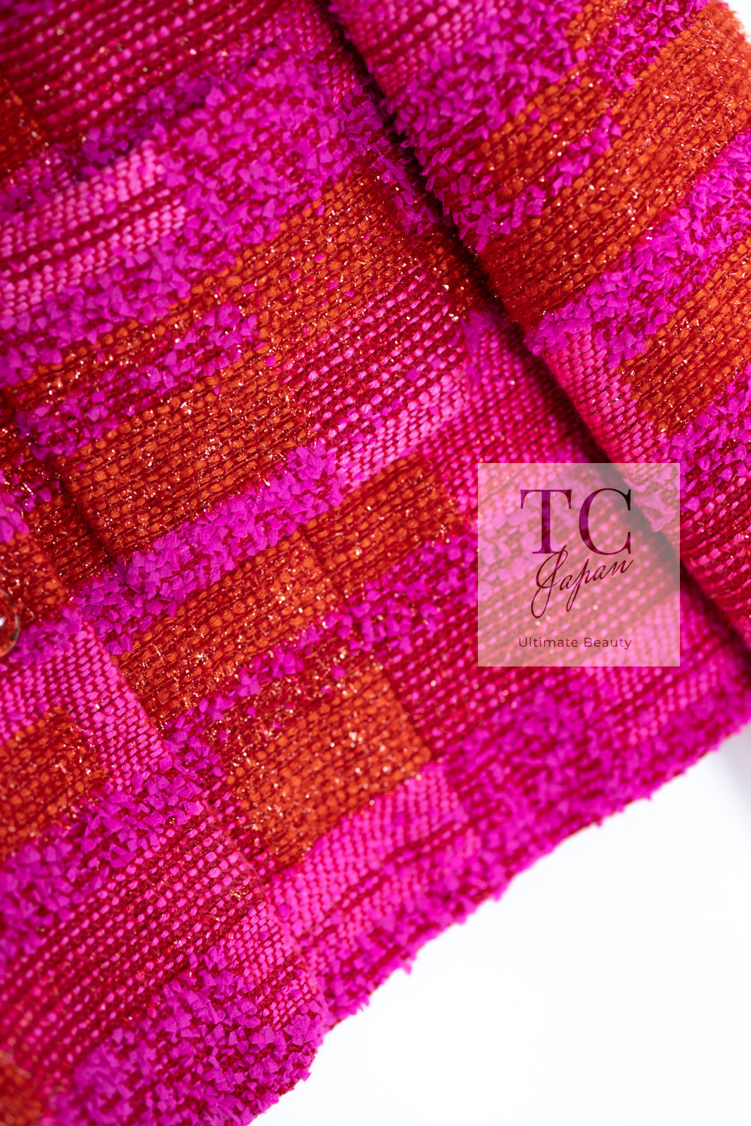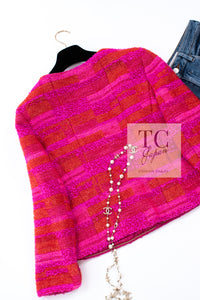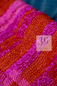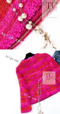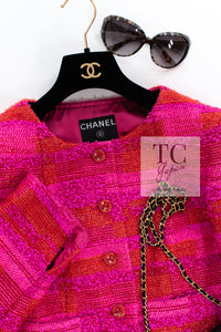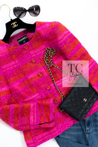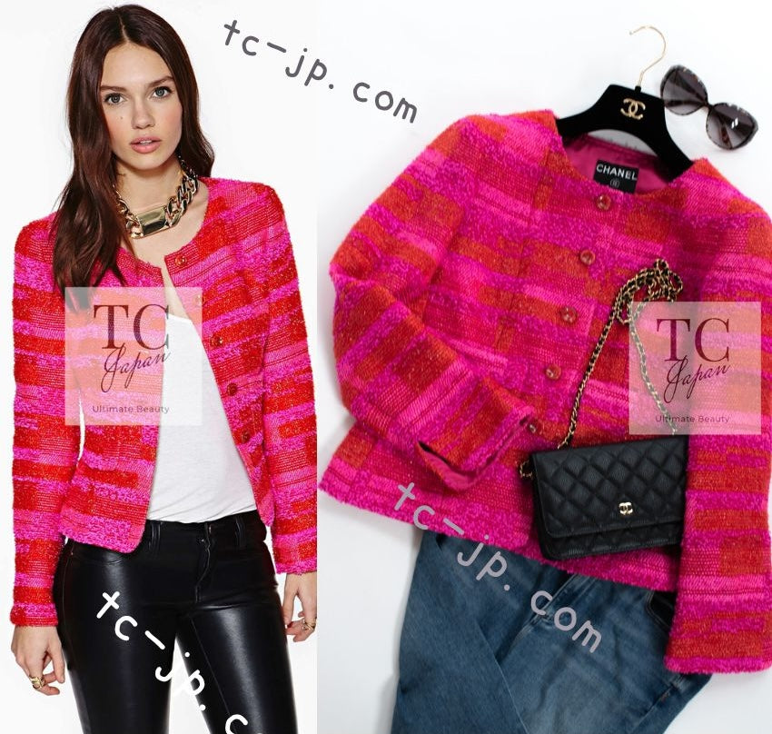 CHANEL 01C Coral Hot Pink Orange Border Tweed Candy Jacket 36 42 シャネル コーラル ホット ピンク オレンジ ボーダー ツイード キャンディー ジャケット 即発