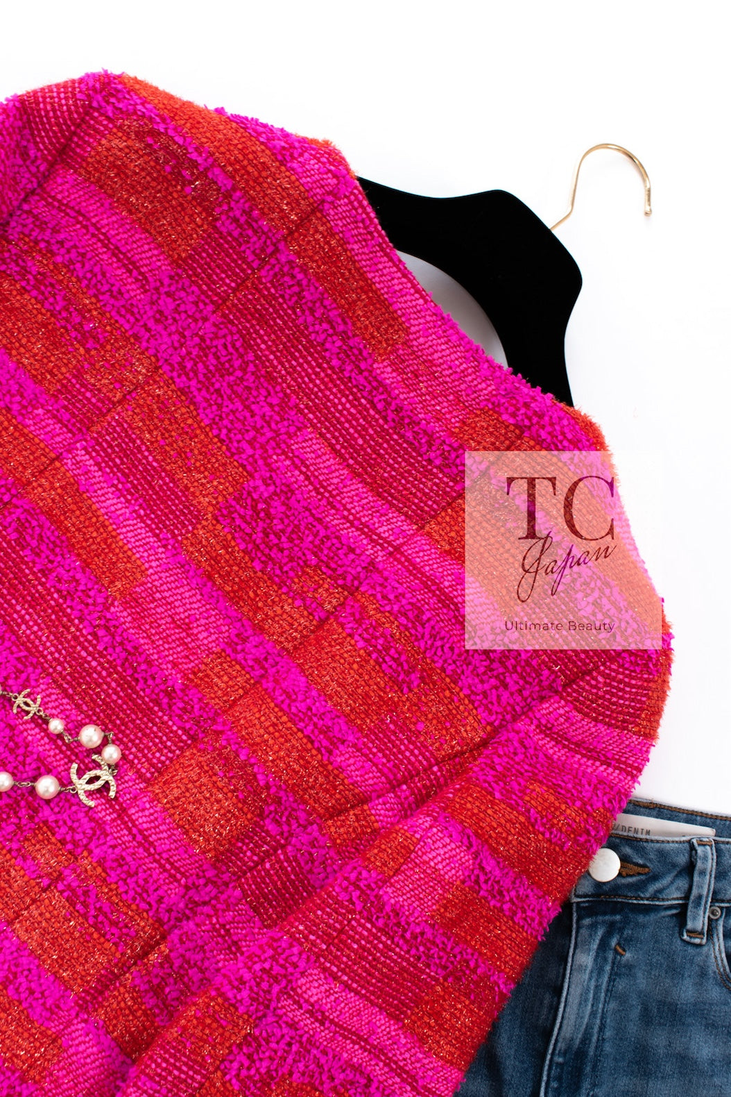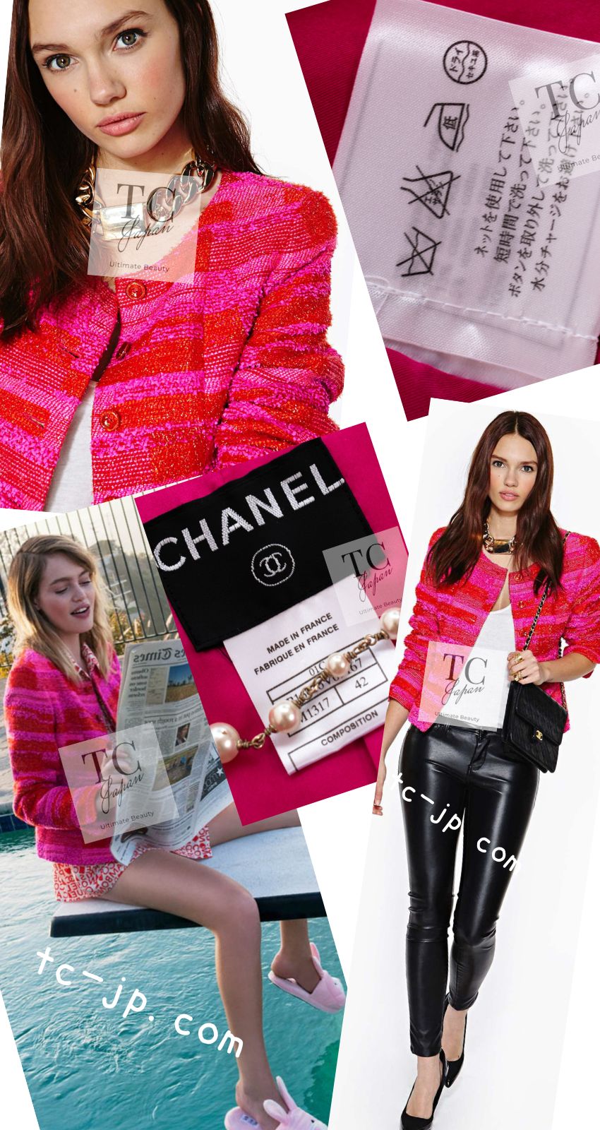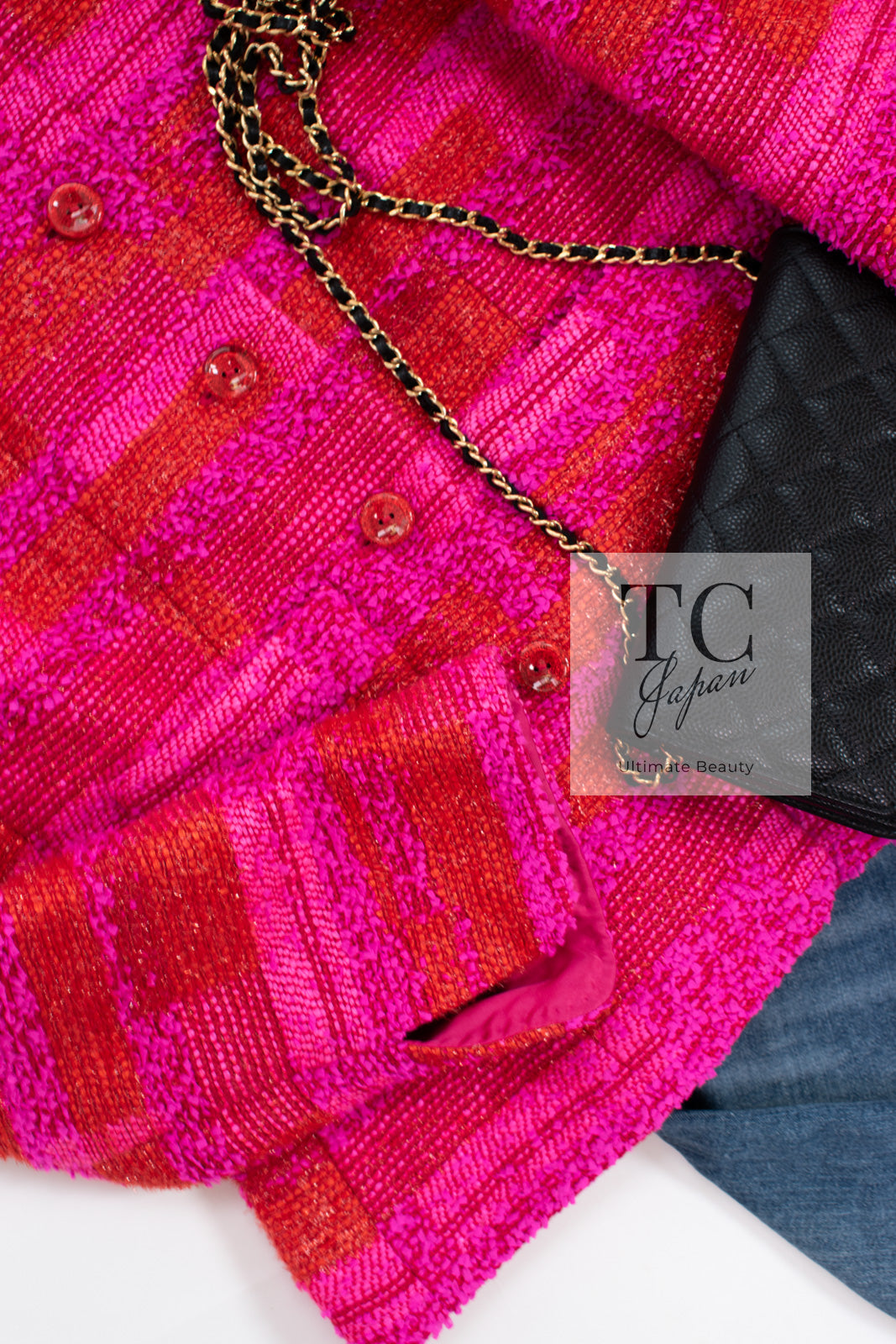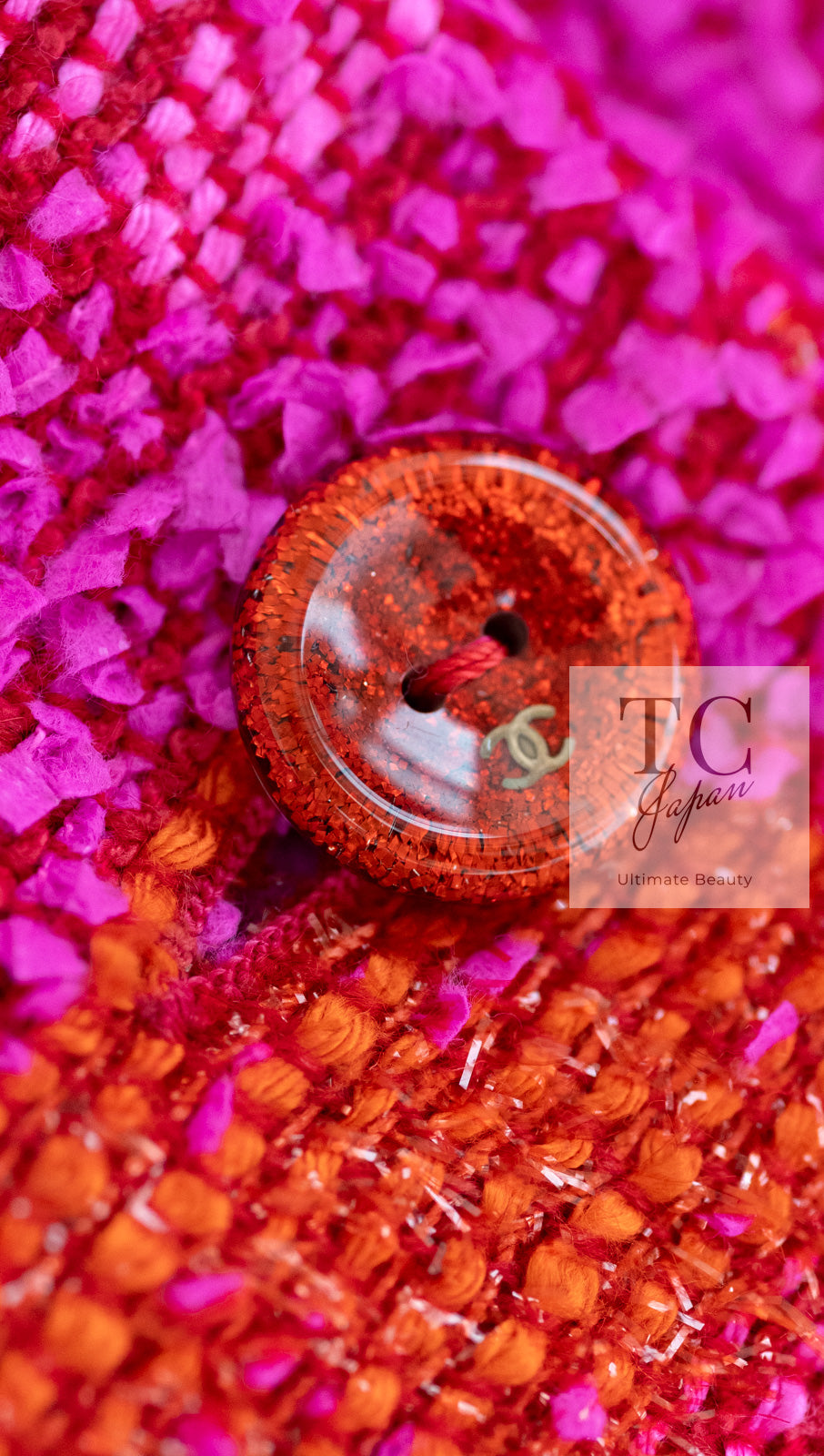 CHANEL 01C Coral Hot Pink Orange Border Tweed Candy Jacket 36 42 シャネル コーラル ホット ピンク オレンジ ボーダー ツイード キャンディー ジャケット 即発