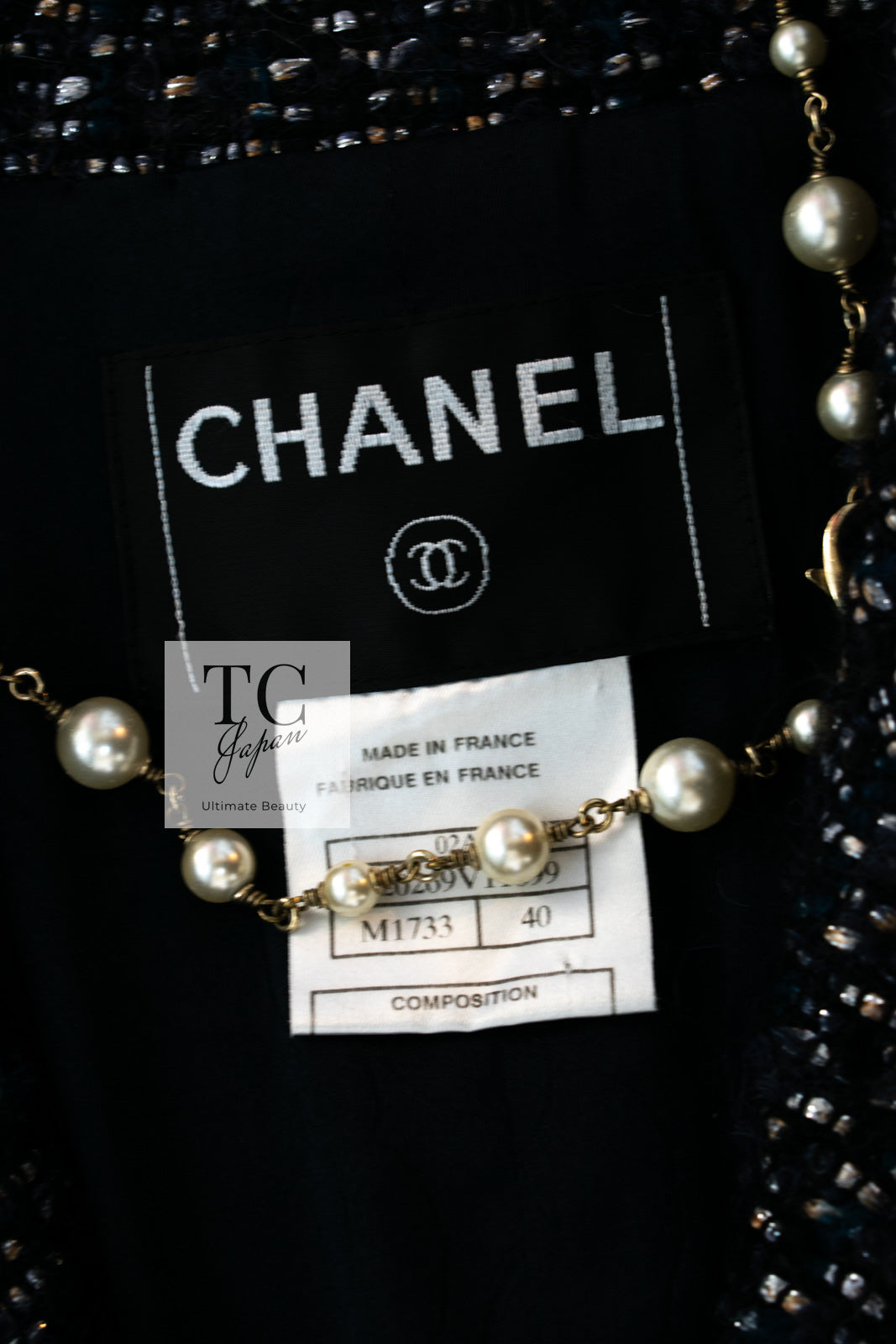CHANEL 02A Black Metallic Wool Mohair Tweed Jacket 40 シャネル ブラック メタリック ブレザー ウール モヘア ツイード ジャケット 即発