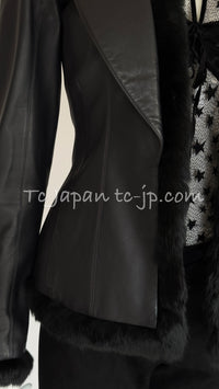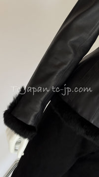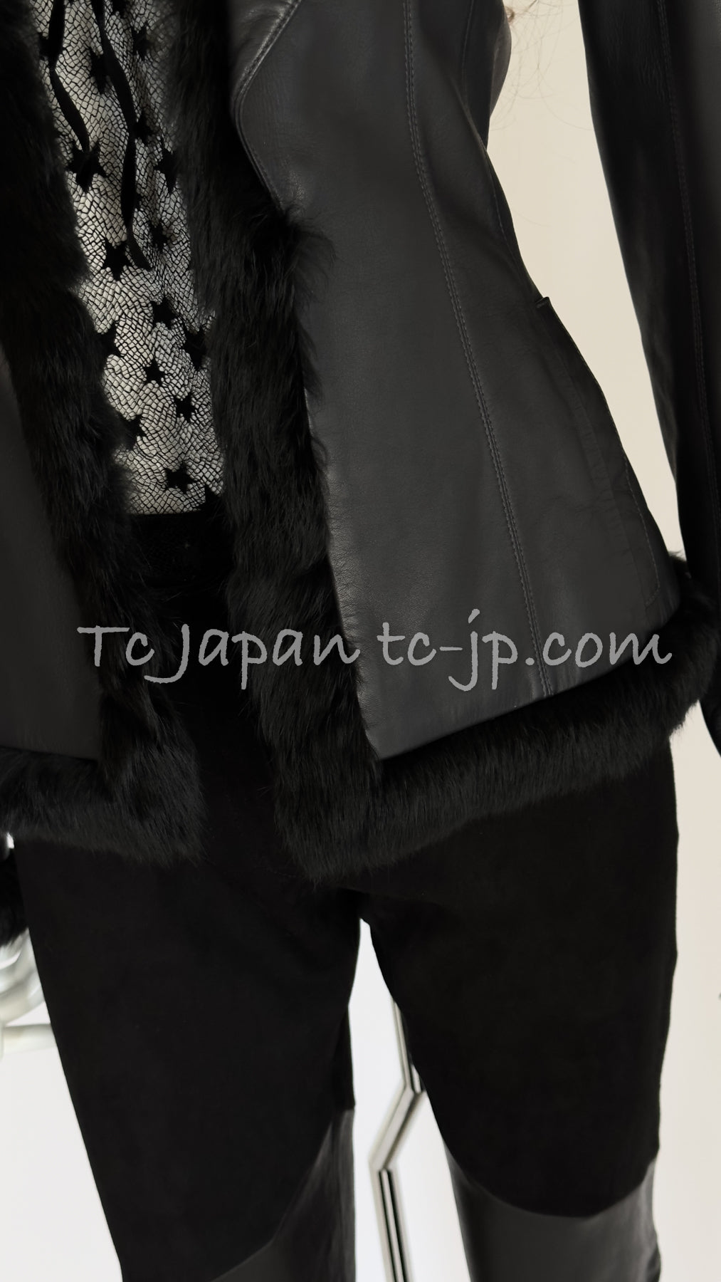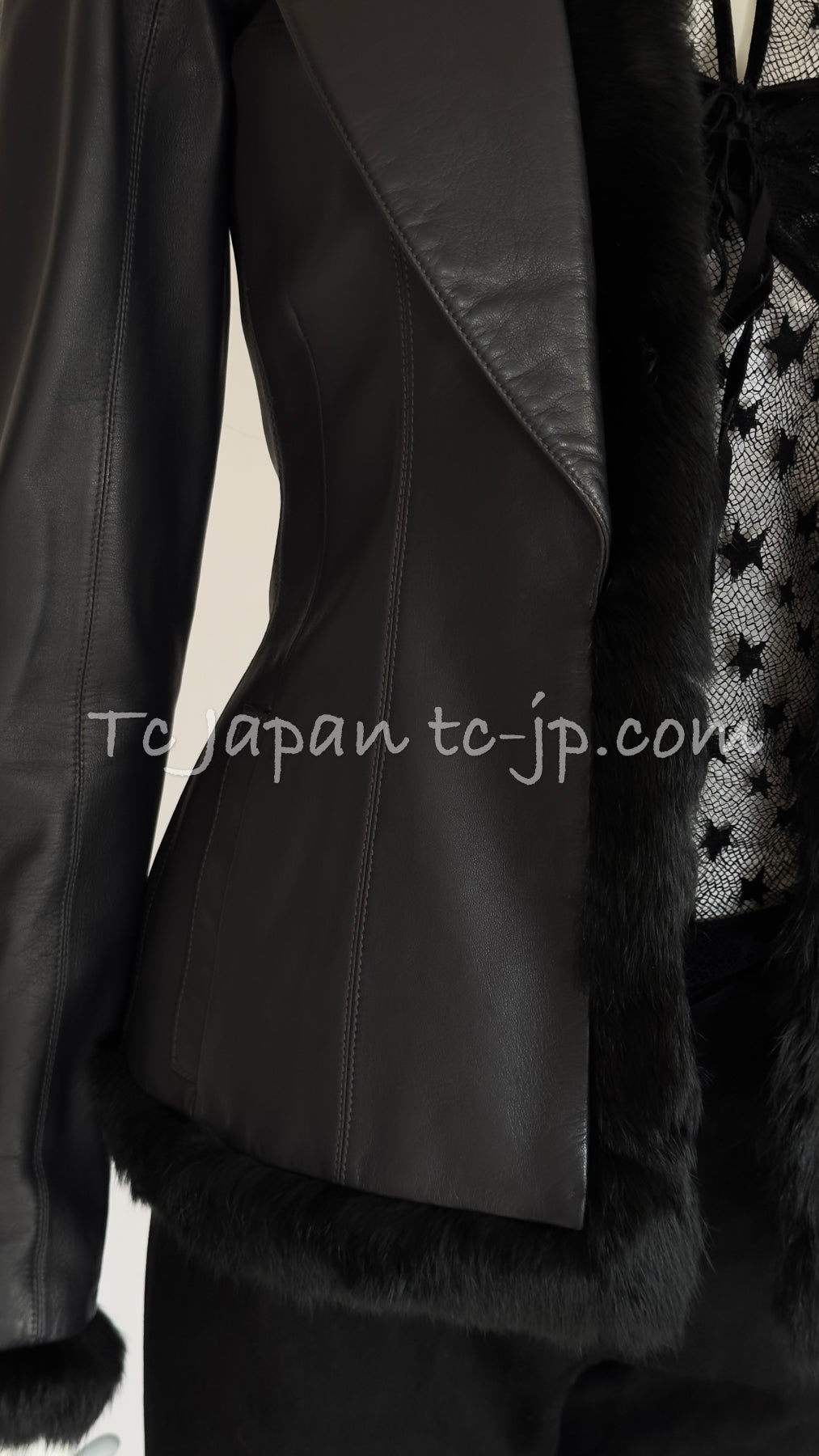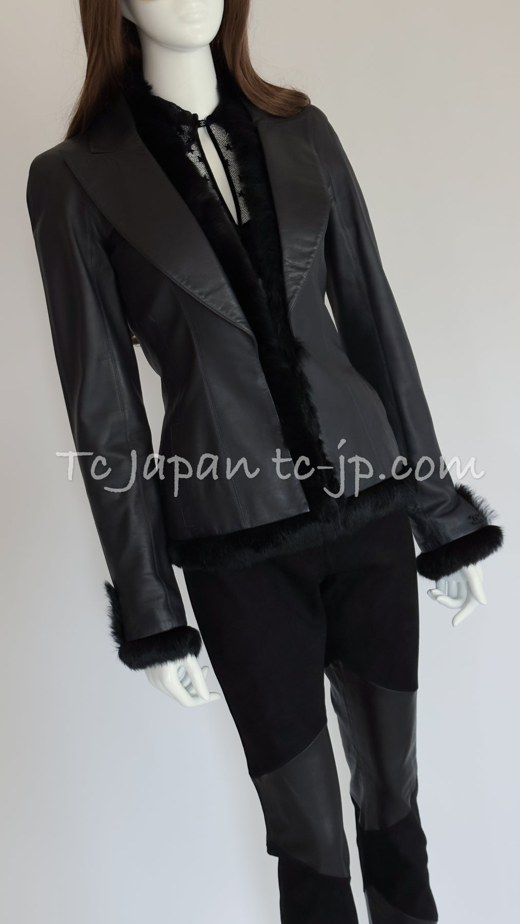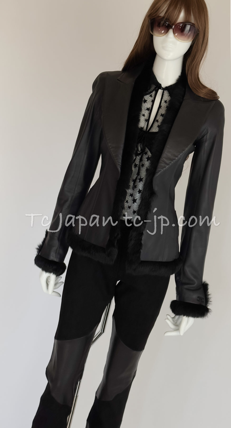 CHANEL 02A Charcoal Gray Brown Black Lambskin Leather Rabbit Fur Jacket 34 シャネル チャコールグレー ラムスキン レザー ラビットファー チャコールグレー ブラウン ブラック ジャケット 即発