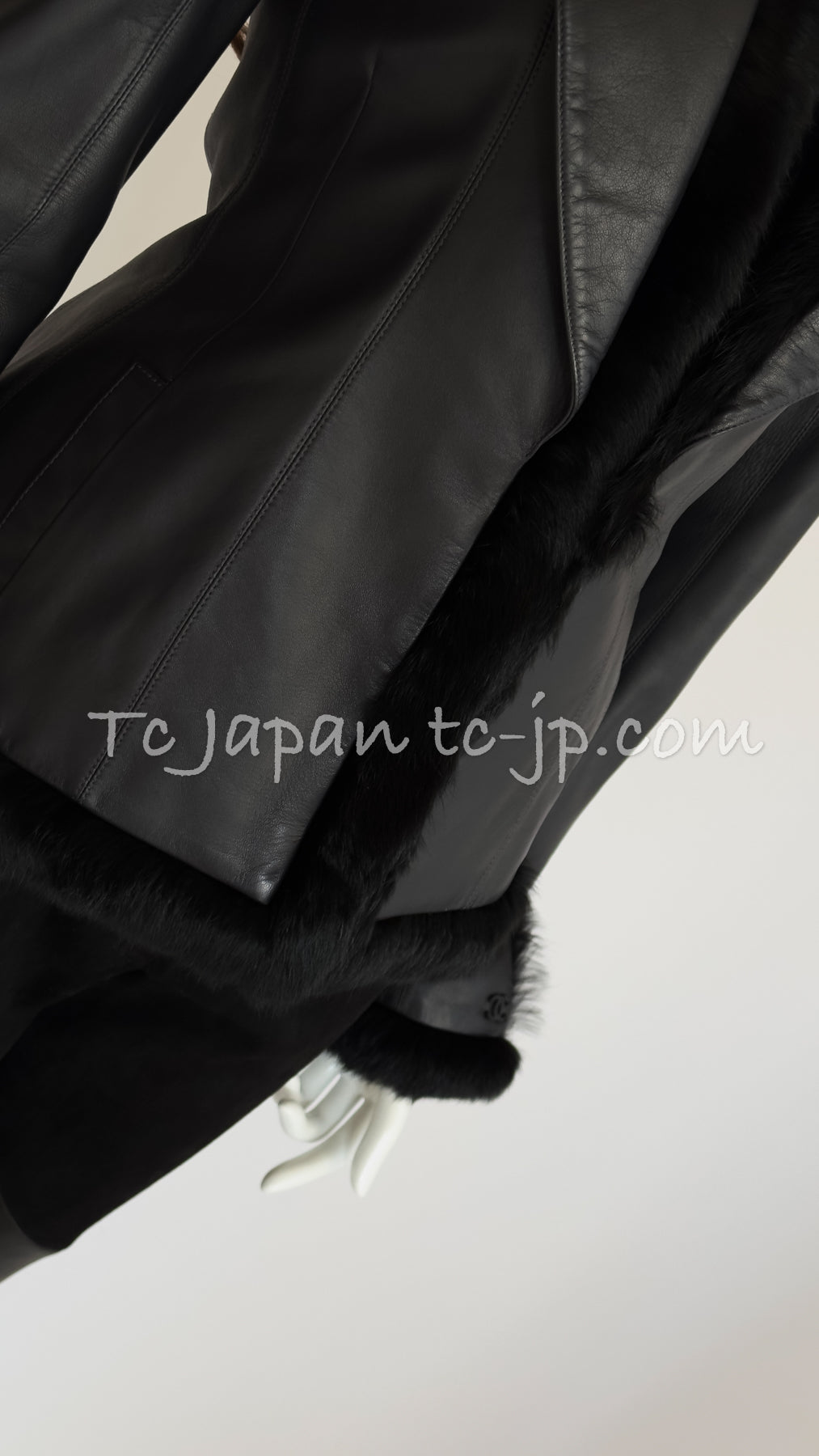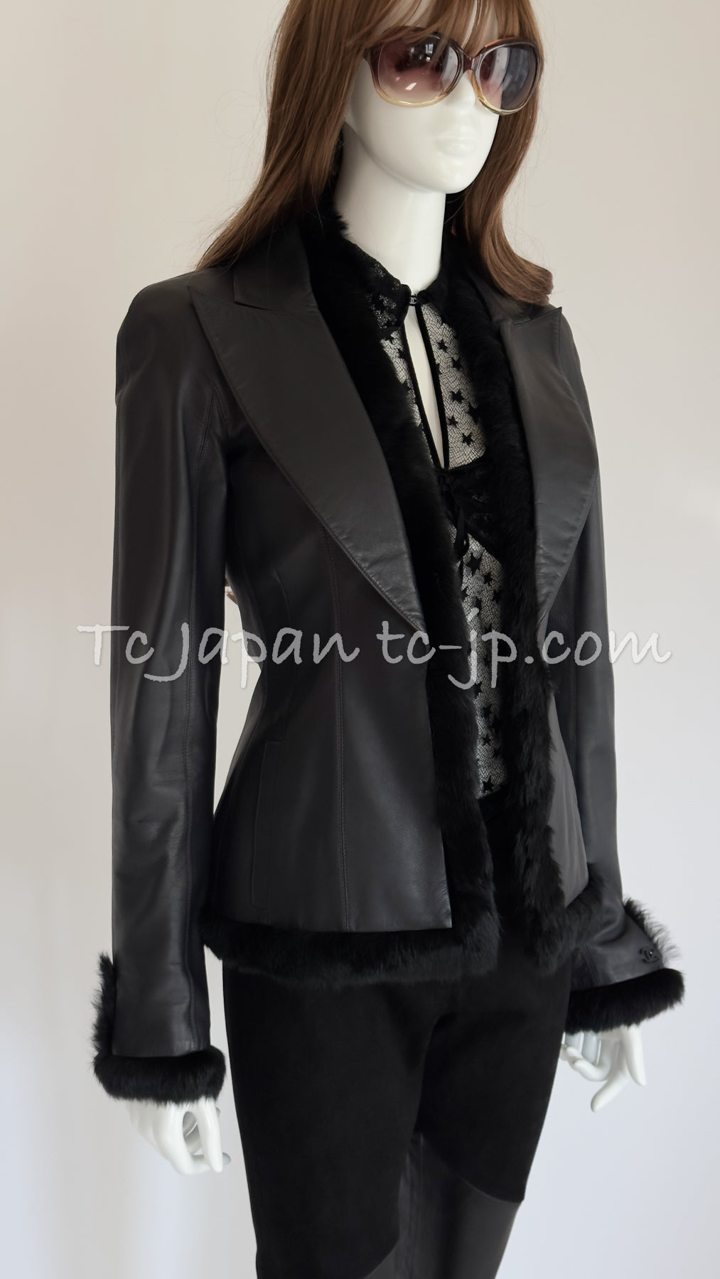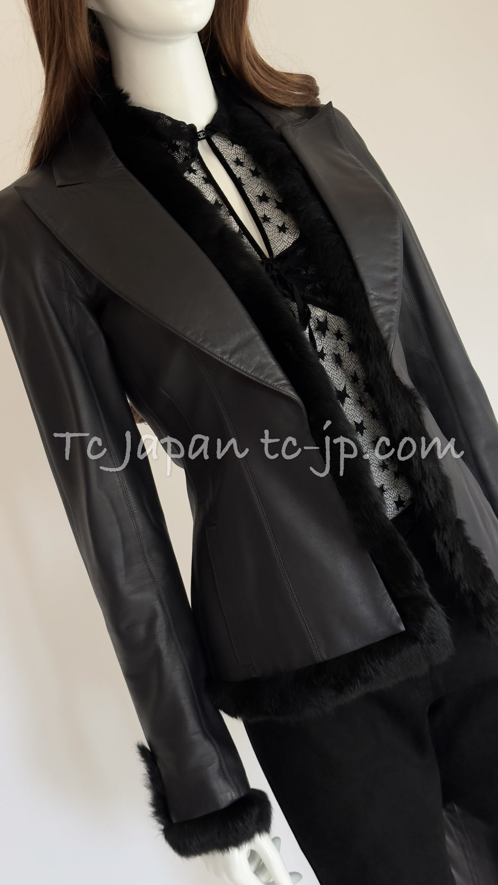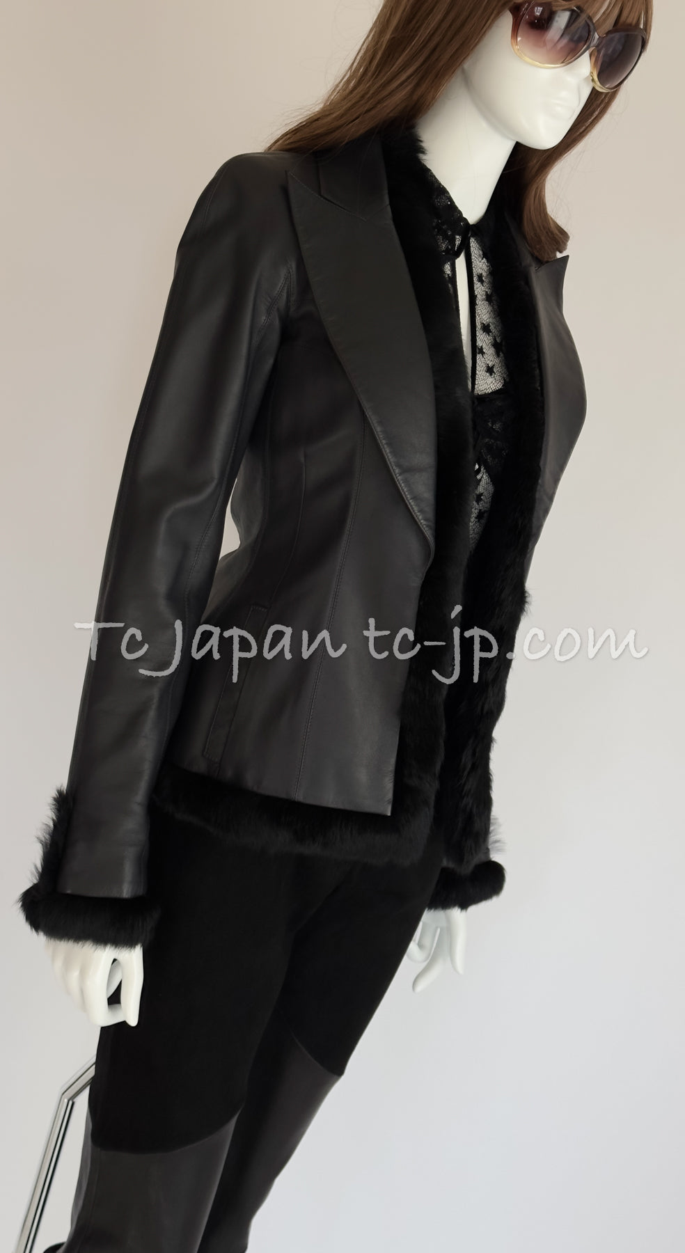 CHANEL 02A Charcoal Gray Brown Black Lambskin Leather Rabbit Fur Jacket 34 シャネル チャコールグレー ラムスキン レザー ラビットファー チャコールグレー ブラウン ブラック ジャケット 即発