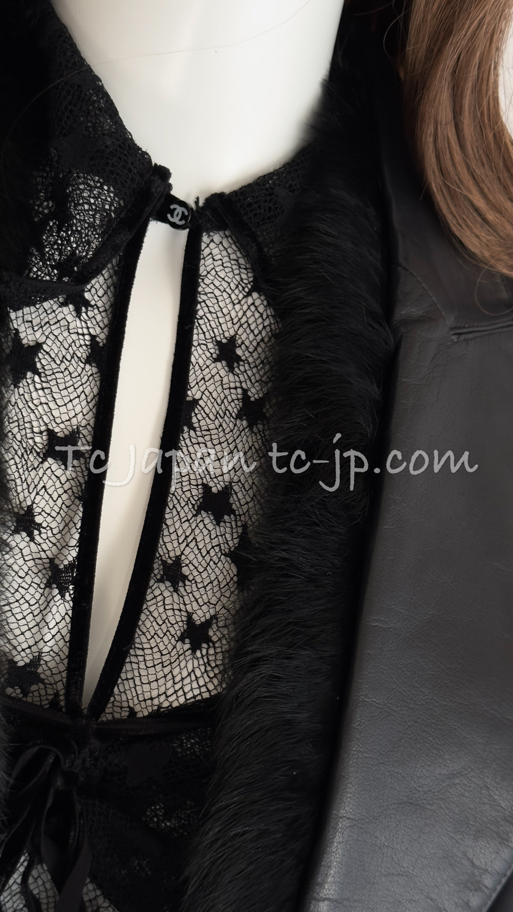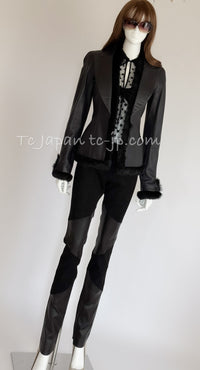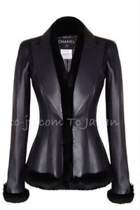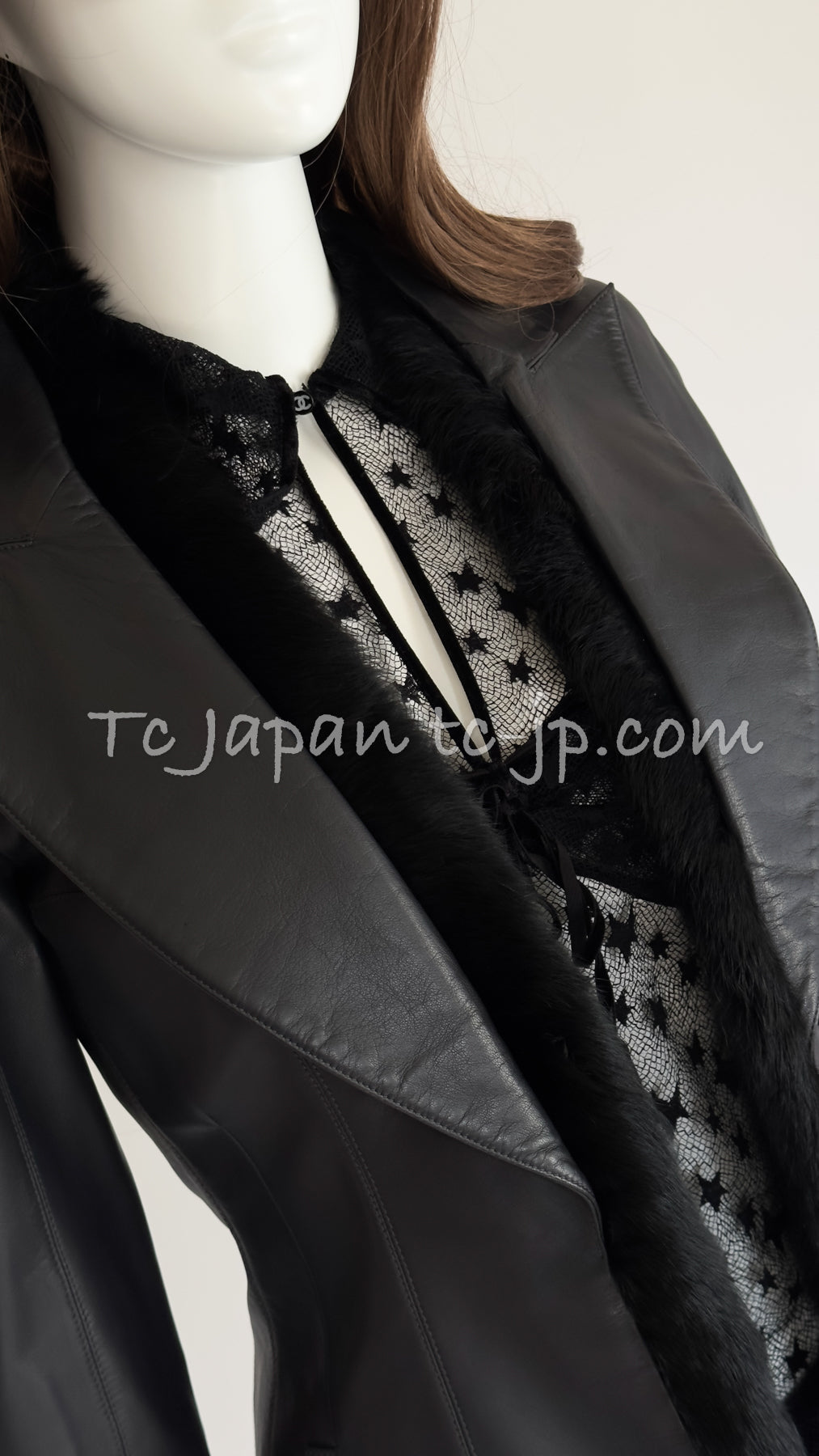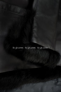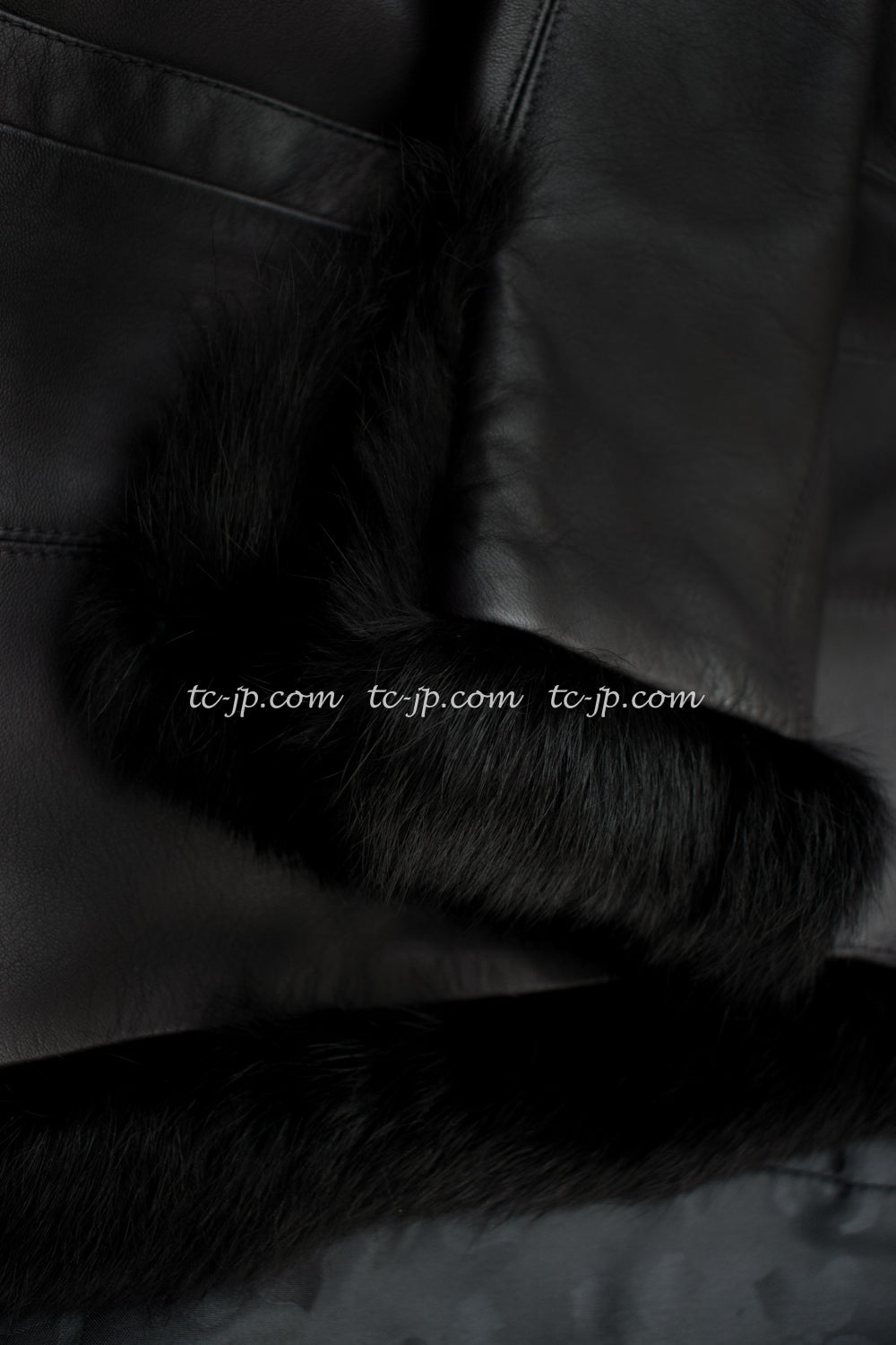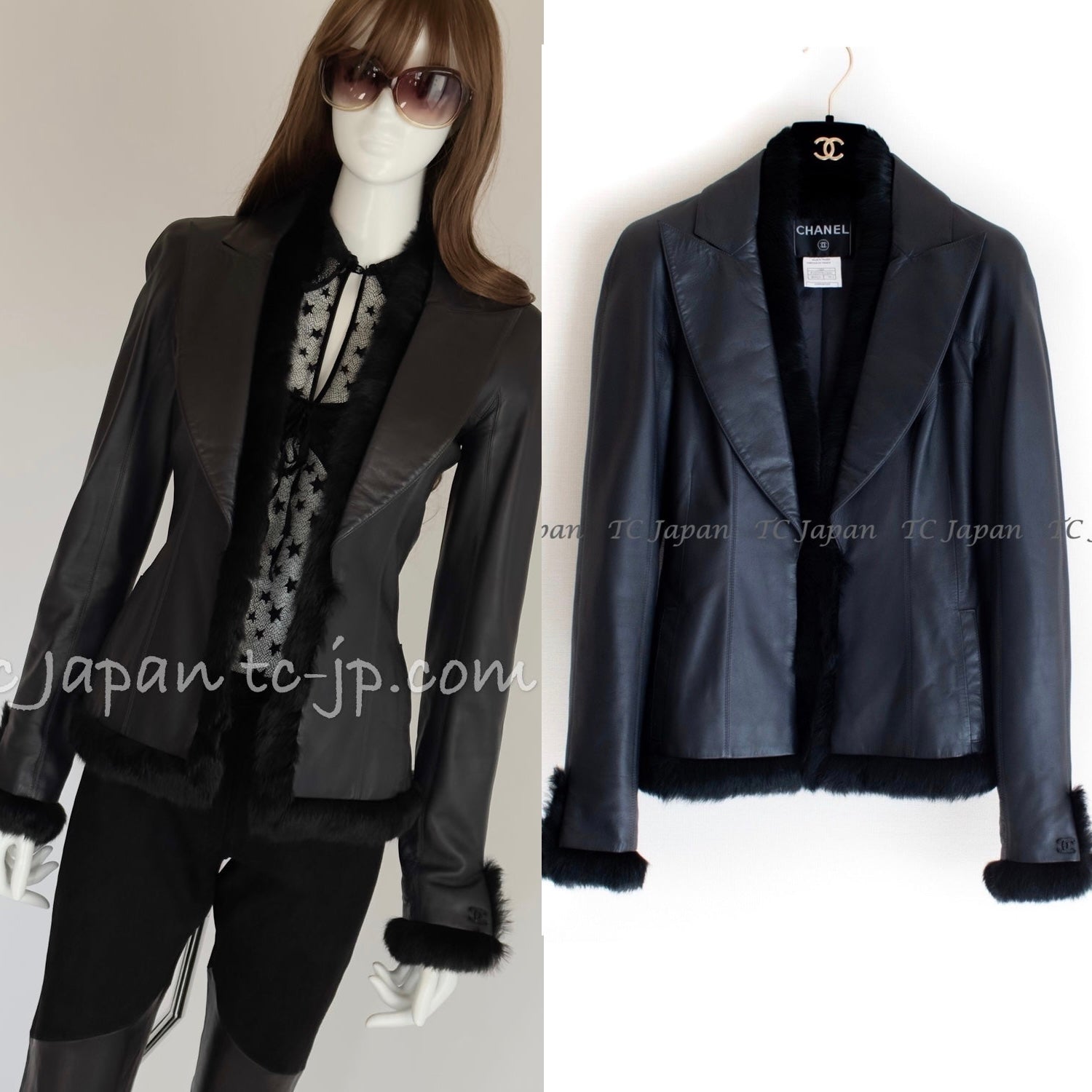 CHANEL 02A Charcoal Gray Brown Black Lambskin Leather Rabbit Fur Jacket 34 シャネル チャコールグレー ラムスキン レザー ラビットファー チャコールグレー ブラウン ブラック ジャケット 即発