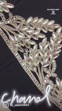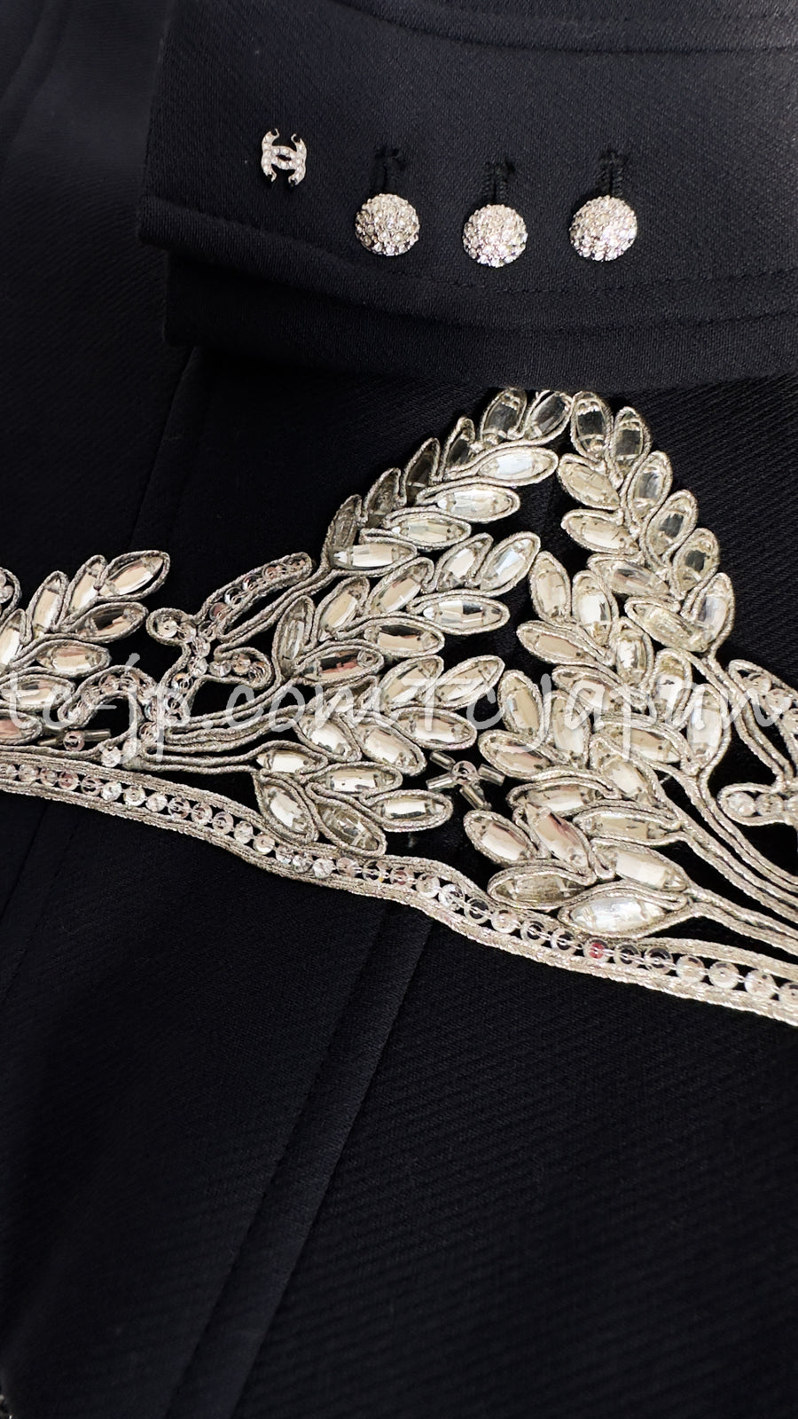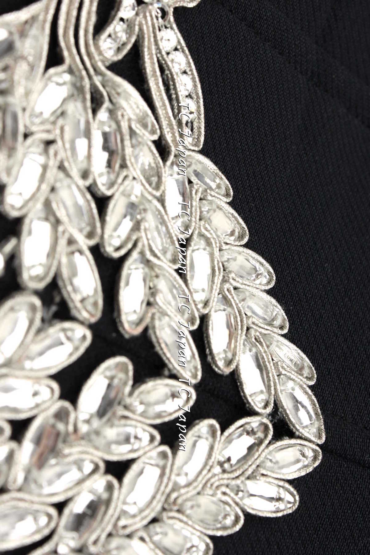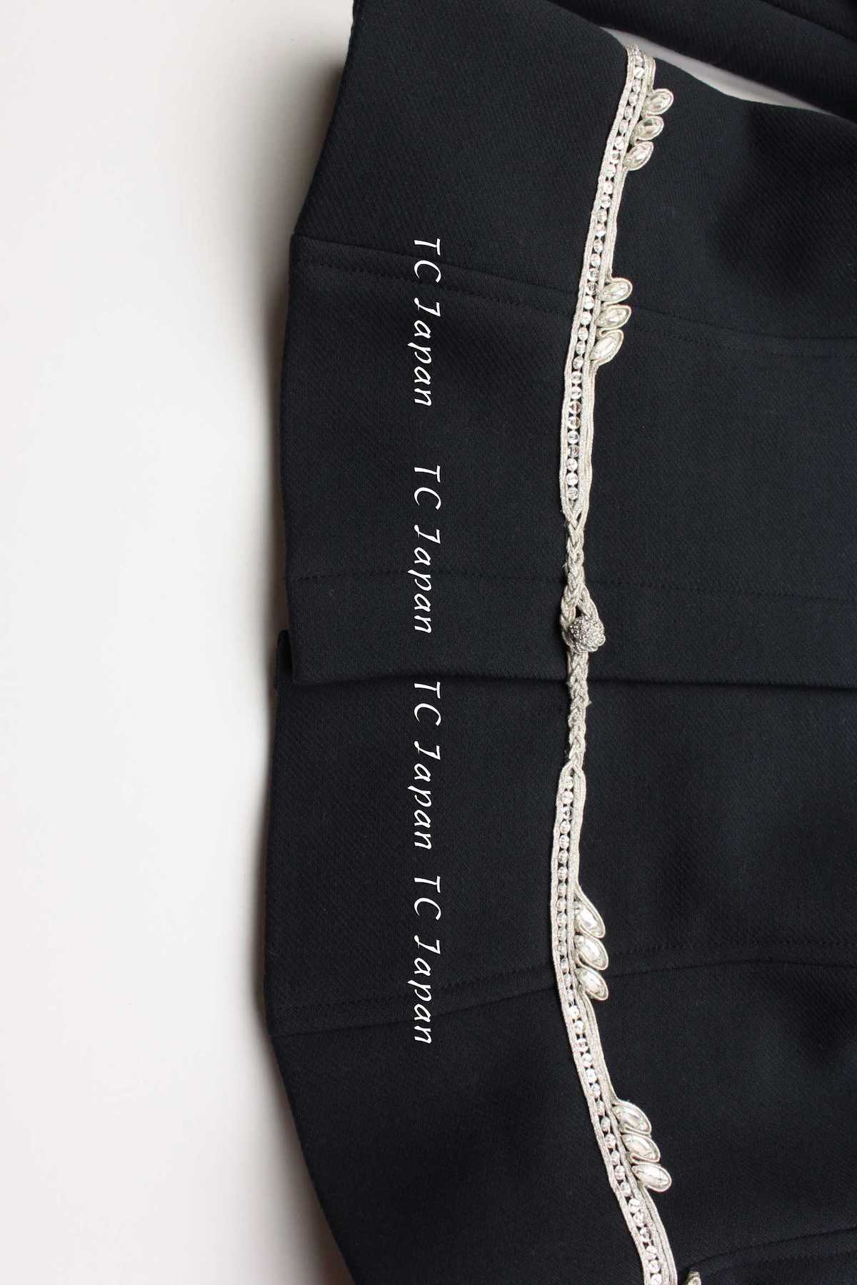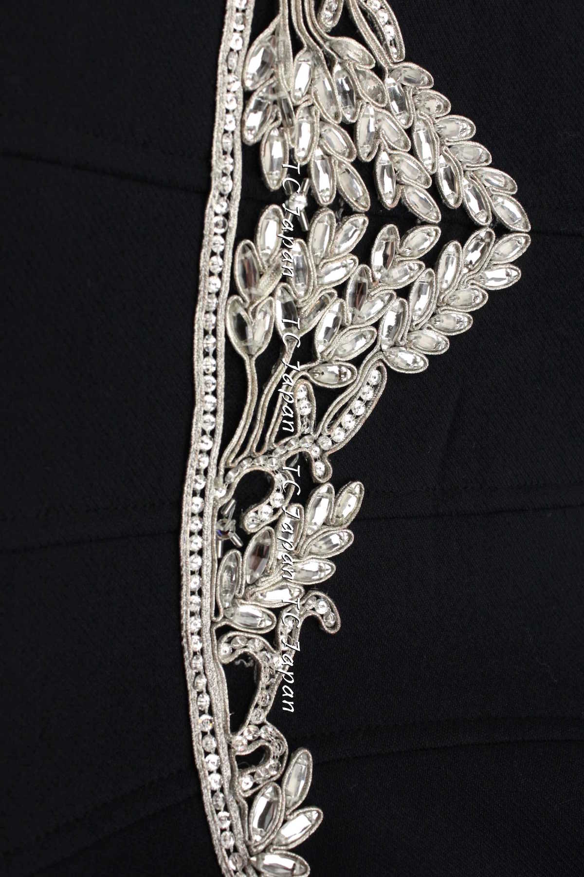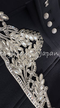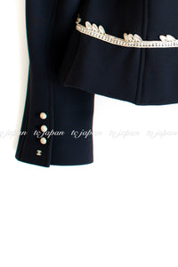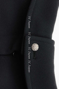 CHANEL 02A Dark Navy Rhinestones Vintage Wool Jacket Skirt Suit 38 40 42 シャネル ダークネイビー・ウール・ヘップバーン風・ラインストーン・王冠ジャケット 即発
