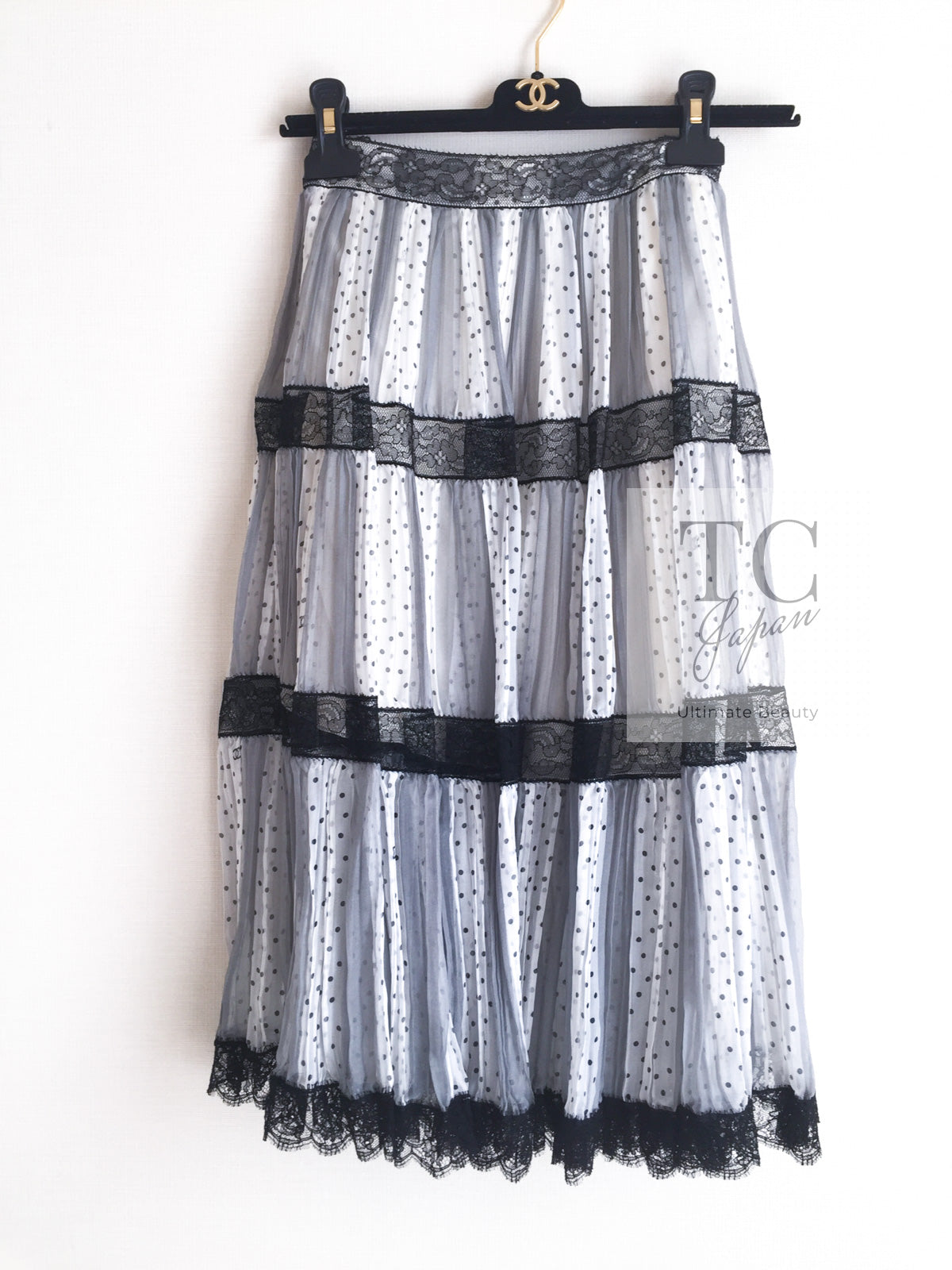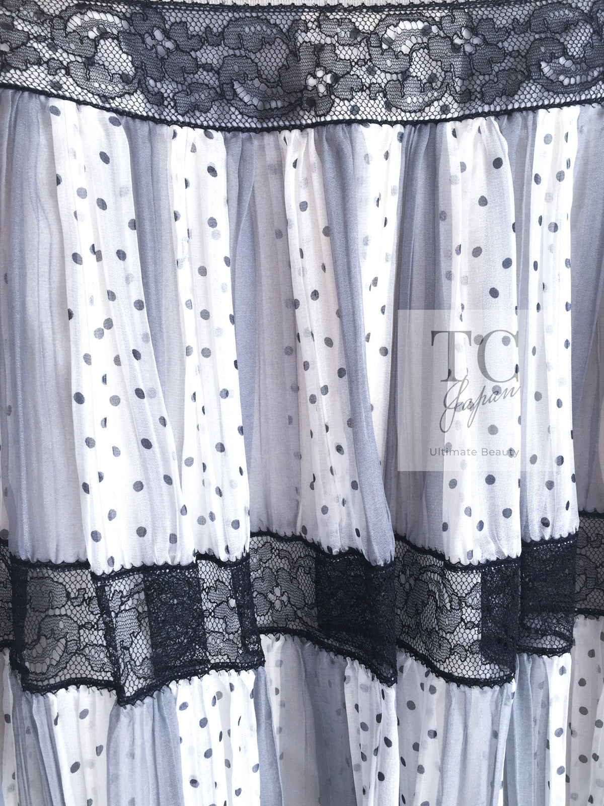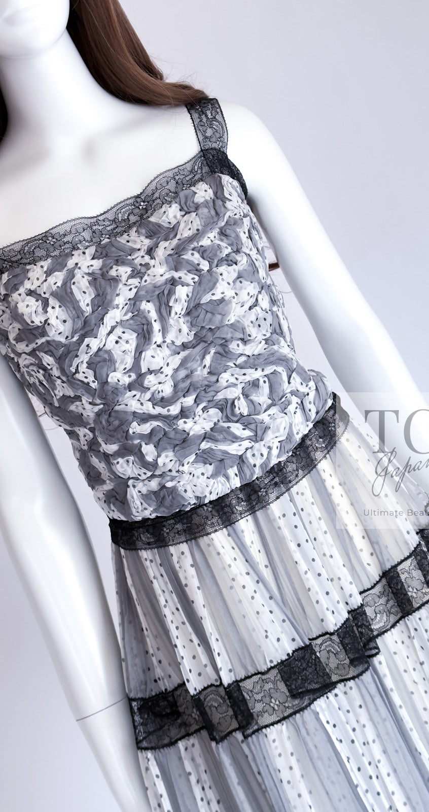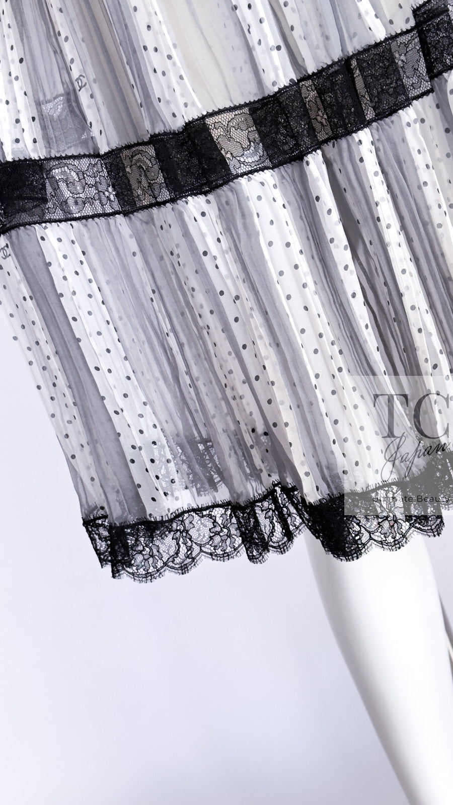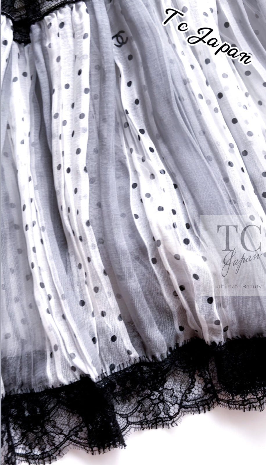 CHANEL 02S White Gray Dots Silk Set Up Camisole & Pleated Skirt 34 36 シャネル ホワイト グレー セットアップ キャミソール & プリーツ スカート 即発
