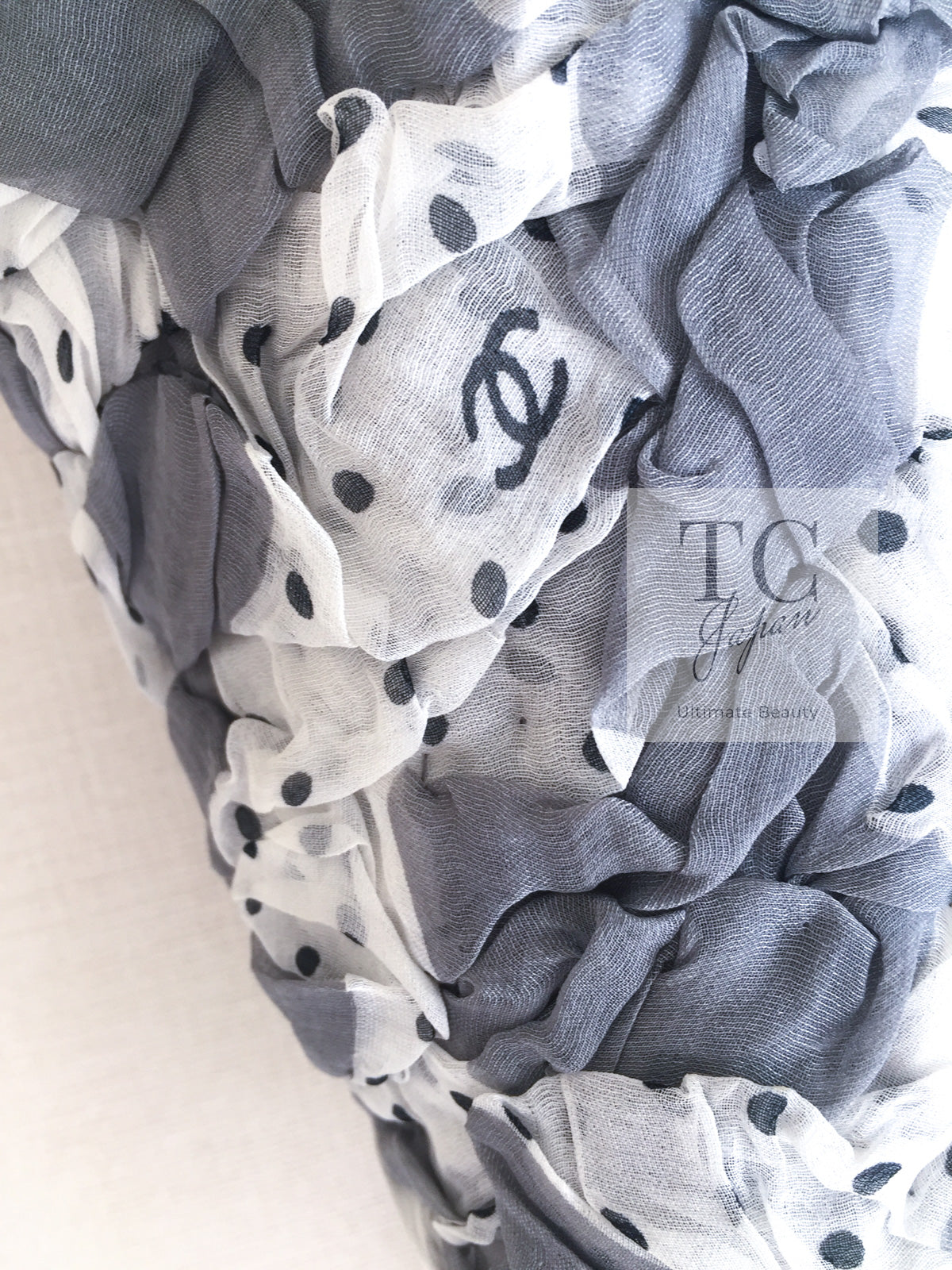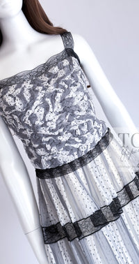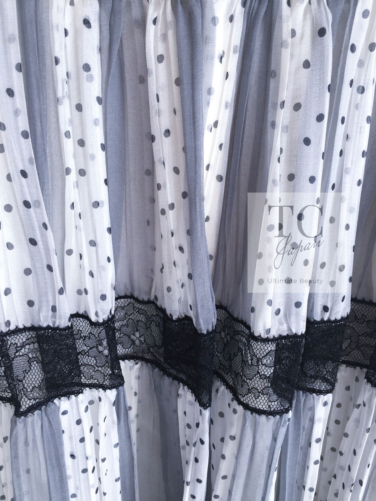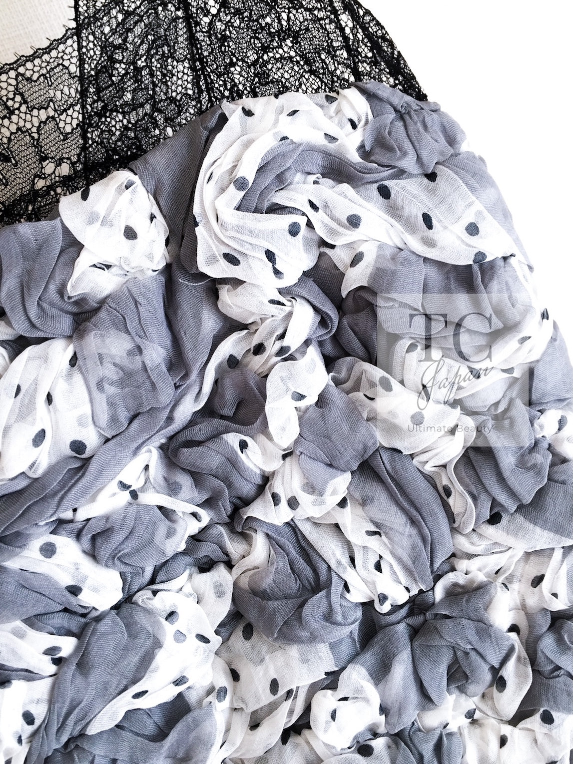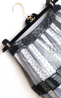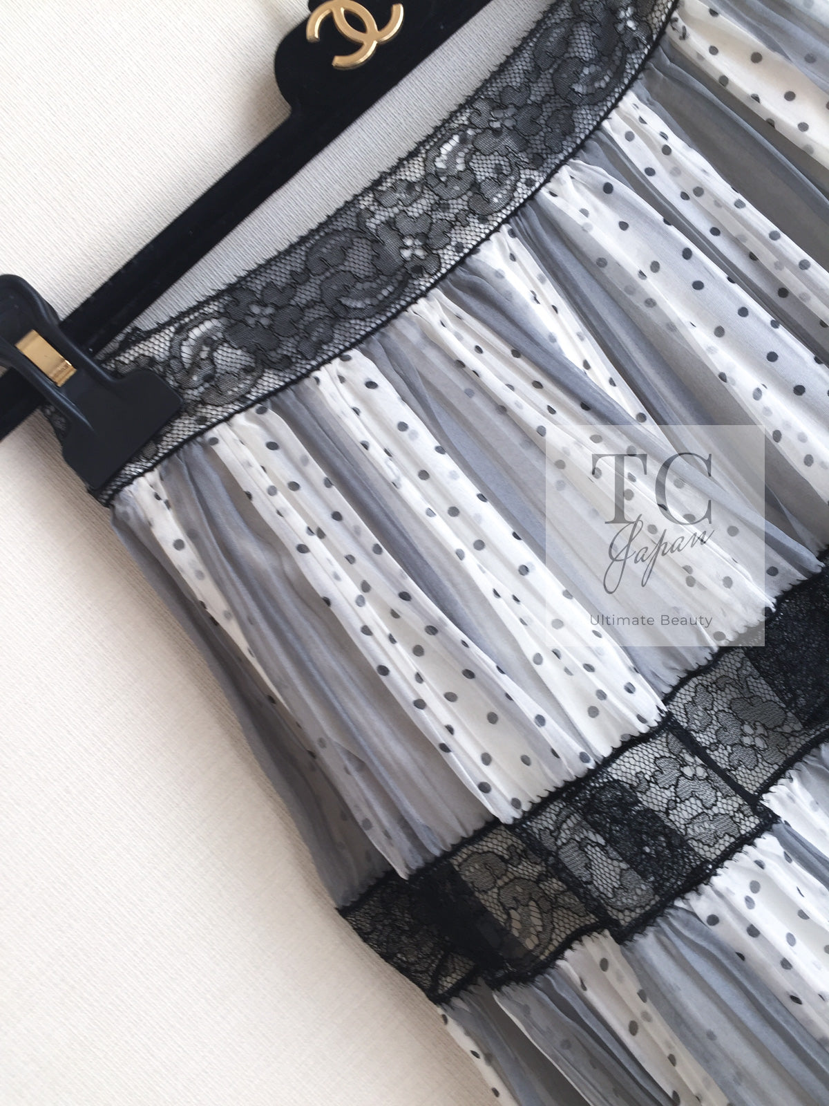 CHANEL 02S White Gray Dots Silk Set Up Camisole & Pleated Skirt 34 36 シャネル ホワイト グレー セットアップ キャミソール & プリーツ スカート 即発