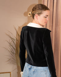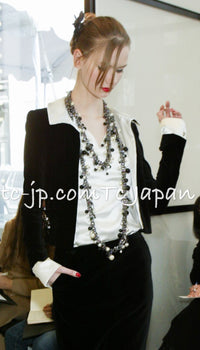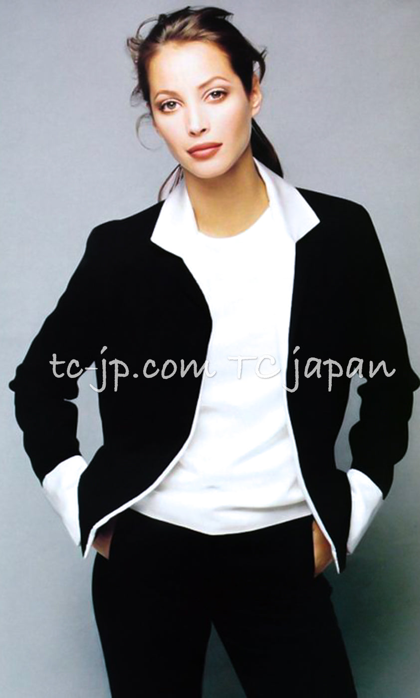 CHANEL 03A Black Ivory Collar Velvet Cotton Jacket 38 シャネル ブラック アイボリー 襟 ベルベット コットン ジャケット 即発