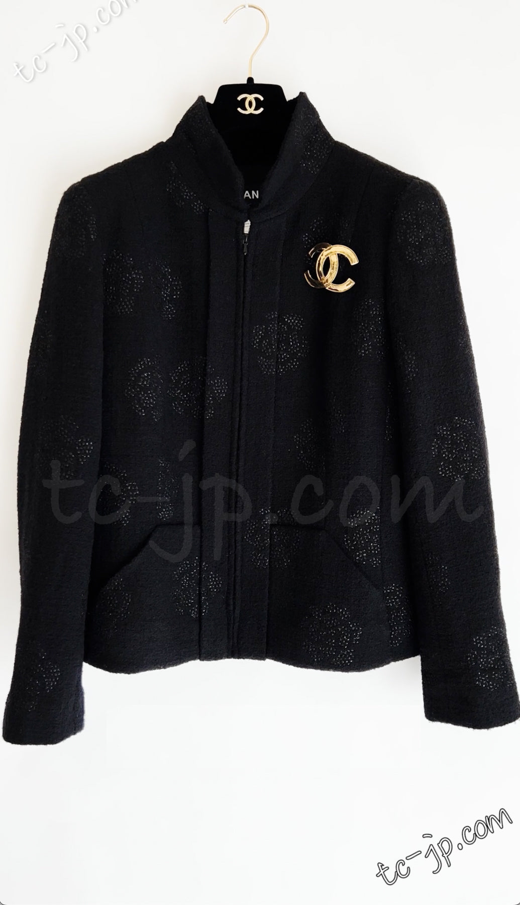 CHANEL 03C Black Camellia Stand Collar Zipper Jacket 40 42 シャネル ブラック・カメリア・スタンドカラー・ジッパー・ジャケット 即発