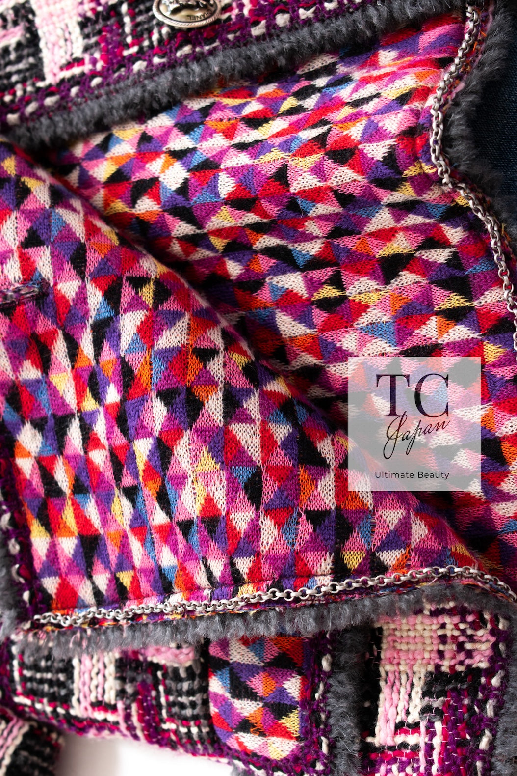 CHANEL 04A Purple Multicolor Mix Tweed Jacket 36 38 シャネル パープル マルチカラー ミックス ポップ ツイード ジャケット 即発