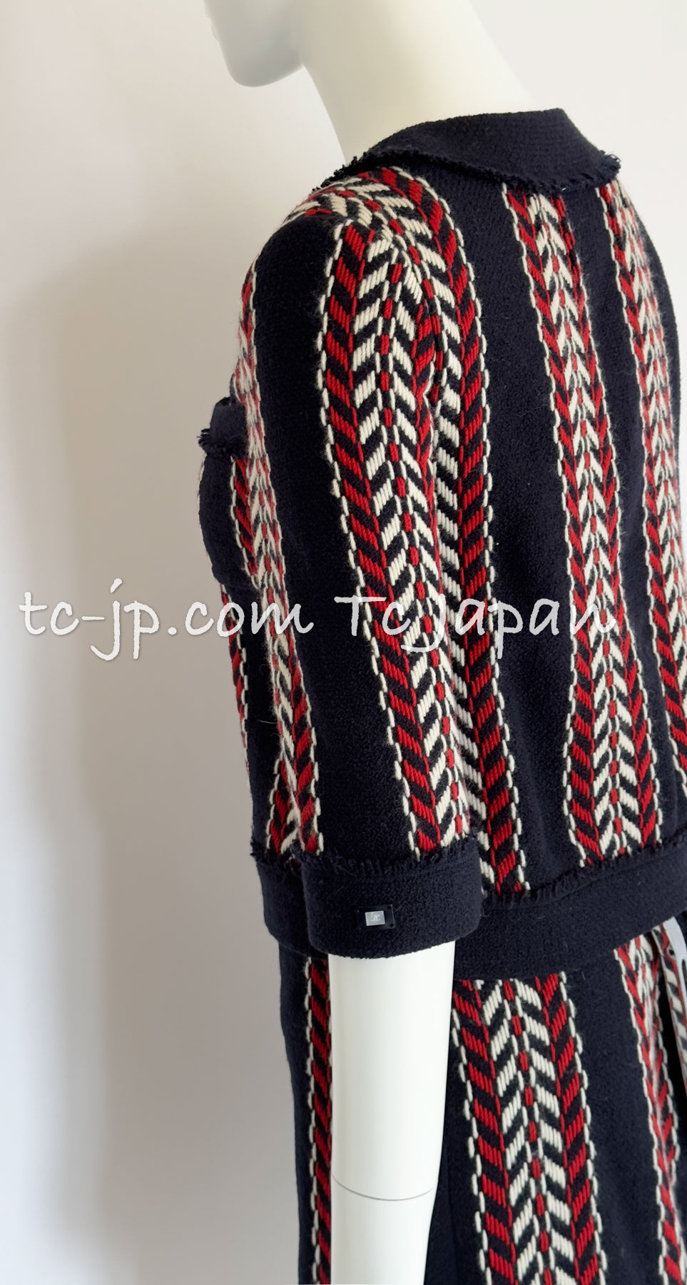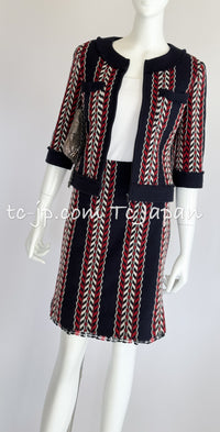 CHANEL 04A Red Navy Tricolor Zipper Tweed Jacket Skirt Suit 36 シャネル レッド ネイビー トリコロール ツイード ジャケット スカート スーツ 即発