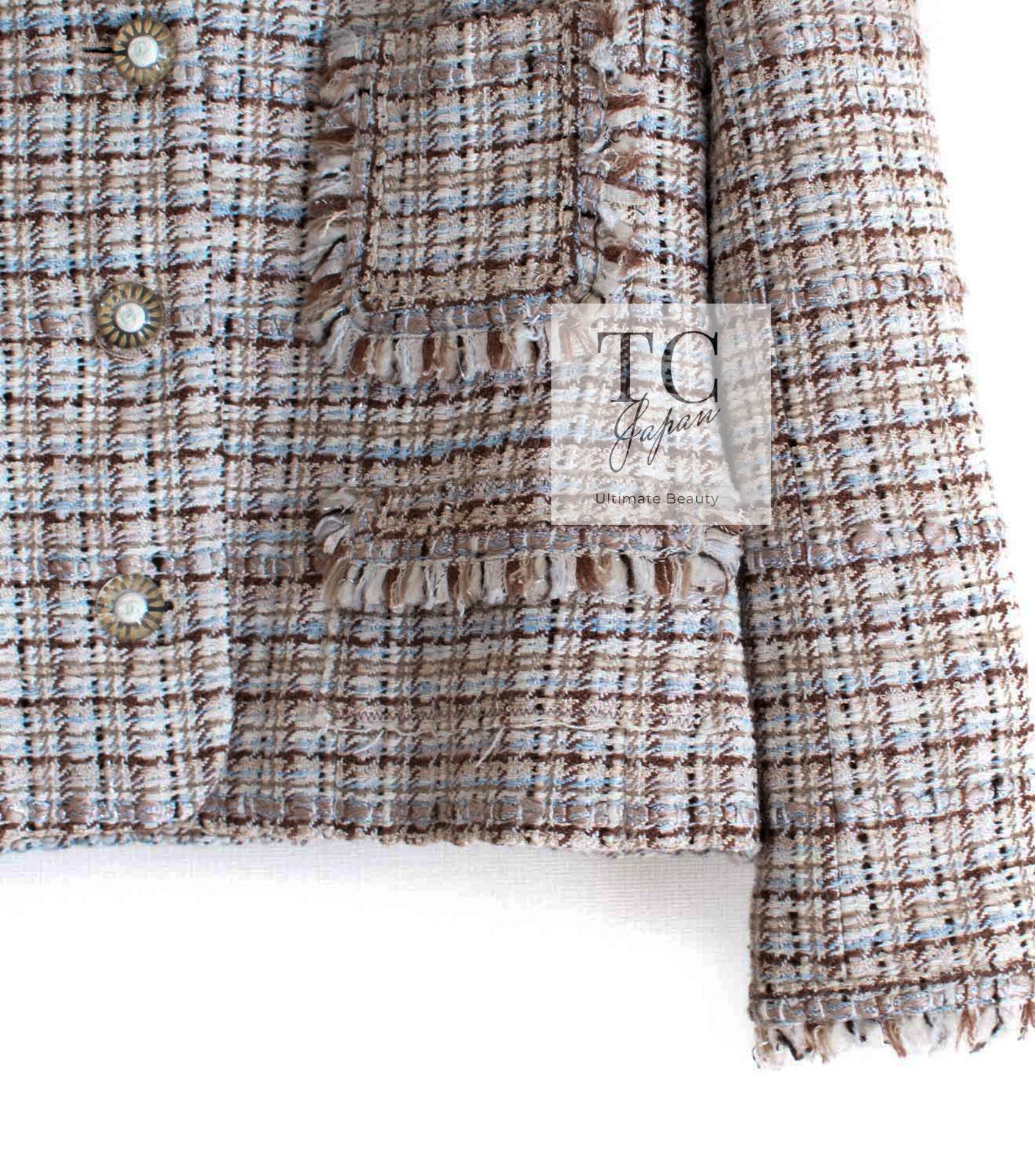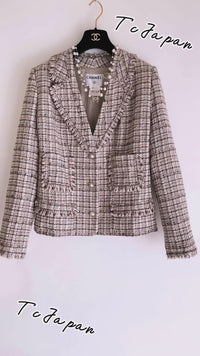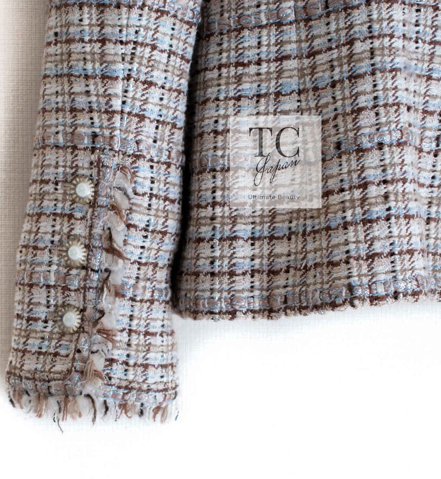 CHANEL 04S Beige Brown Ivory Silk Wool Tweed Jacket 38 シャネル ベージュ ブラウン アイボリー シルク ウール ツイード ジャケット 即発