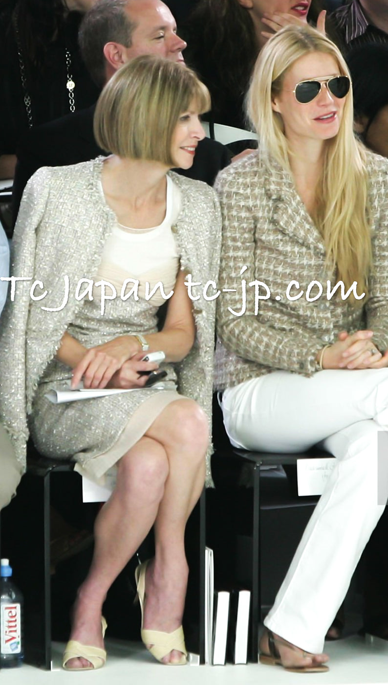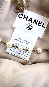 CHANEL 05S Metallic Gold Beige PearlButton Lesage Tweed Dress 36 シャネル メタリック ベージュ ゴールド ノースリーブ パール CC ボタン ルサージュ ツイード ドレス ワンピース 即発