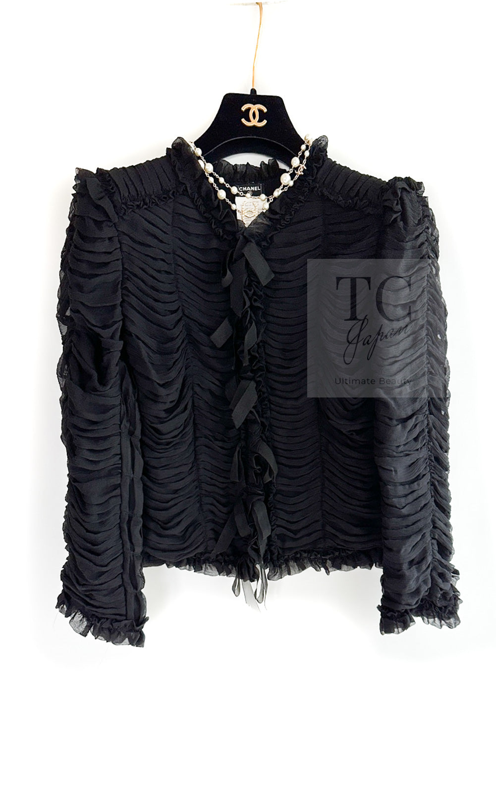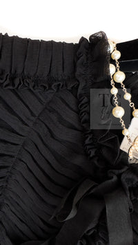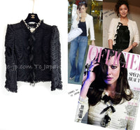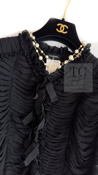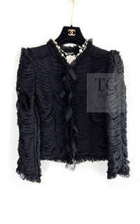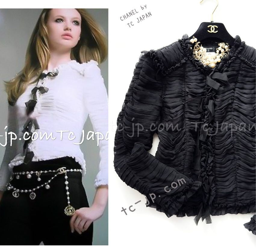 CHANEL 06A Black Ribbon Silk Penelope Cruz Cardigan Jacket Tops 38 40 44 シャネル ブラック リボン シルク ブラウス カーディガン ジャケット 即発