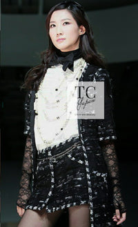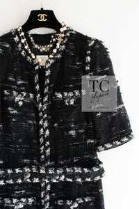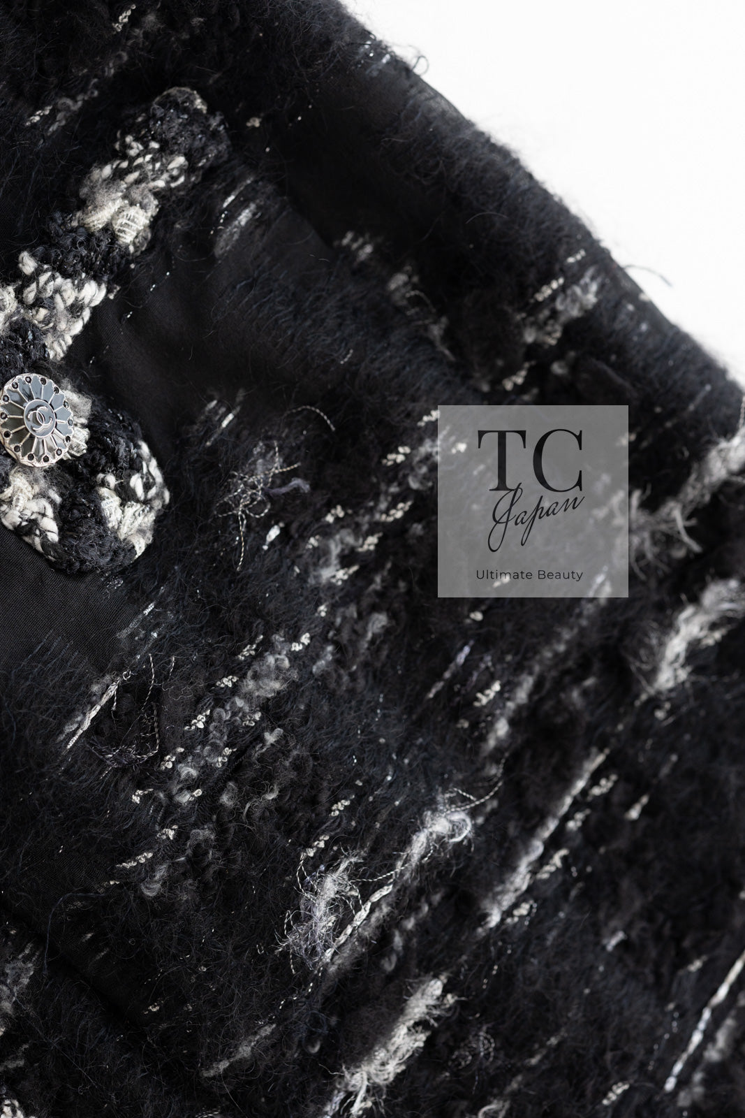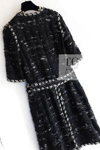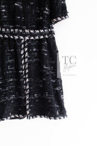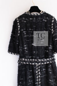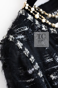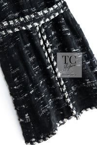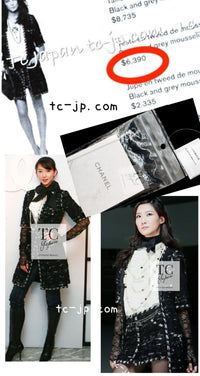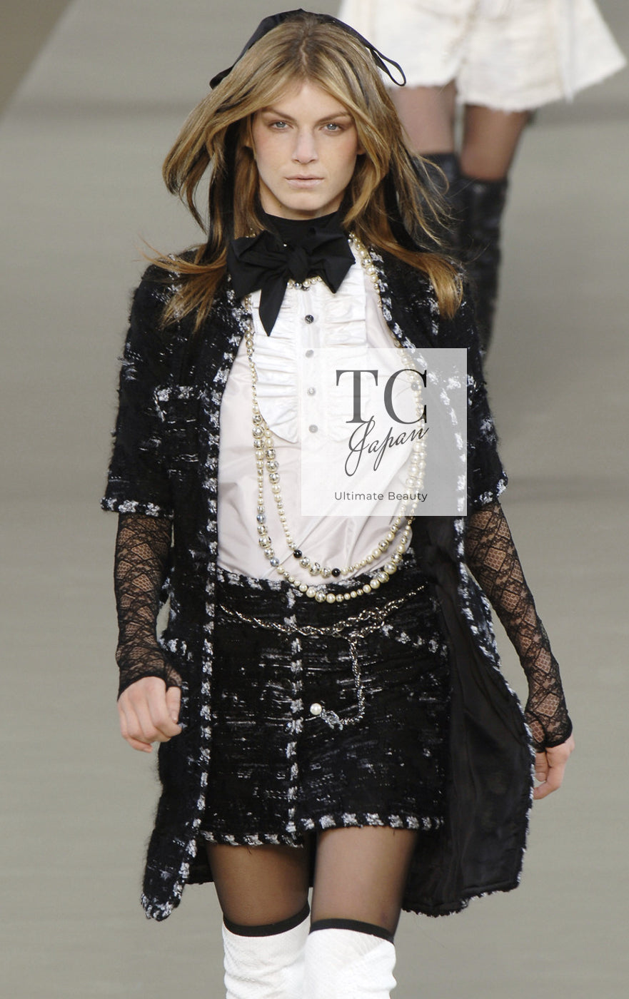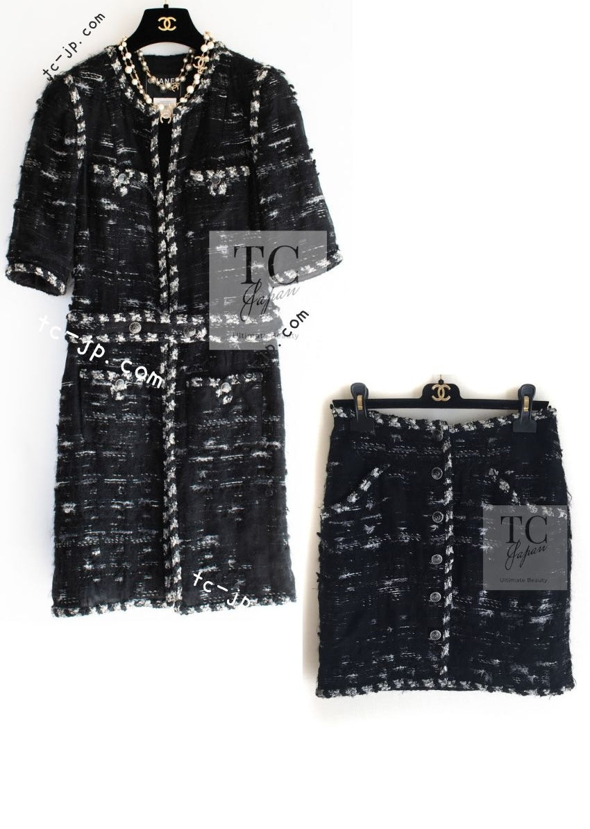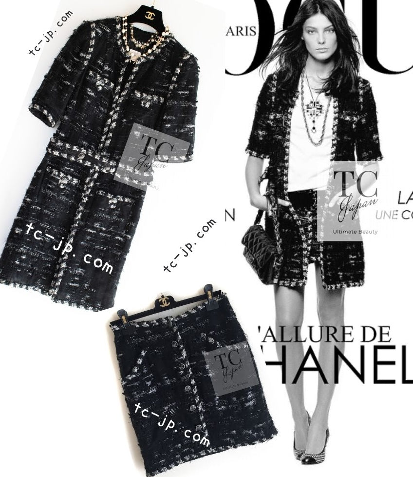 CHANEL 06A Black Wool Mohair Silk Belted Princess Monaco Tweed Jacket Coat Setup Skirt 38 シャネル 女優 モナコ王妃のブラック ウール モヘア シルク ベルト付 ツイード ジャケット コート スカート セットアップ 即発