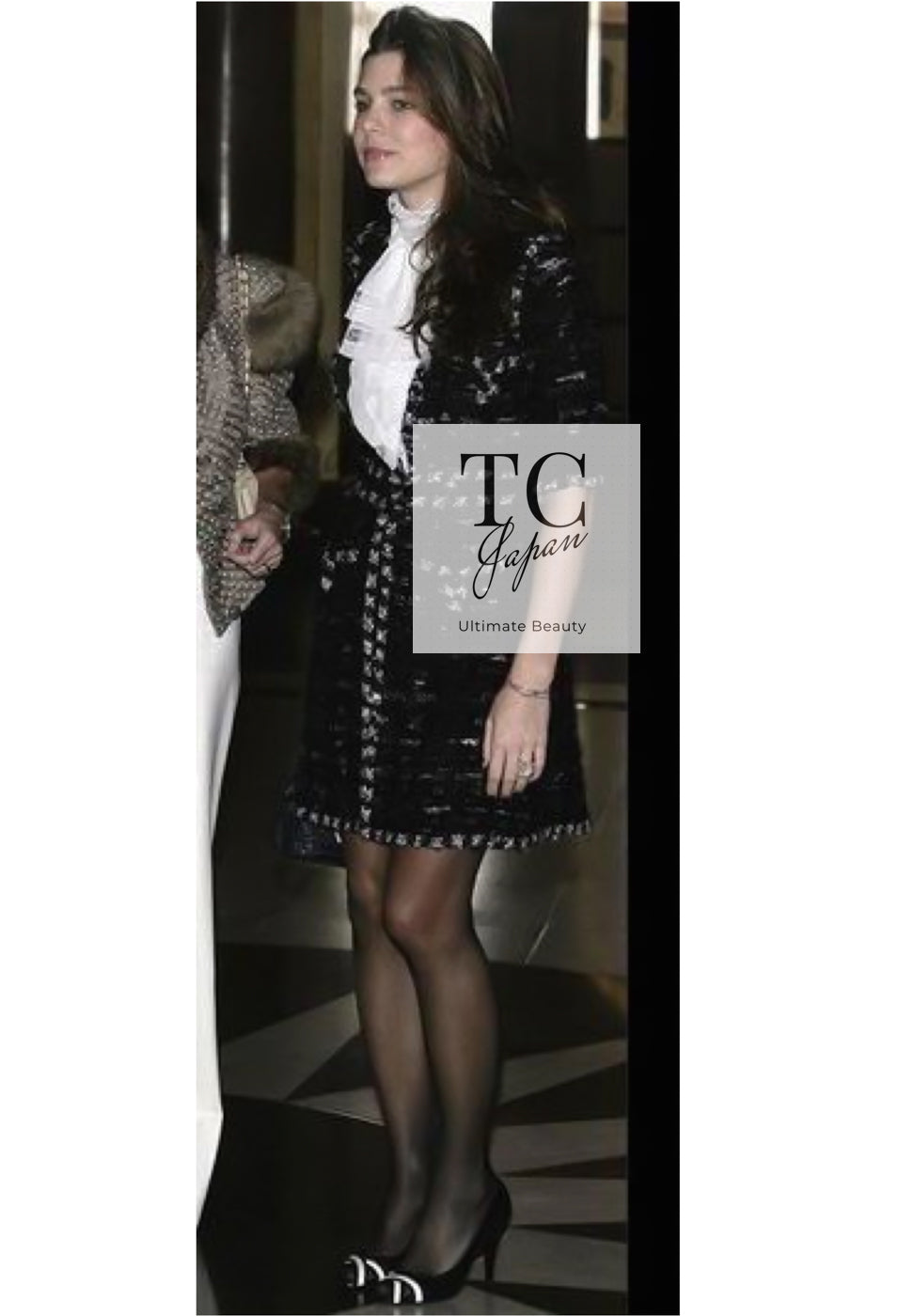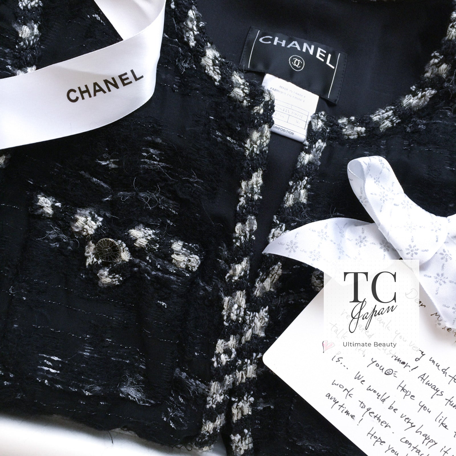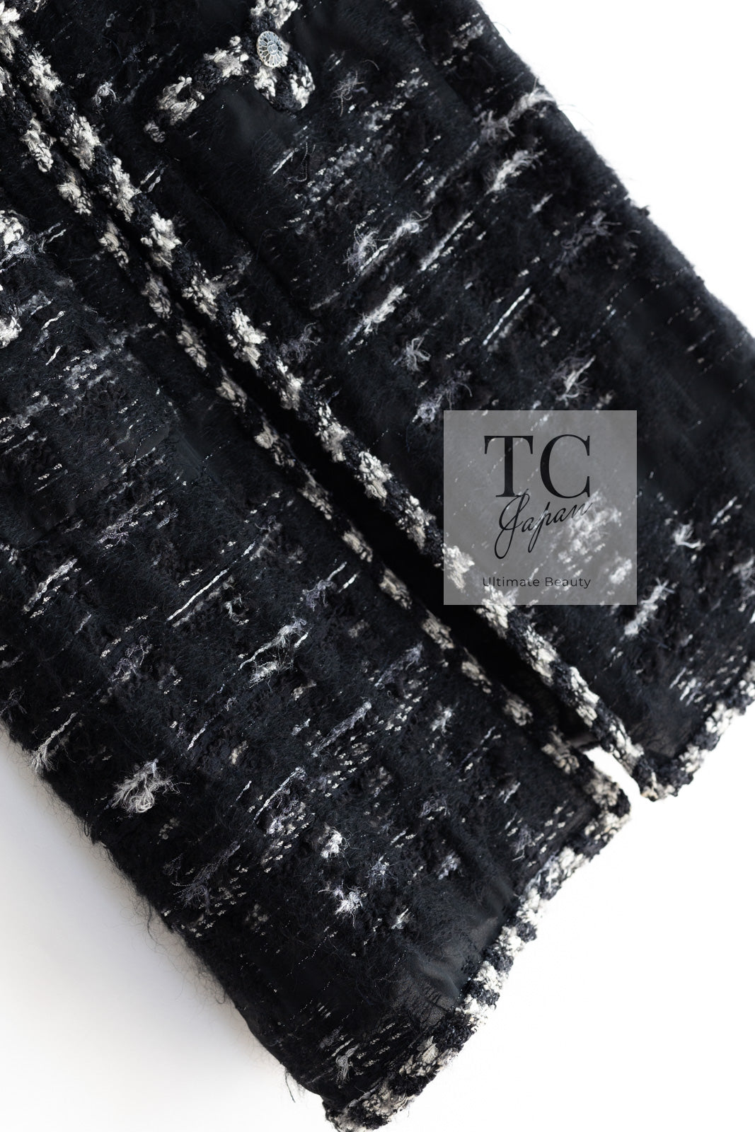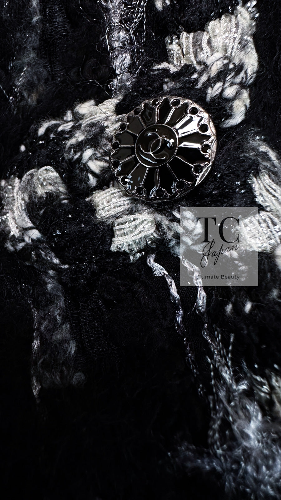 CHANEL 06A Black Wool Mohair Silk Belted Princess Monaco Tweed Jacket Coat Setup Skirt 38 シャネル 女優 モナコ王妃のブラック ウール モヘア シルク ベルト付 ツイード ジャケット コート スカート セットアップ 即発
