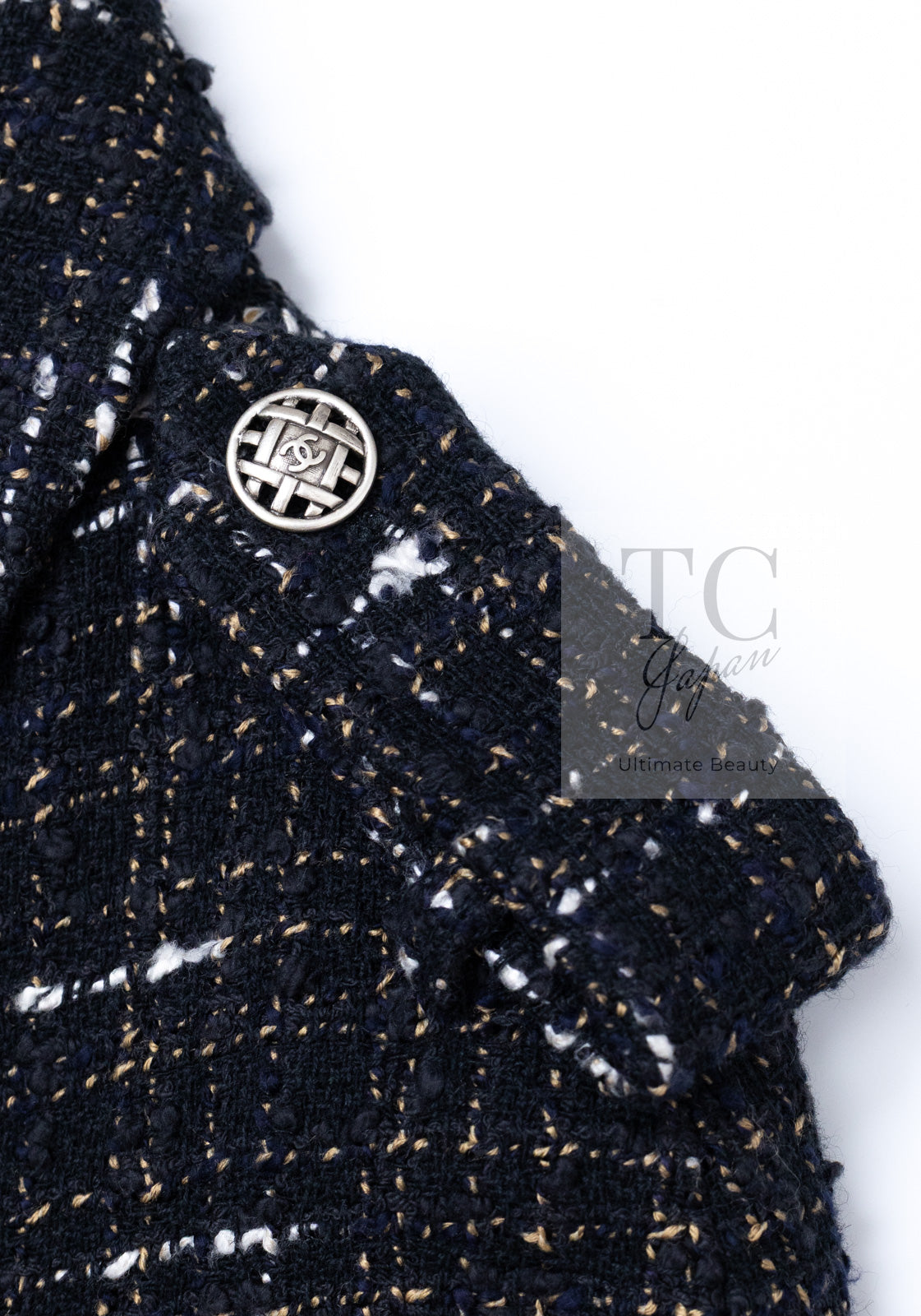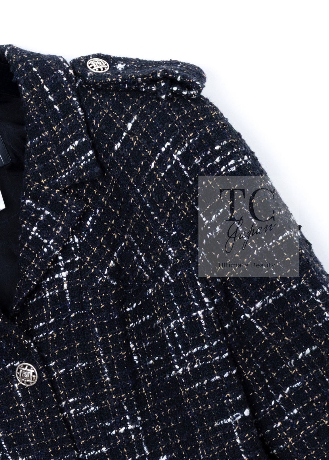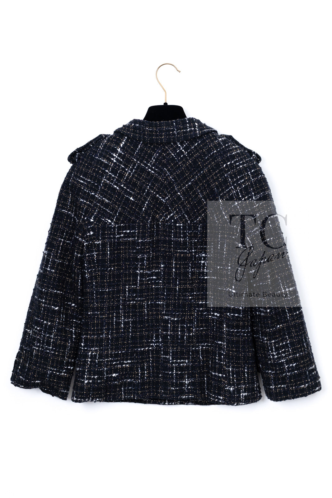 CHANEL 06C Black Brown White Epaulets Tweed Jacket 36 38 シャネル ブラック ブラウン ホワイト エポレット ツイード ジャケット 即発