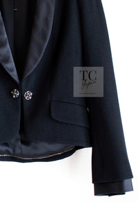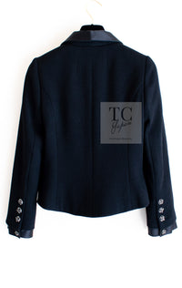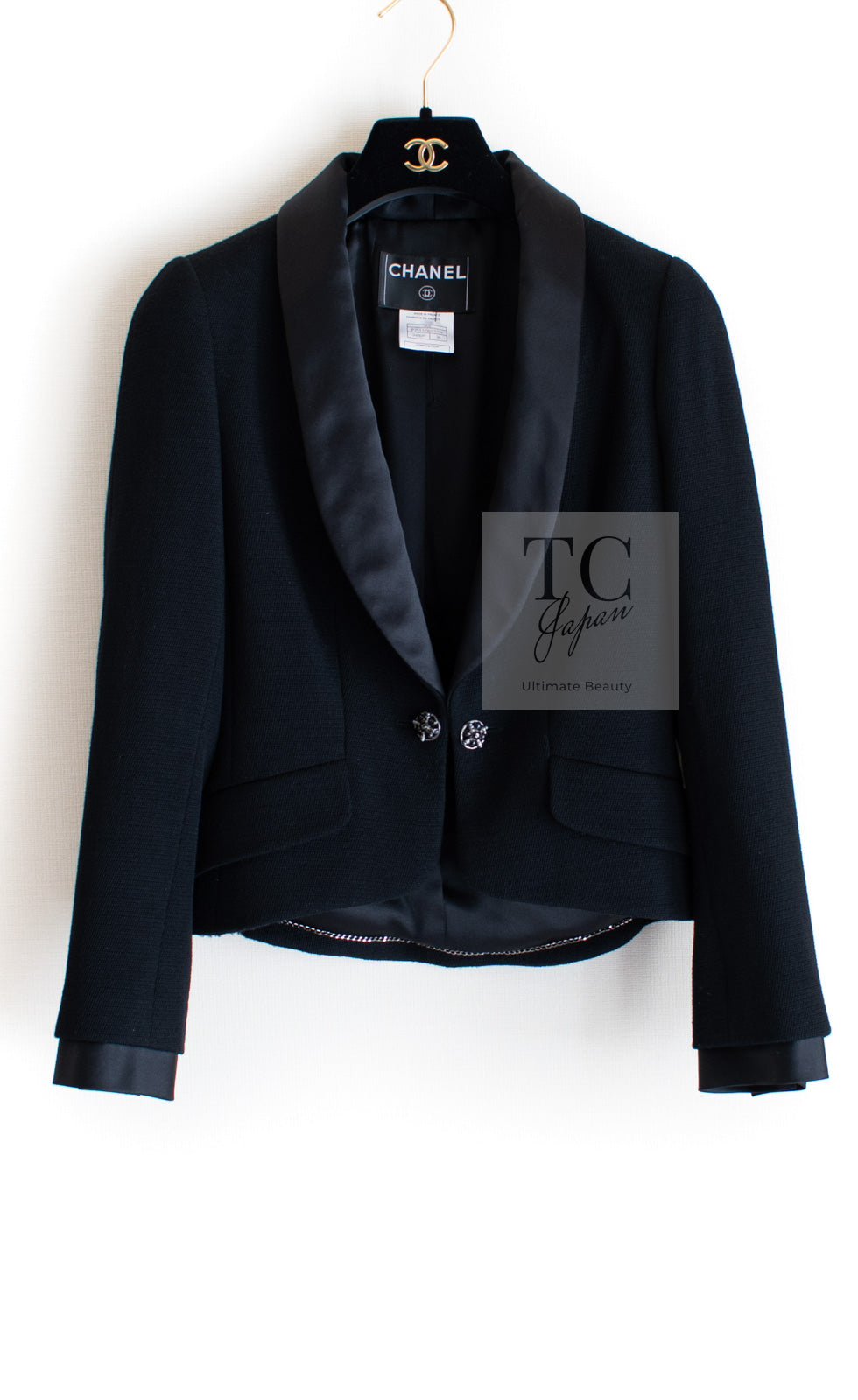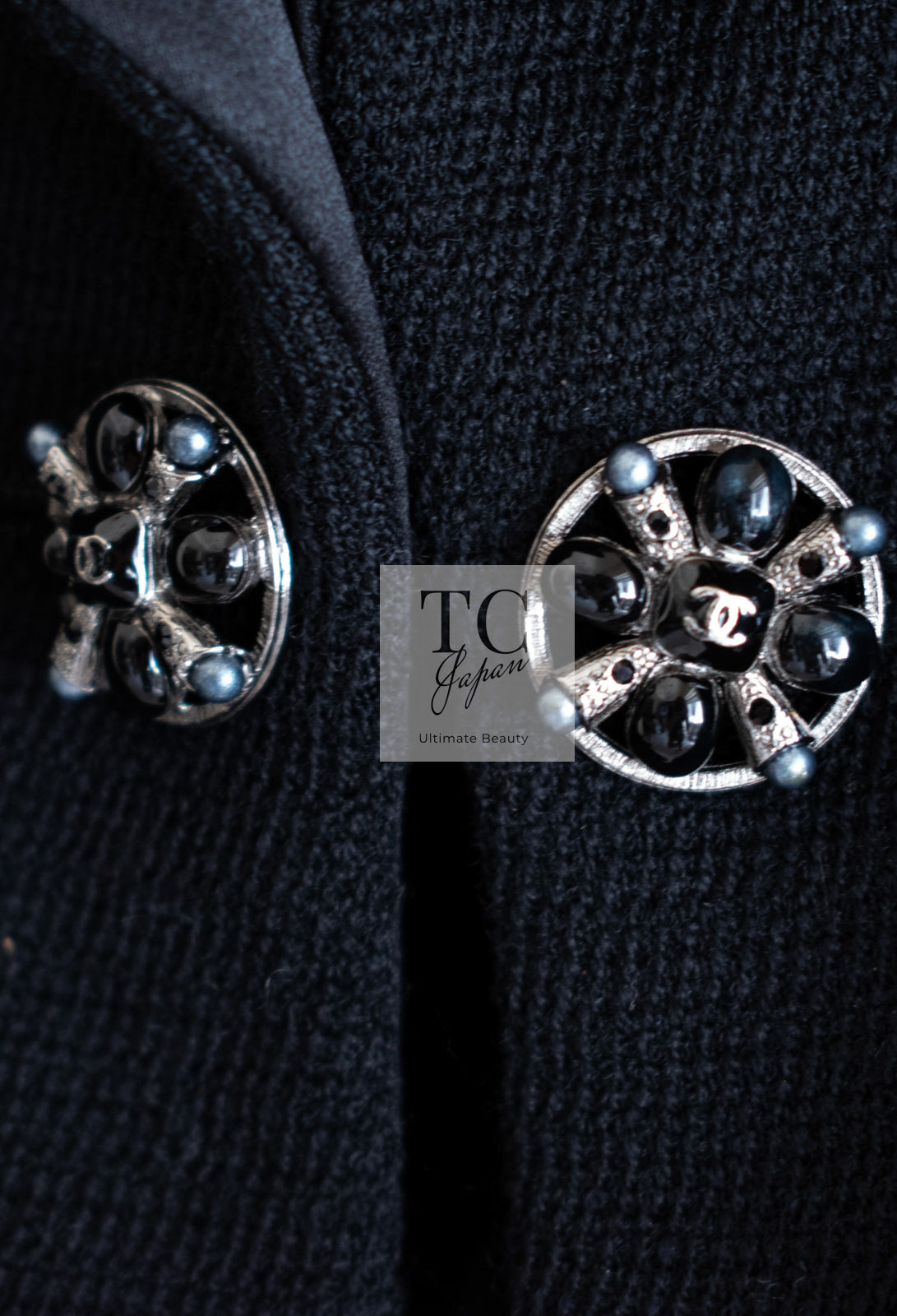CHANEL 06PF Black Wool Silk Collar Gripoix Button Jacket 34 46 シャネル ブラック ウール シルク襟 グリポア 宝石ボタン ジャケット 即発