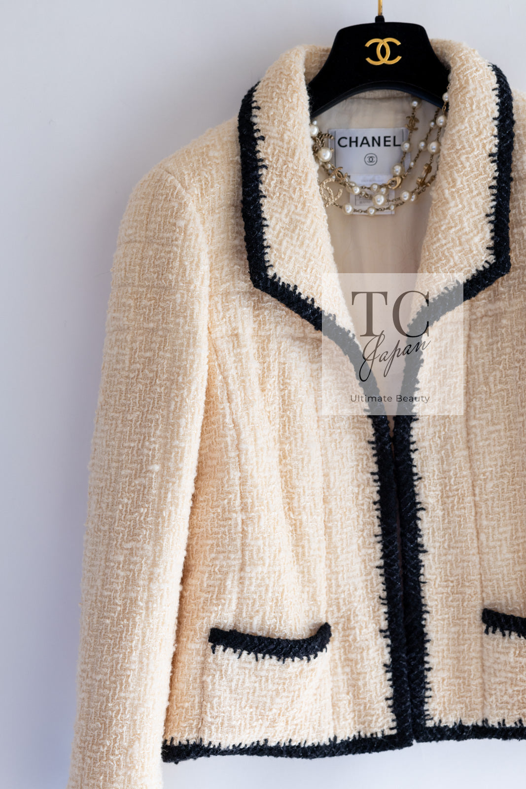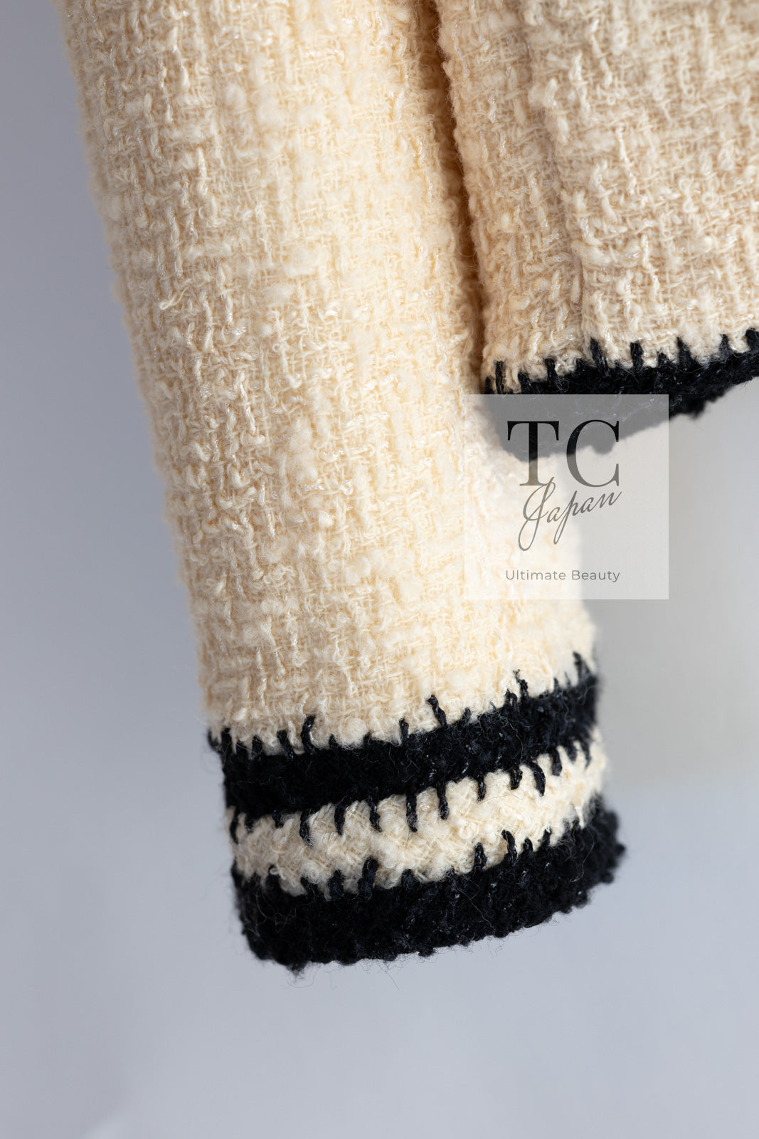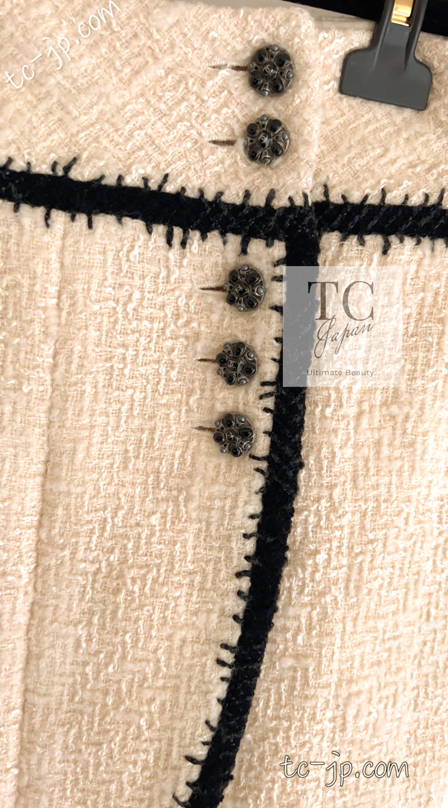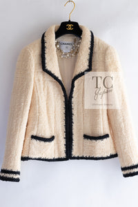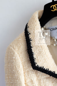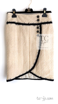 CHANEL 06PF Ivory Black Trim Boucle Tweed Jacket Skirt Suit 38 40 シャネル アイボリー ブラック トリミング ブークレ ツイード ジャケット スカート スーツ 即発