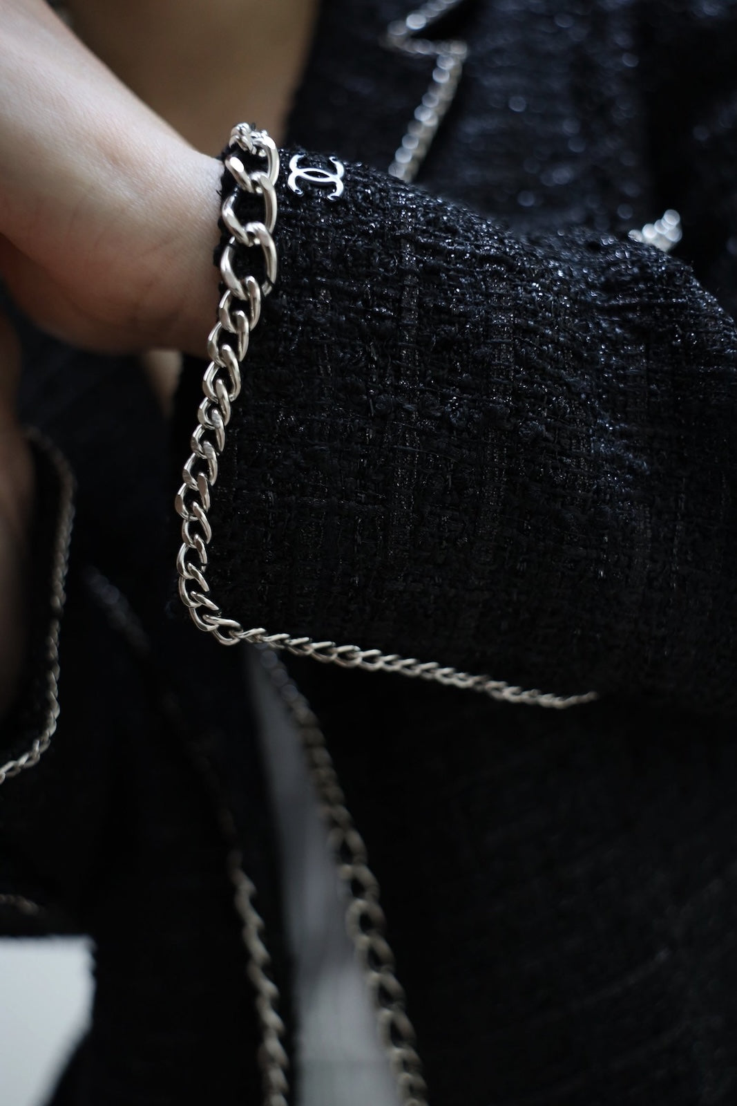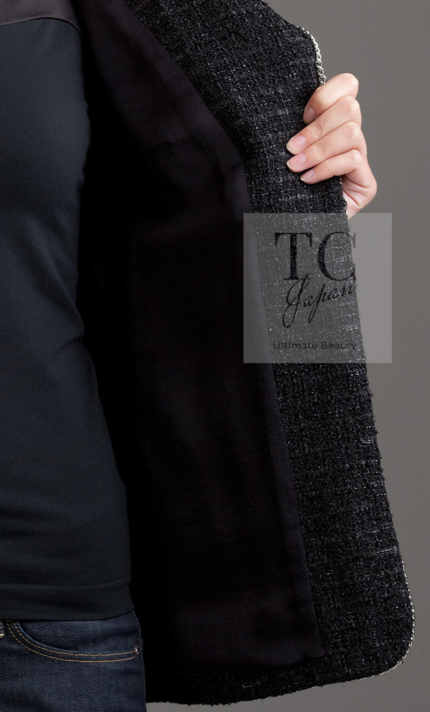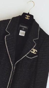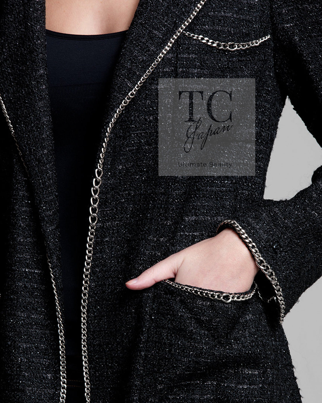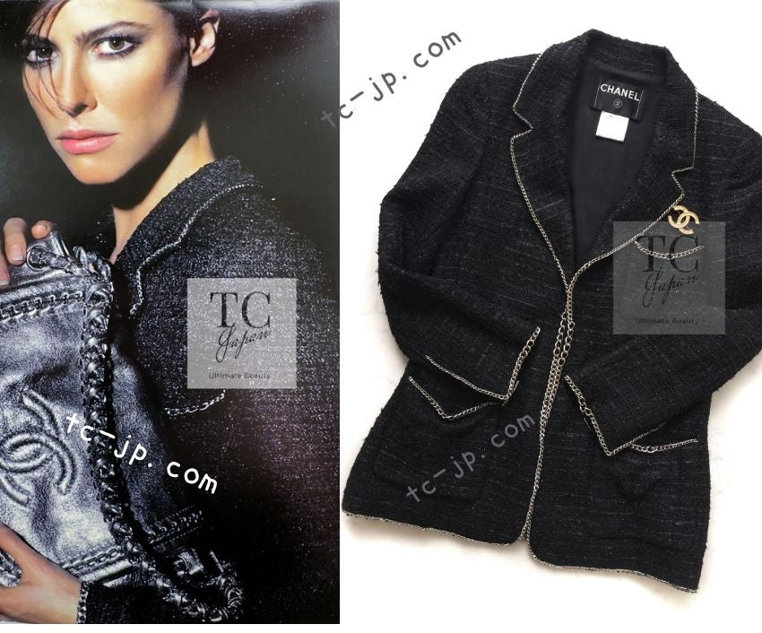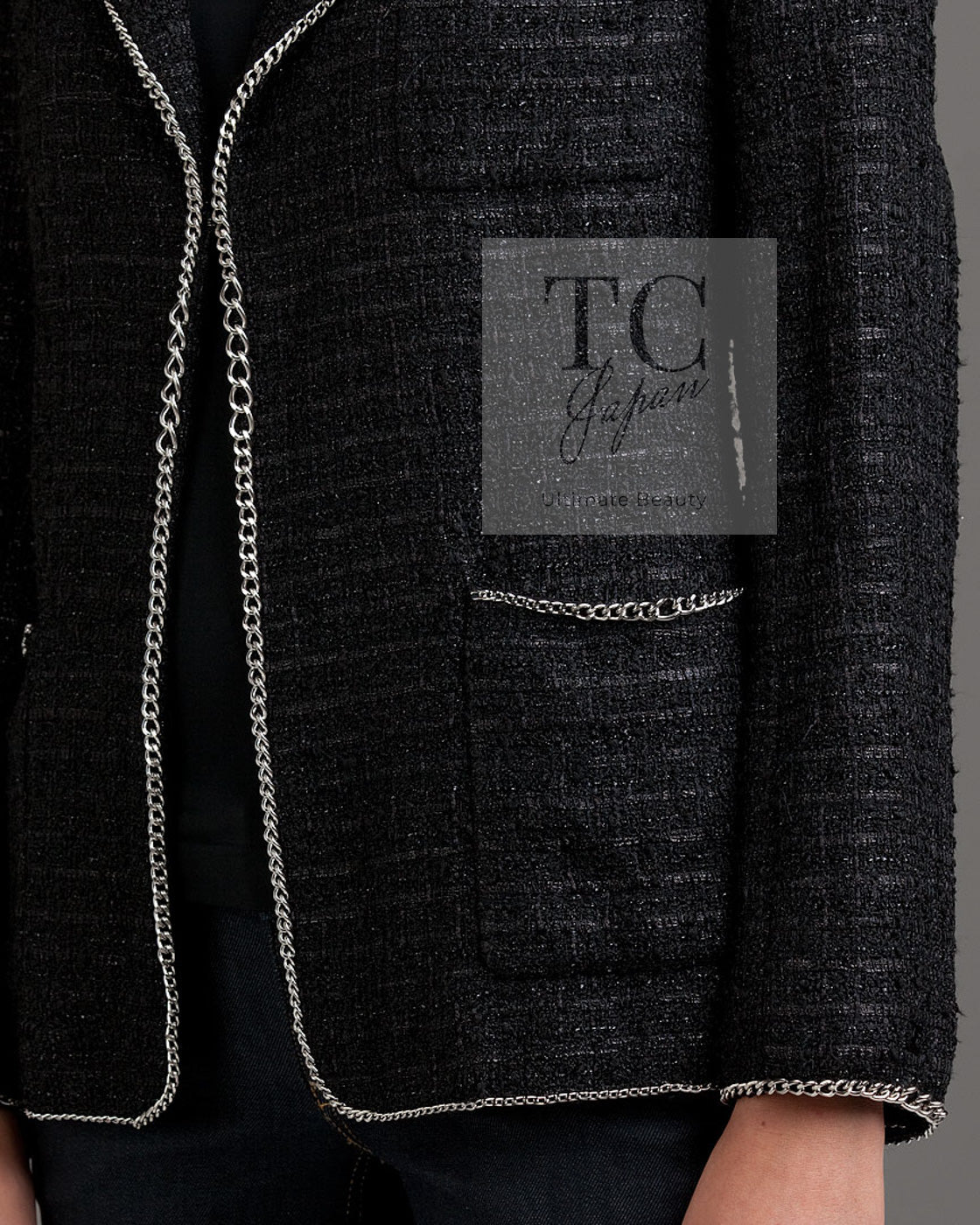 CHANEL 06S Black Metallic Chain Trim Tweed Jacket 38 シャネル ブラック メタリック チェーン トリム ツイード ジャケット 即発