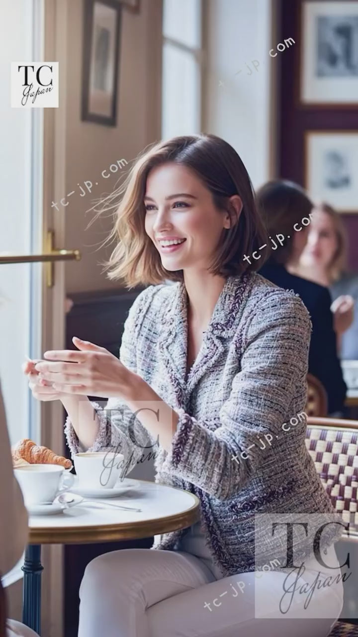 CHANEL 08S Gray Purple Braid Trim Lesage Tweed Jacket 38 シャネル グレー パープル ブレイド トリム CC握手ボタン ルサージュ ツイード ジャケット 即発