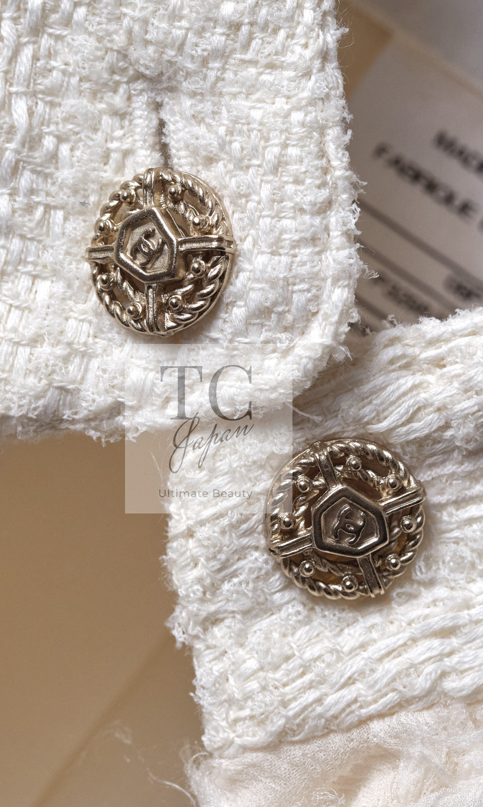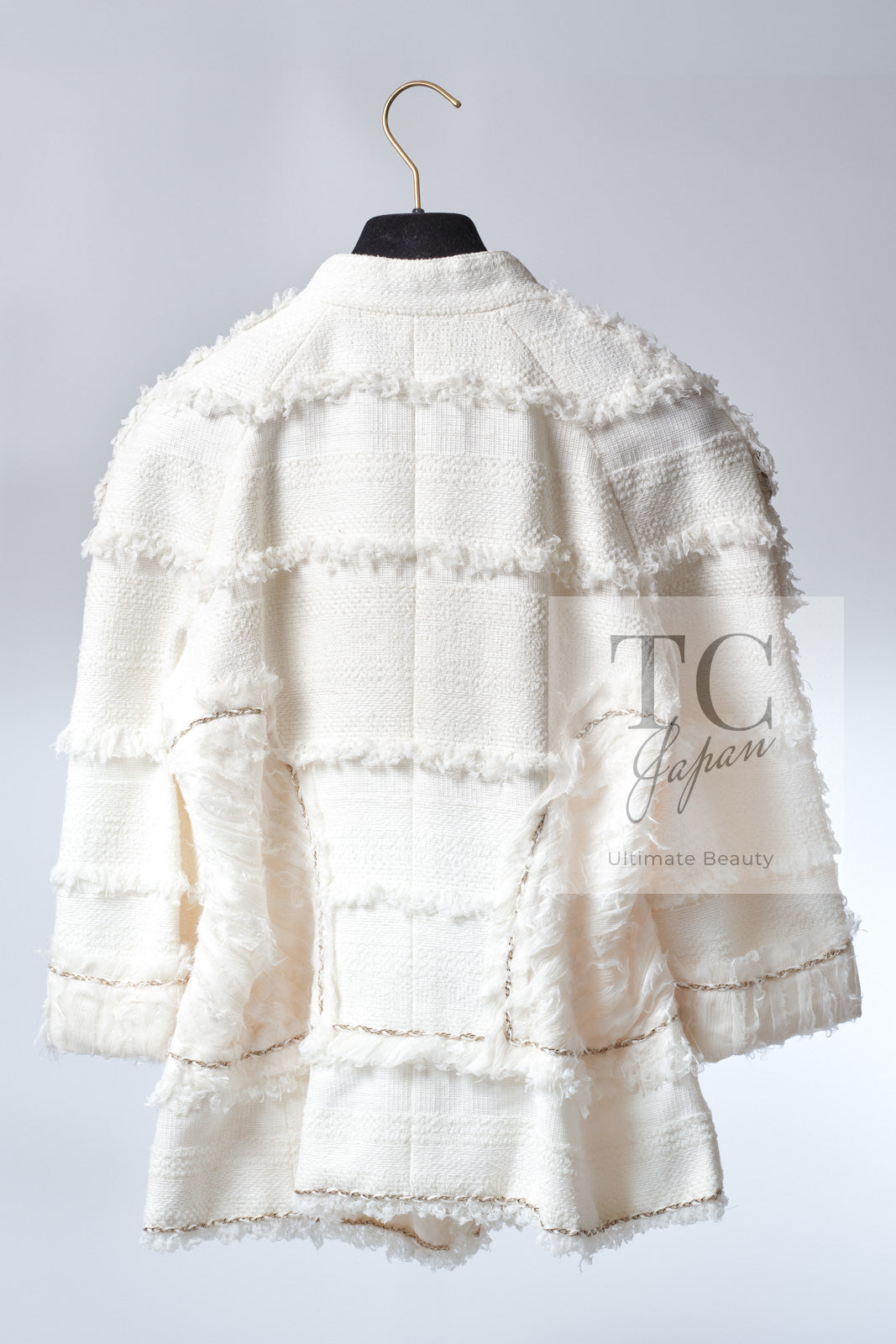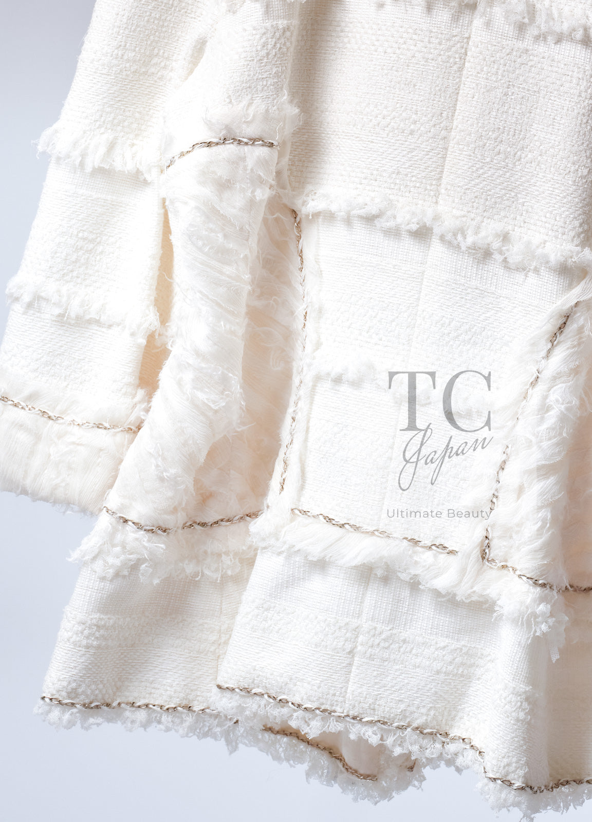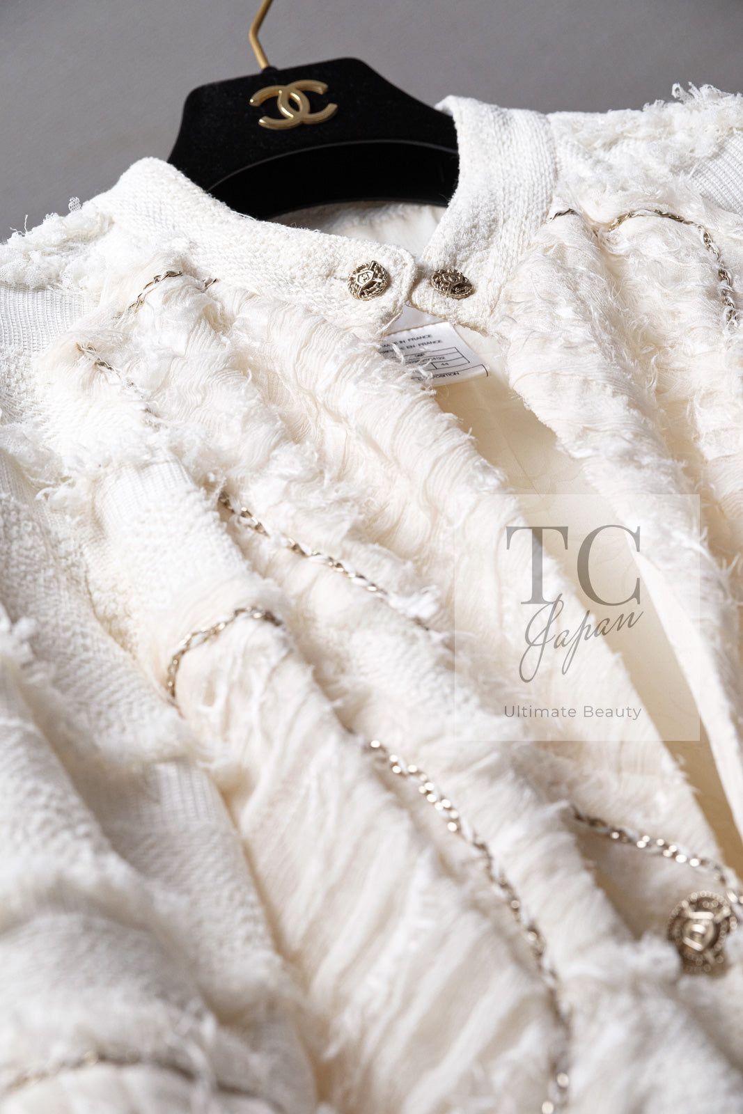 CHANEL 08S Ivory Creme Cotton Silk Chiffon Chain Trim Jacket 42 シャネル アイボリー クリーム コットン シルク シフォン チェーン トリム ジャケット 即発