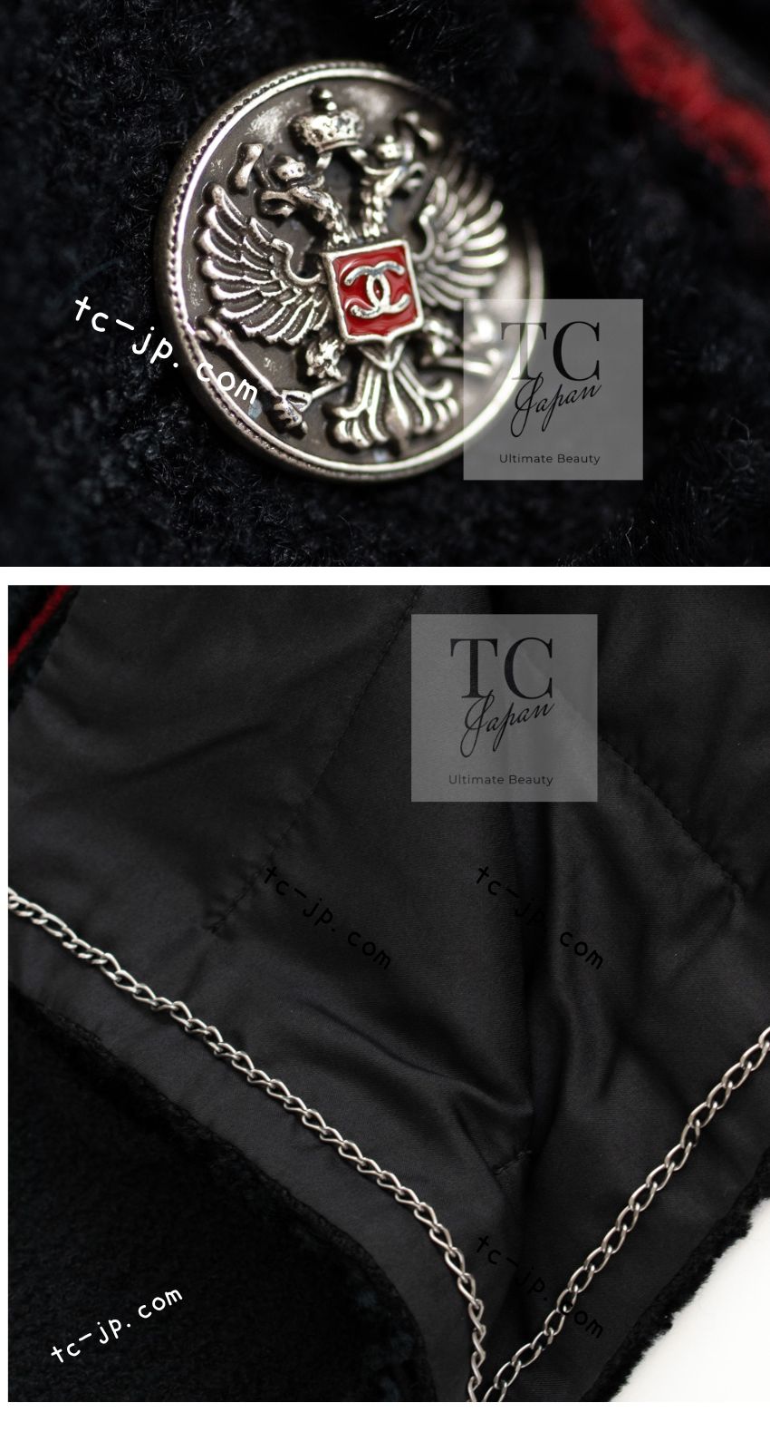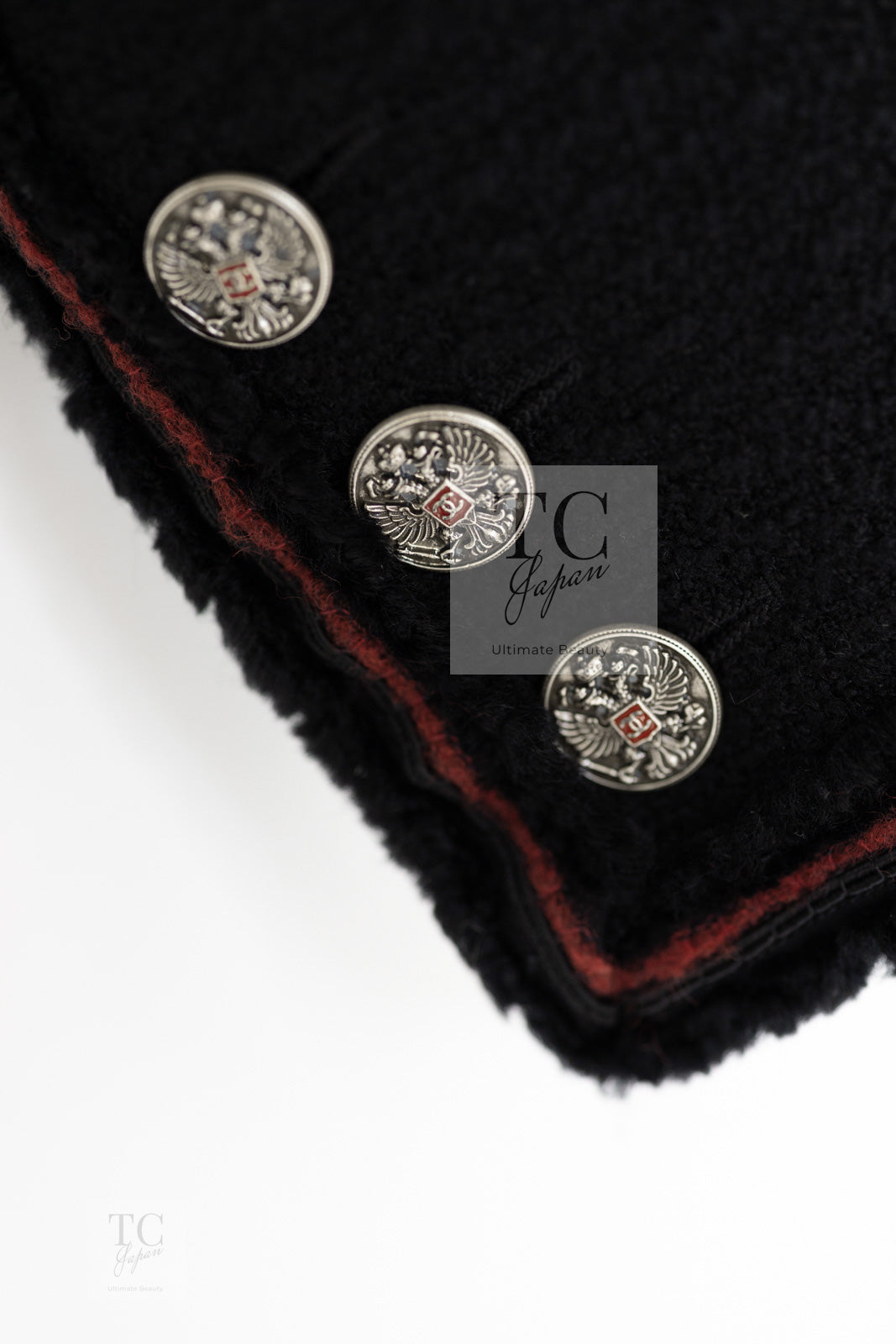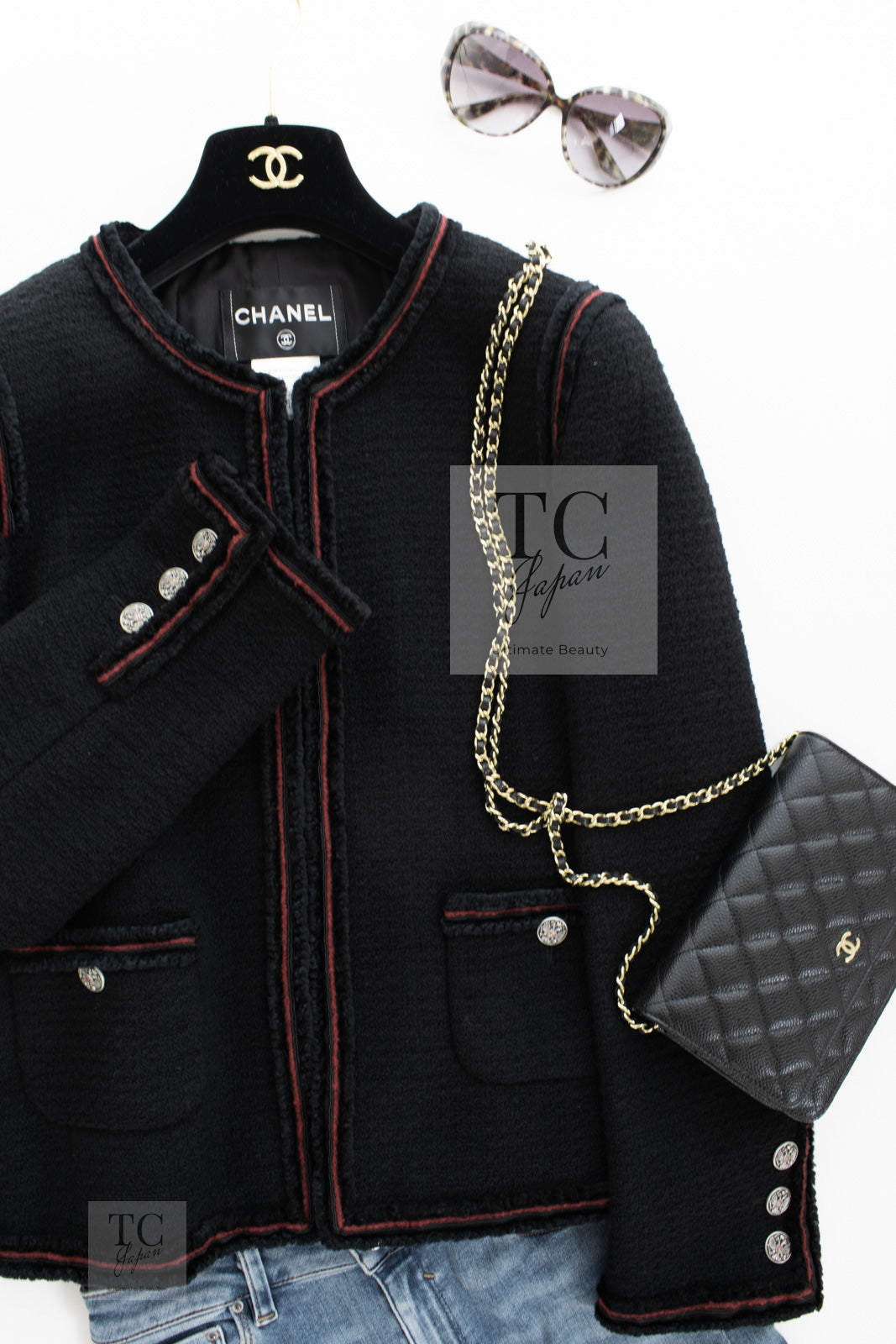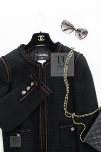 CHANEL 09PF Black Red Trim Moscow Wool Tweed Jacket 34 40 42 シャネル ブラック レッド トリム ロマノフ ウール ツイード ジャケット 即発
