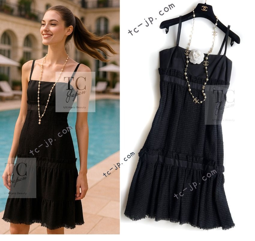 CHANEL 09S Black Tweed Dress 36 シャネル ブラック キャミソール ツイード ワンピース 冠婚葬祭 即発