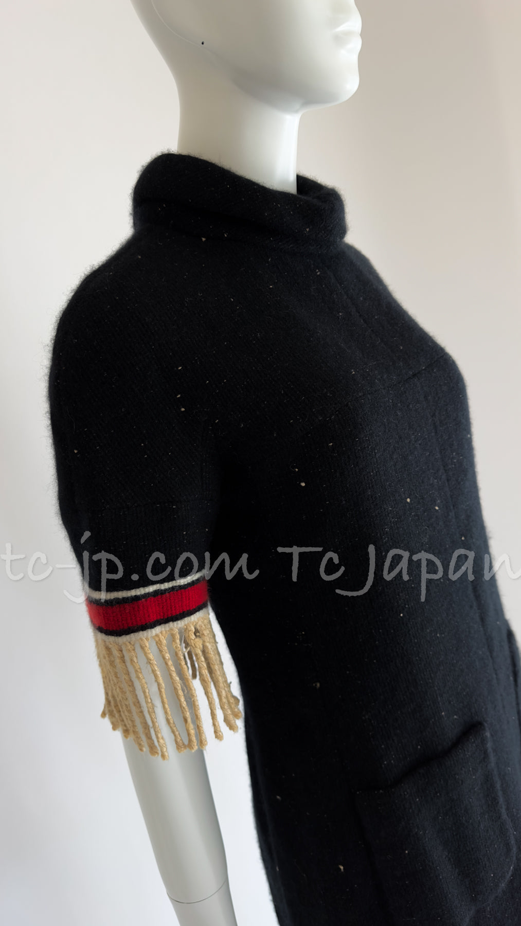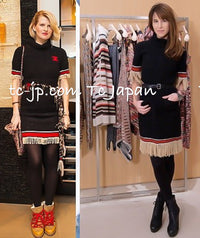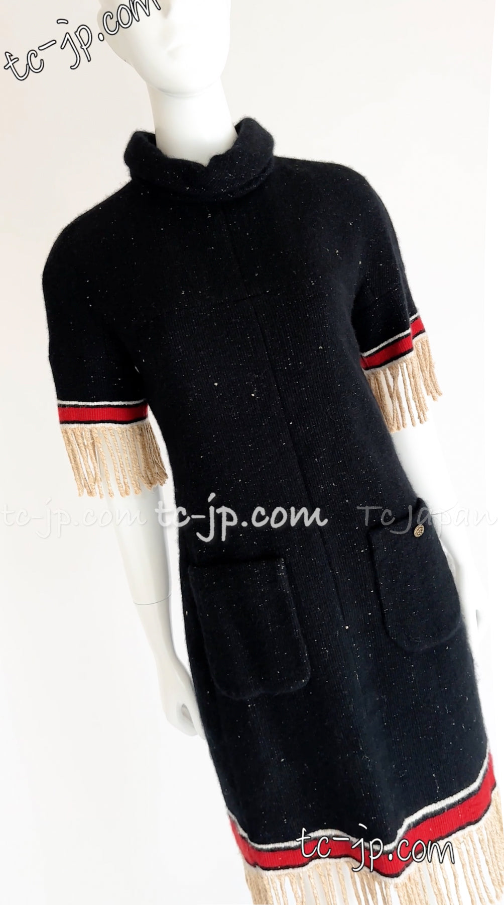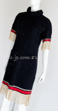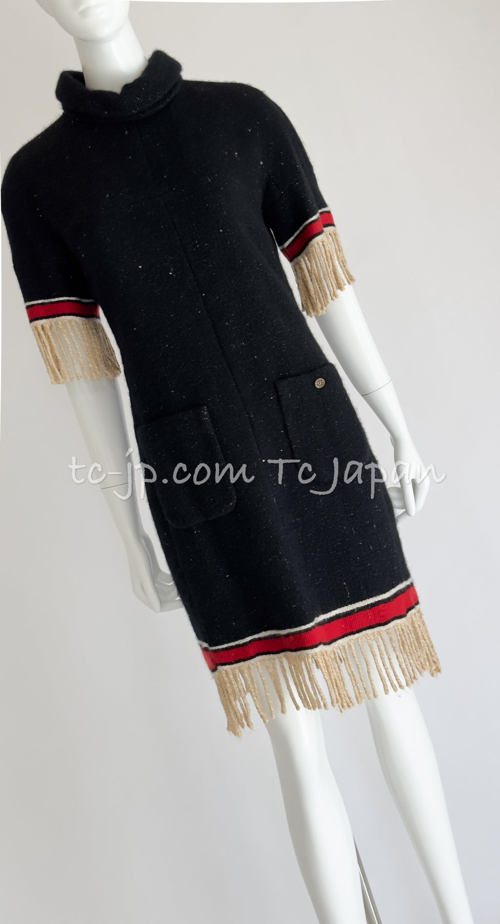 CHANEL 10A Black Fringe Trim Cashmere Silk Dress Jessica Alba 38 40 シャネル ブラック フリンジ トリム カシミア シルク ワンピース 安室奈美恵さん 即発