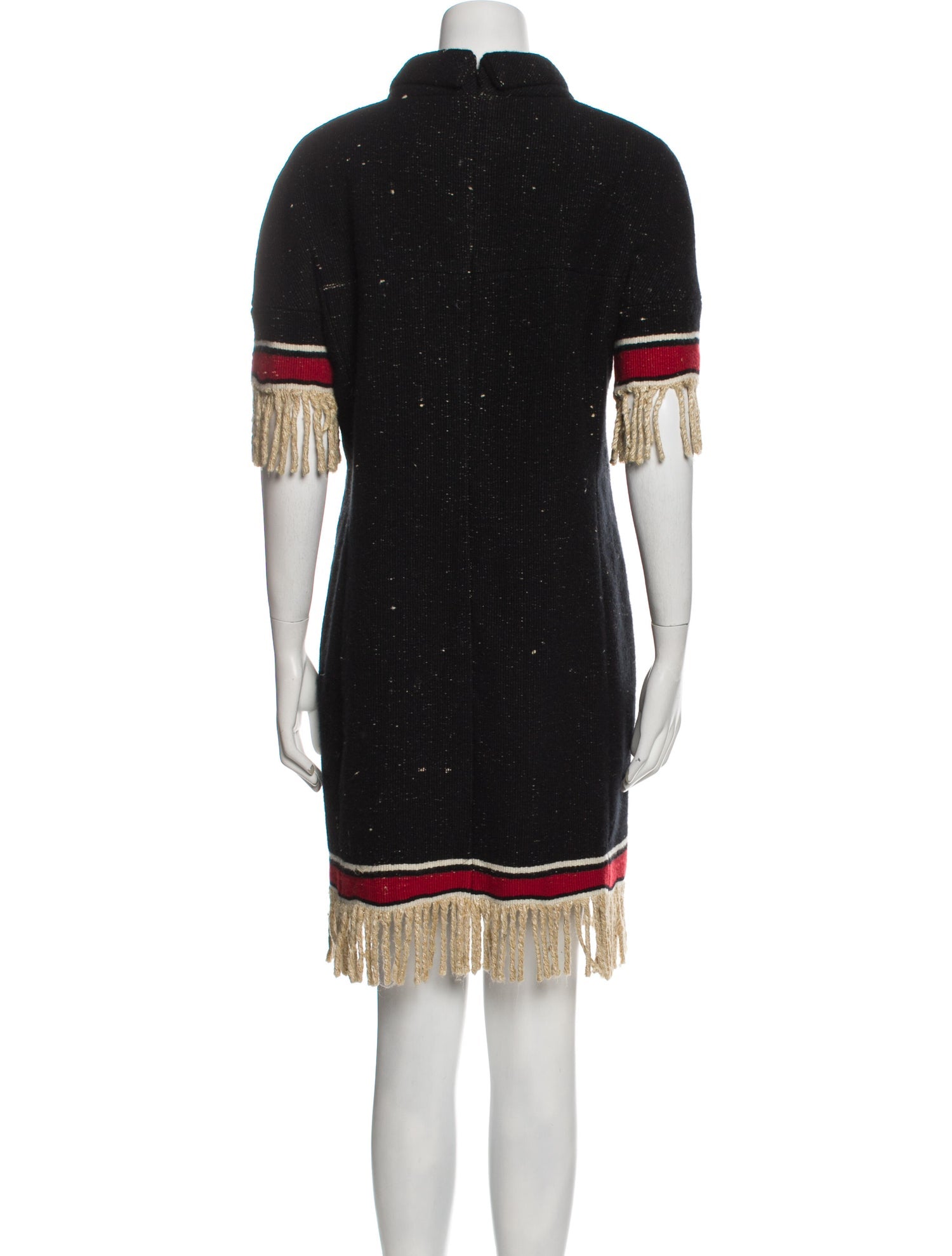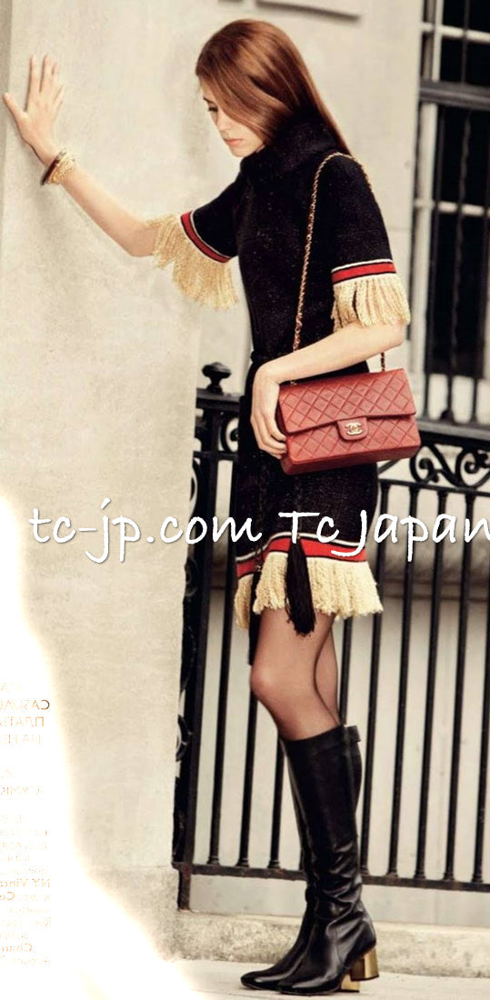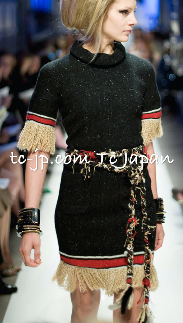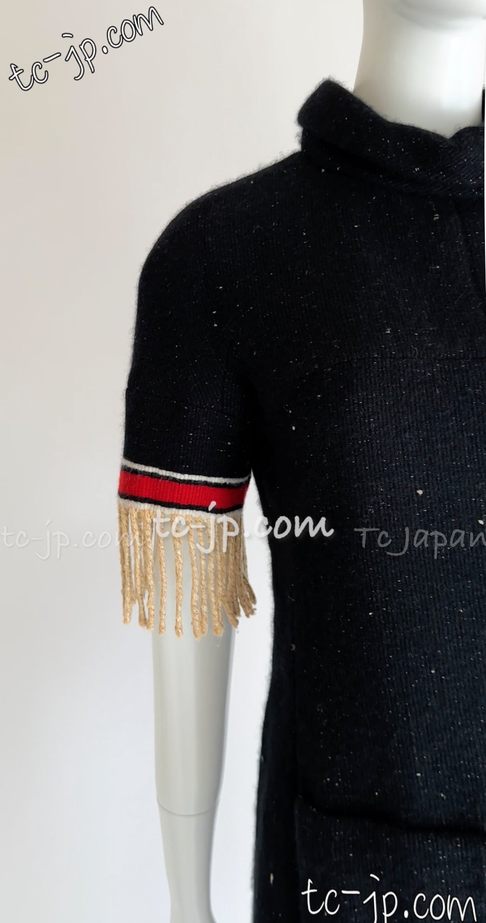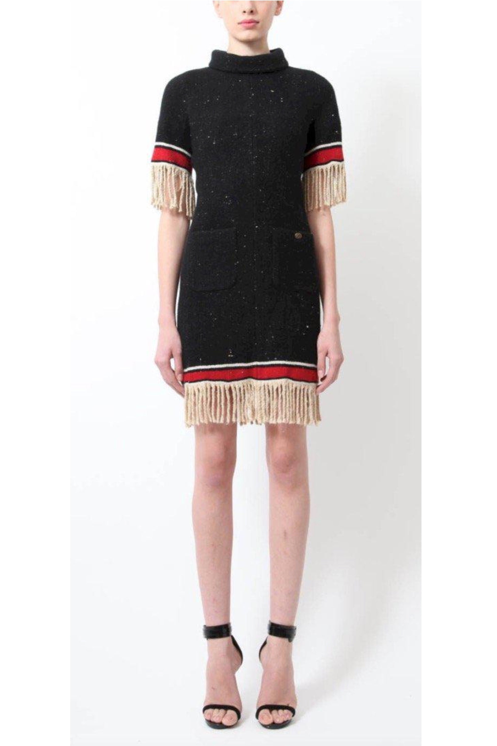 CHANEL 10A Black Fringe Trim Cashmere Silk Dress Jessica Alba 38 40 シャネル ブラック フリンジ トリム カシミア シルク ワンピース 安室奈美恵さん 即発