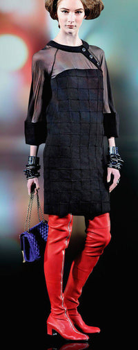 CHANEL 10PF Black Satin Trimmed Wool Dress 36 シャネル ブラック オーガンジー 妖艶 ワンピース