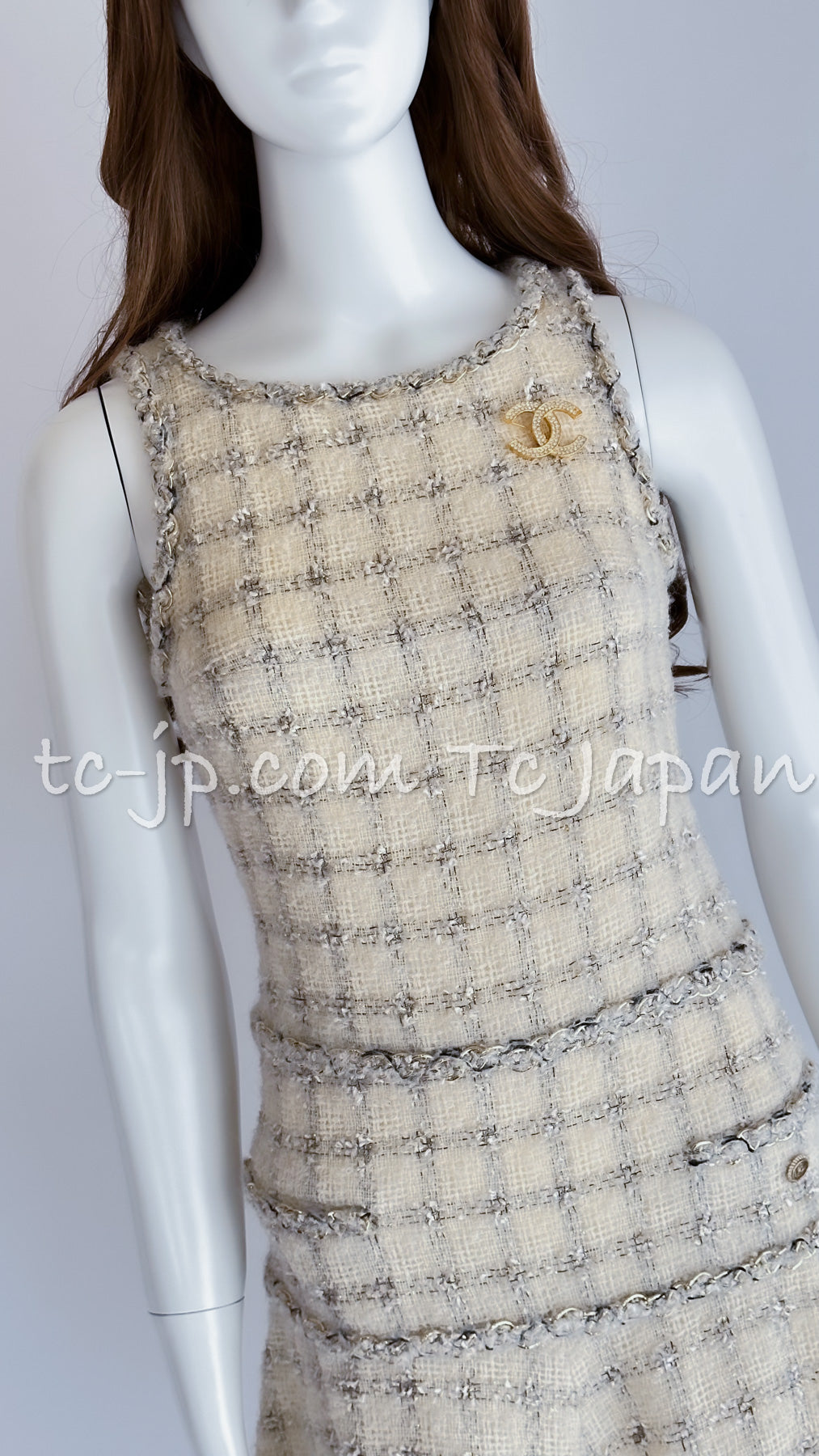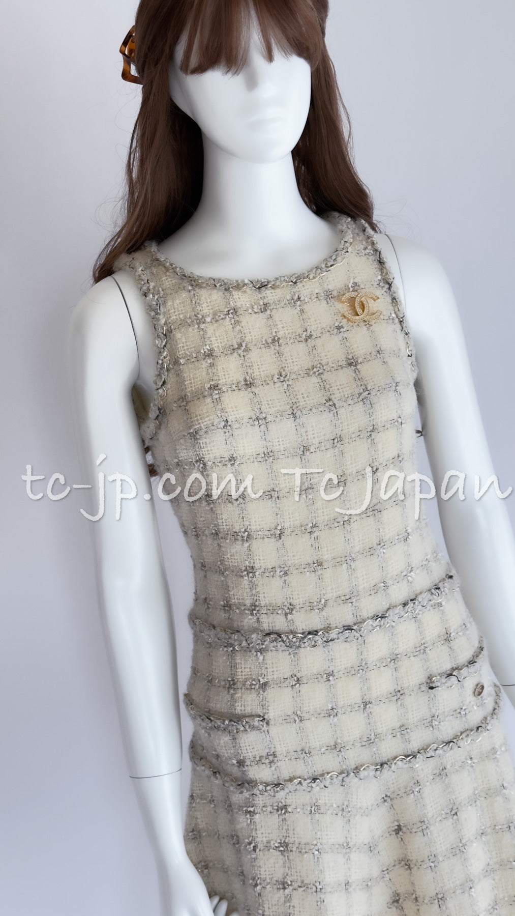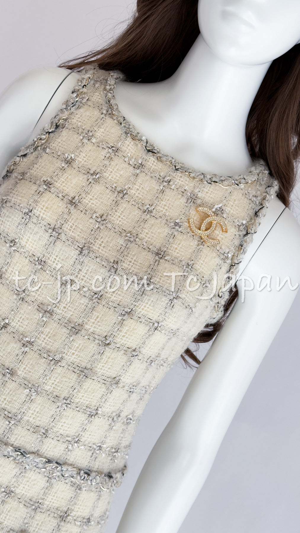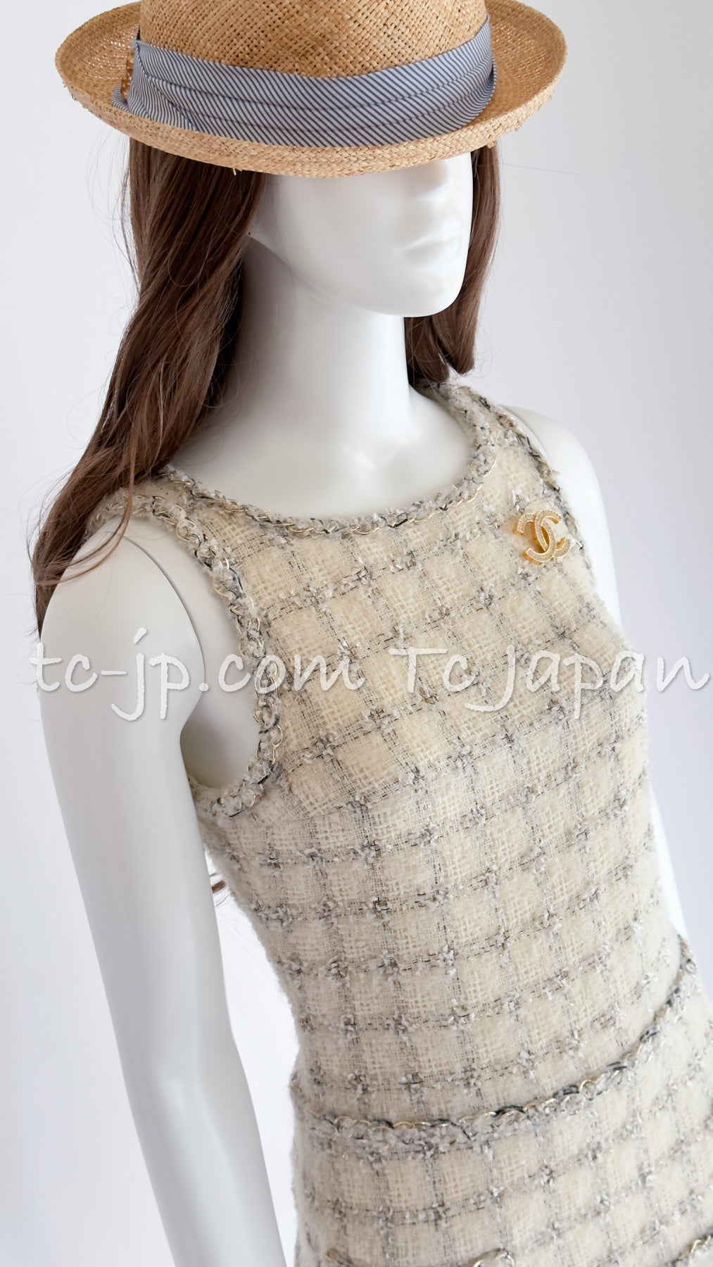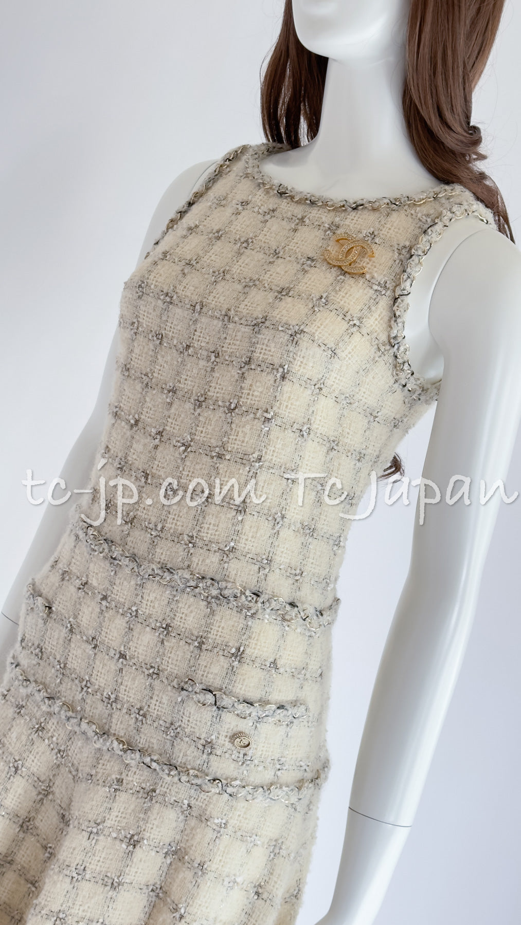 CHANEL 11A $6K Uma Thurman ivory Wool Gold Chain Trimming Dress 34 36 38 シャネル アイボリー ウール チェーン トリム ワンピース 即発