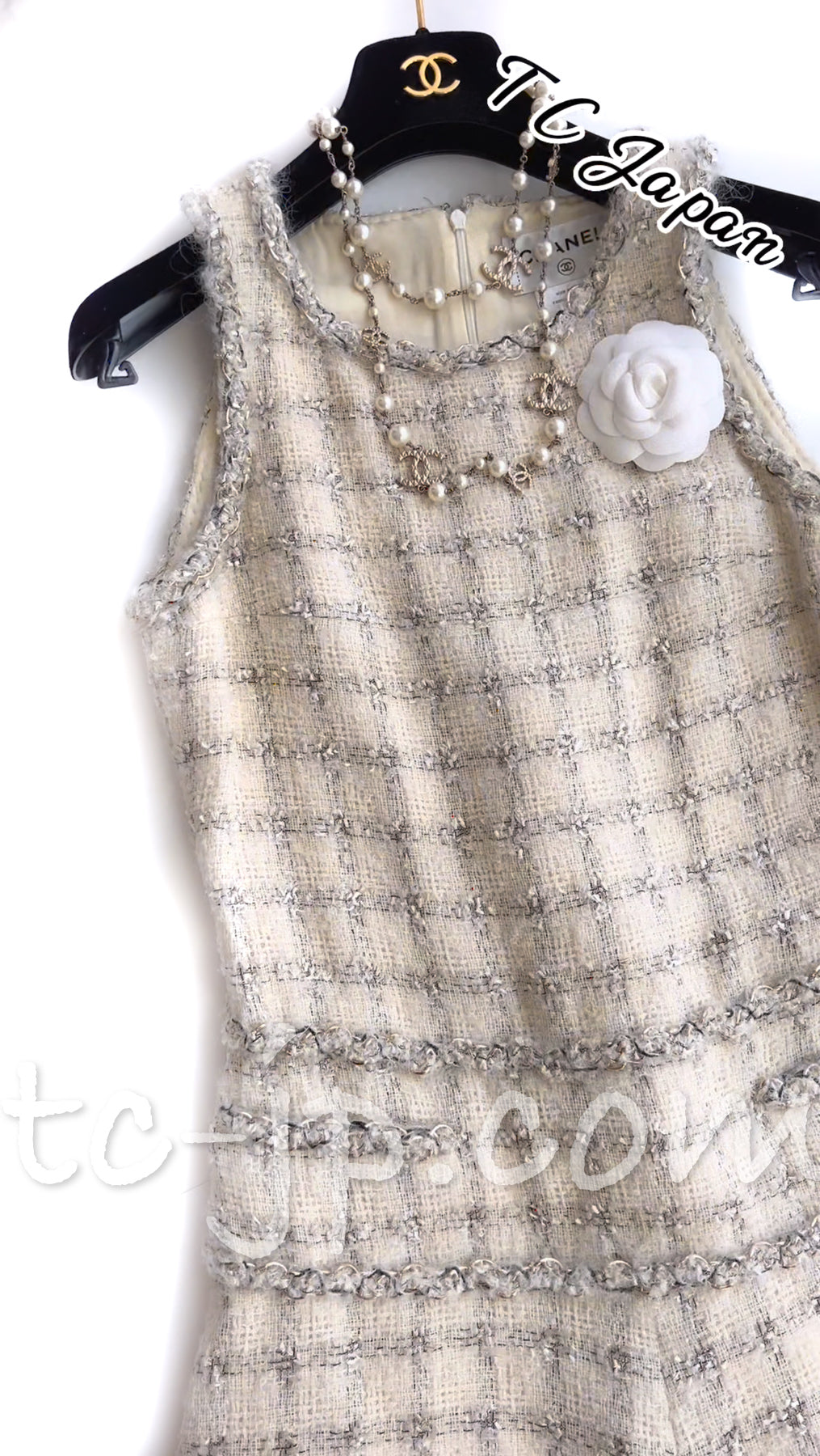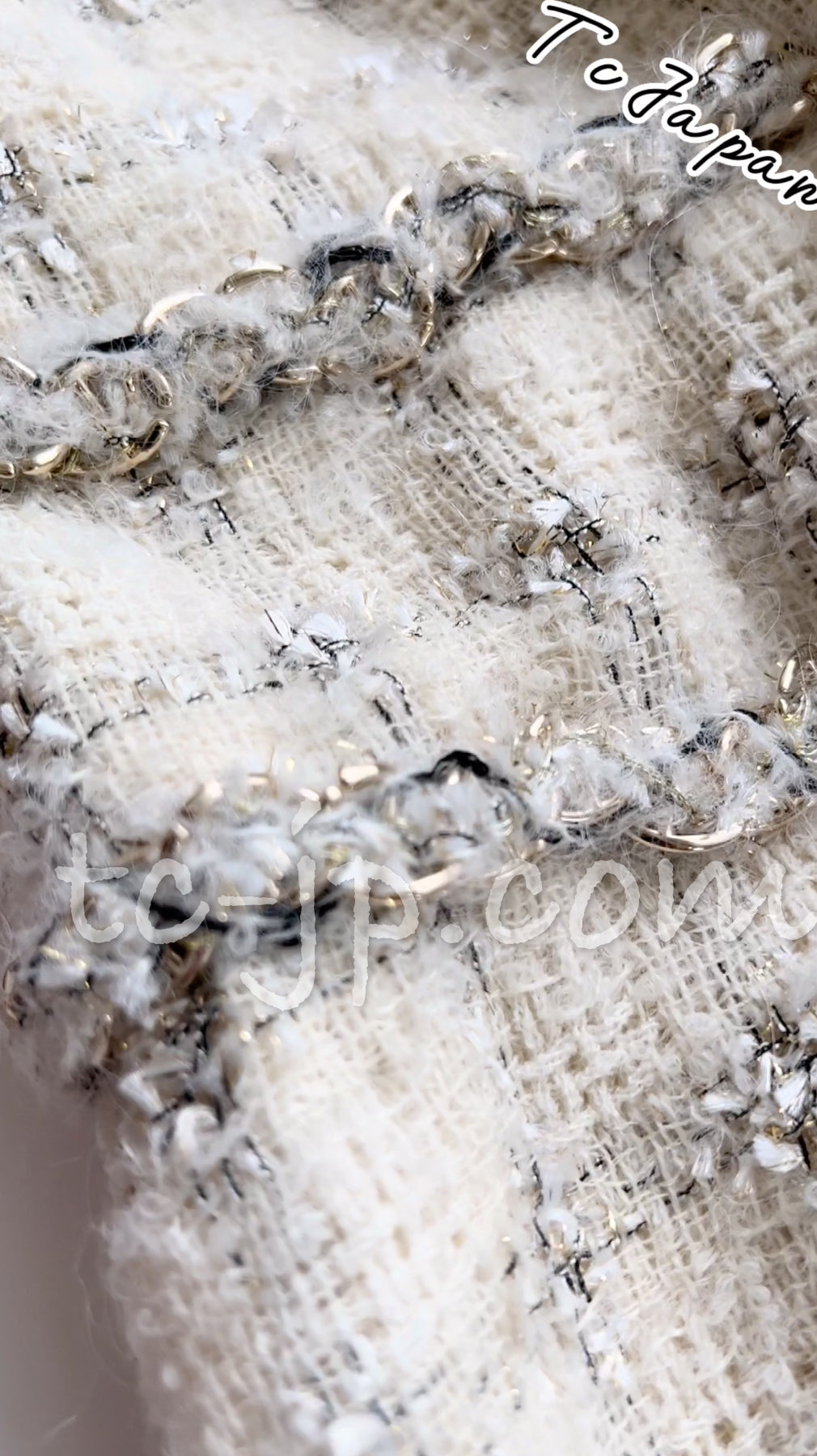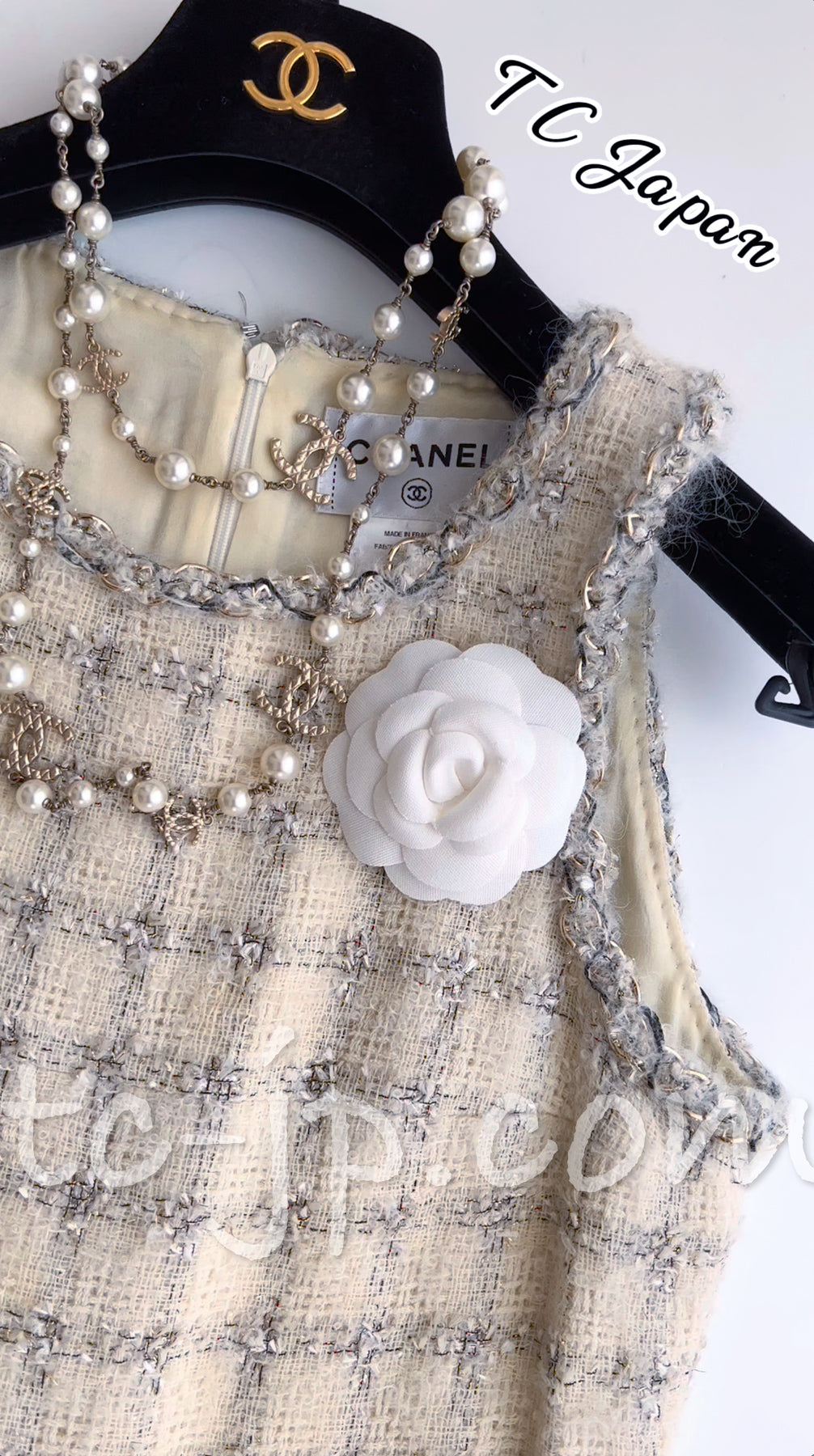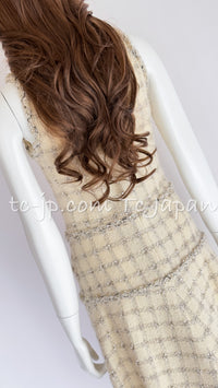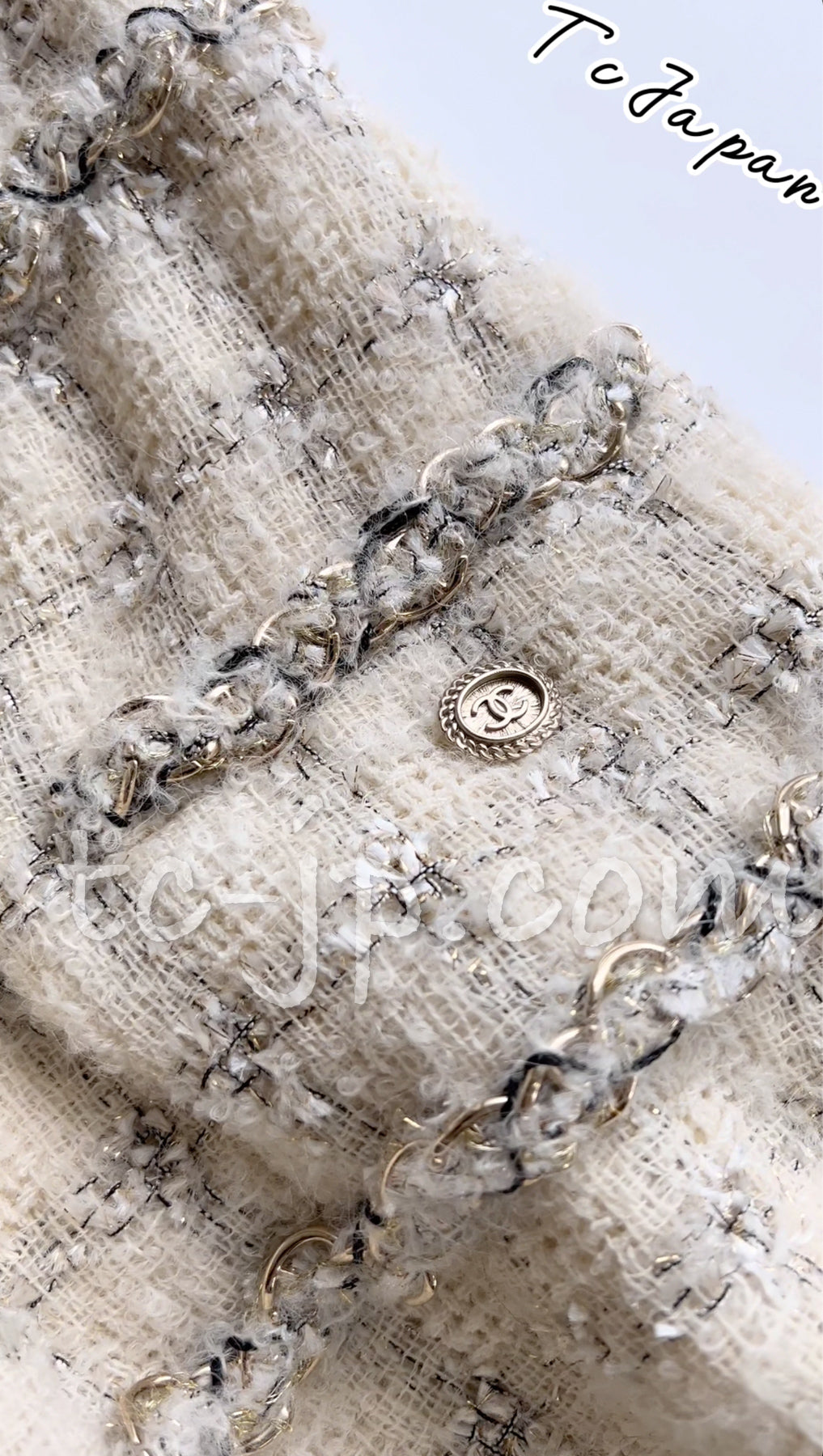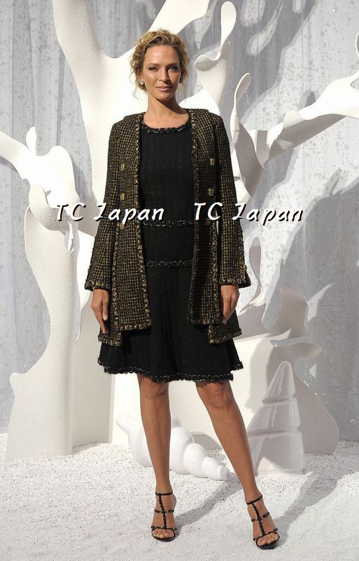 CHANEL 11A $6K Uma Thurman ivory Wool Gold Chain Trimming Dress 34 36 38 シャネル アイボリー ウール チェーン トリム ワンピース 即発