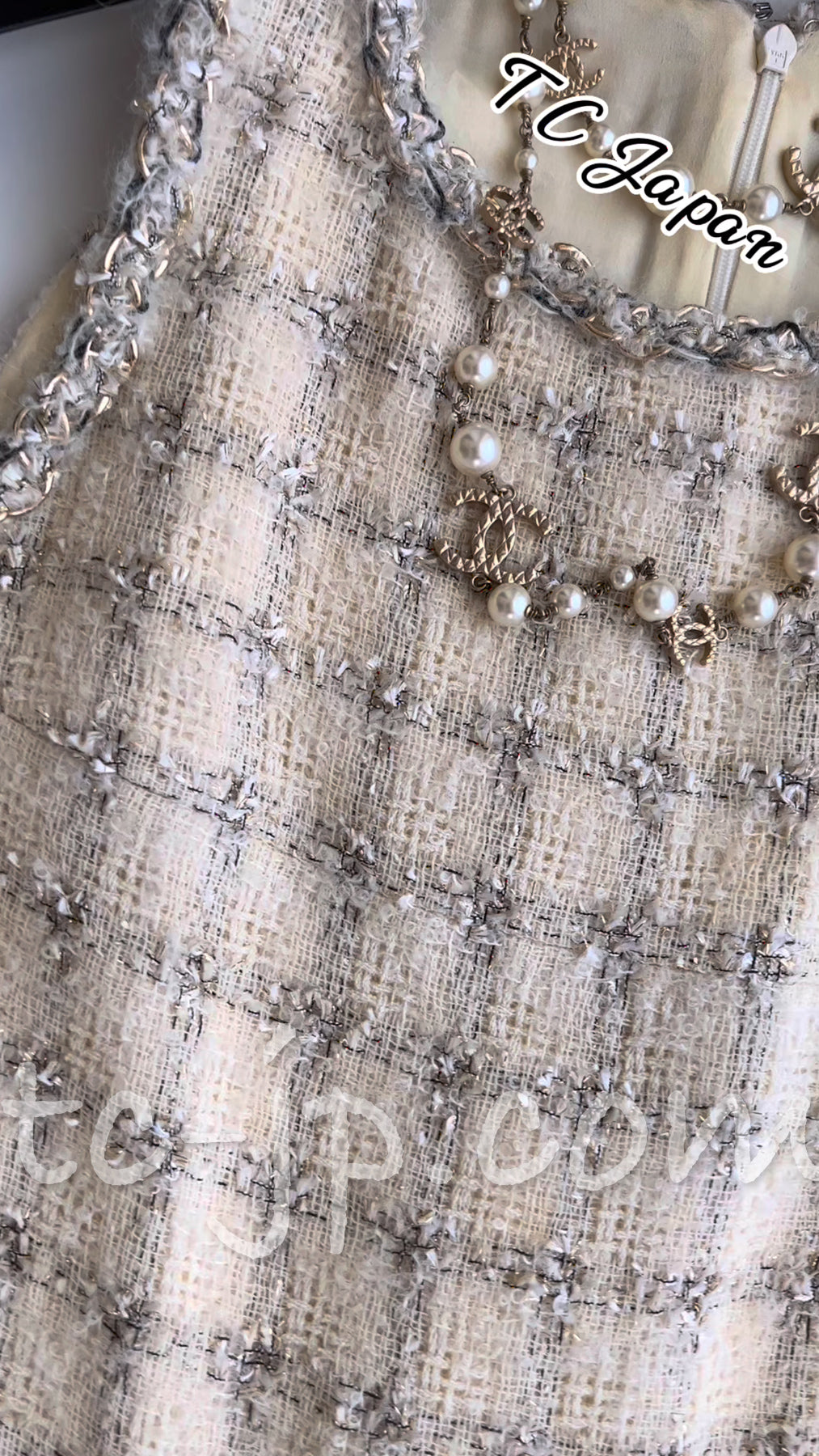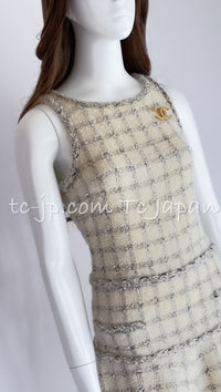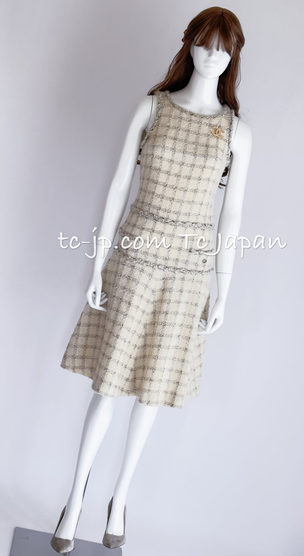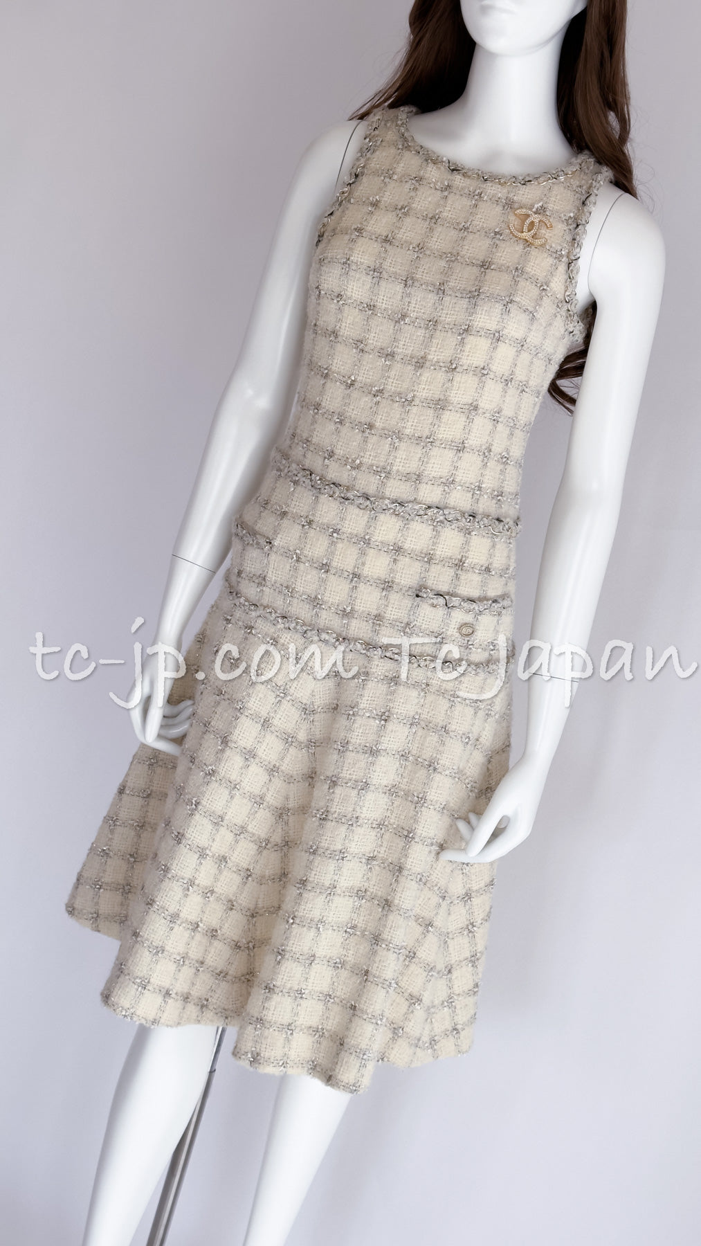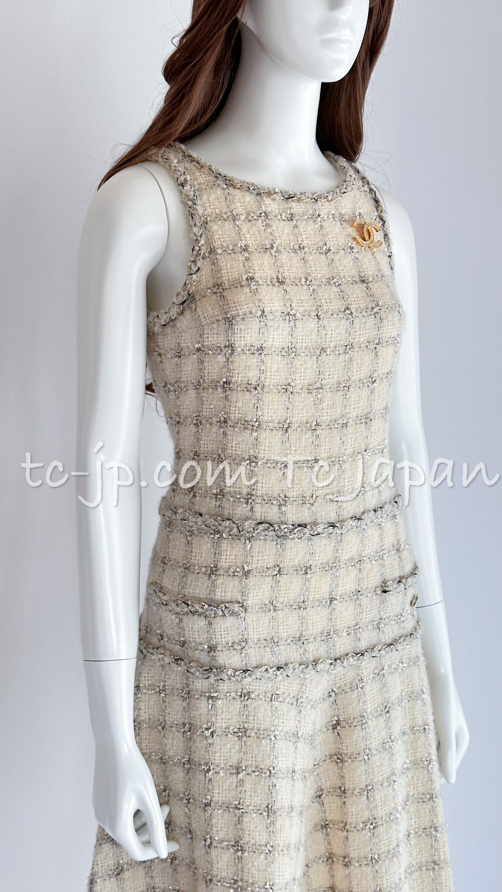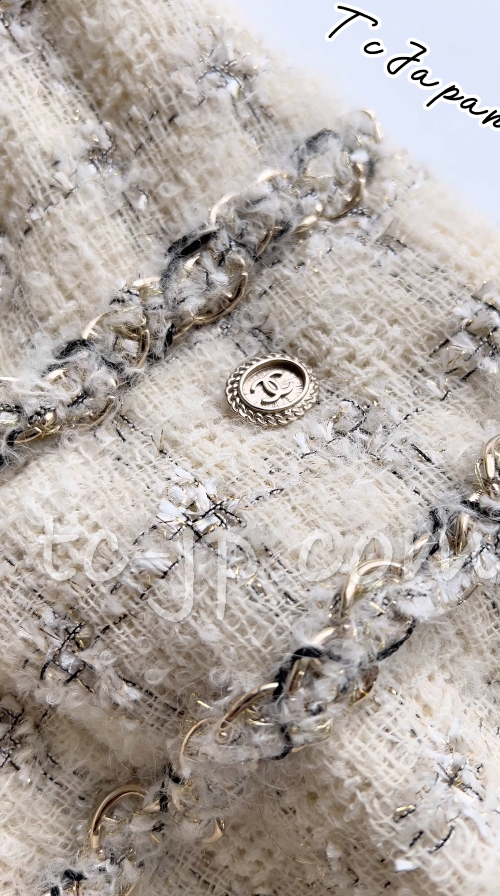 CHANEL 11A $6K Uma Thurman ivory Wool Gold Chain Trimming Dress 34 36 38 シャネル アイボリー ウール チェーン トリム ワンピース 即発