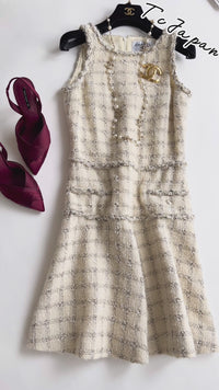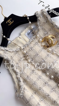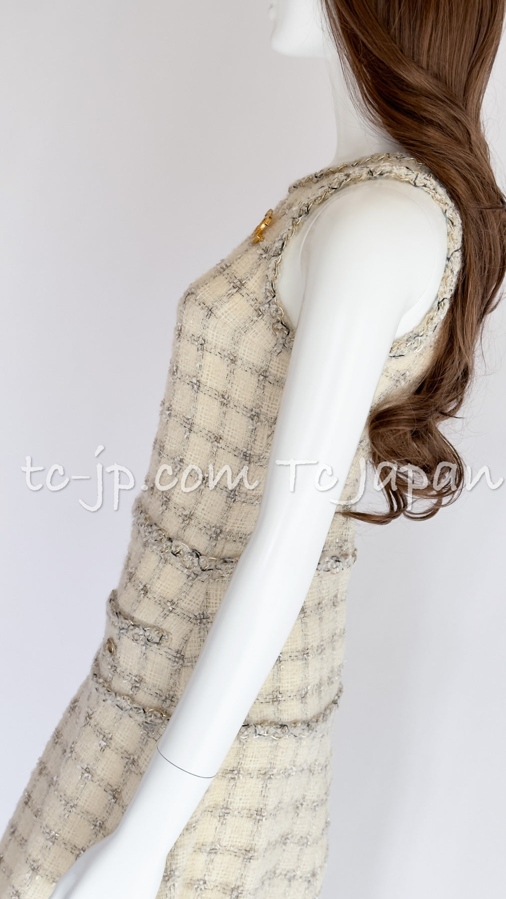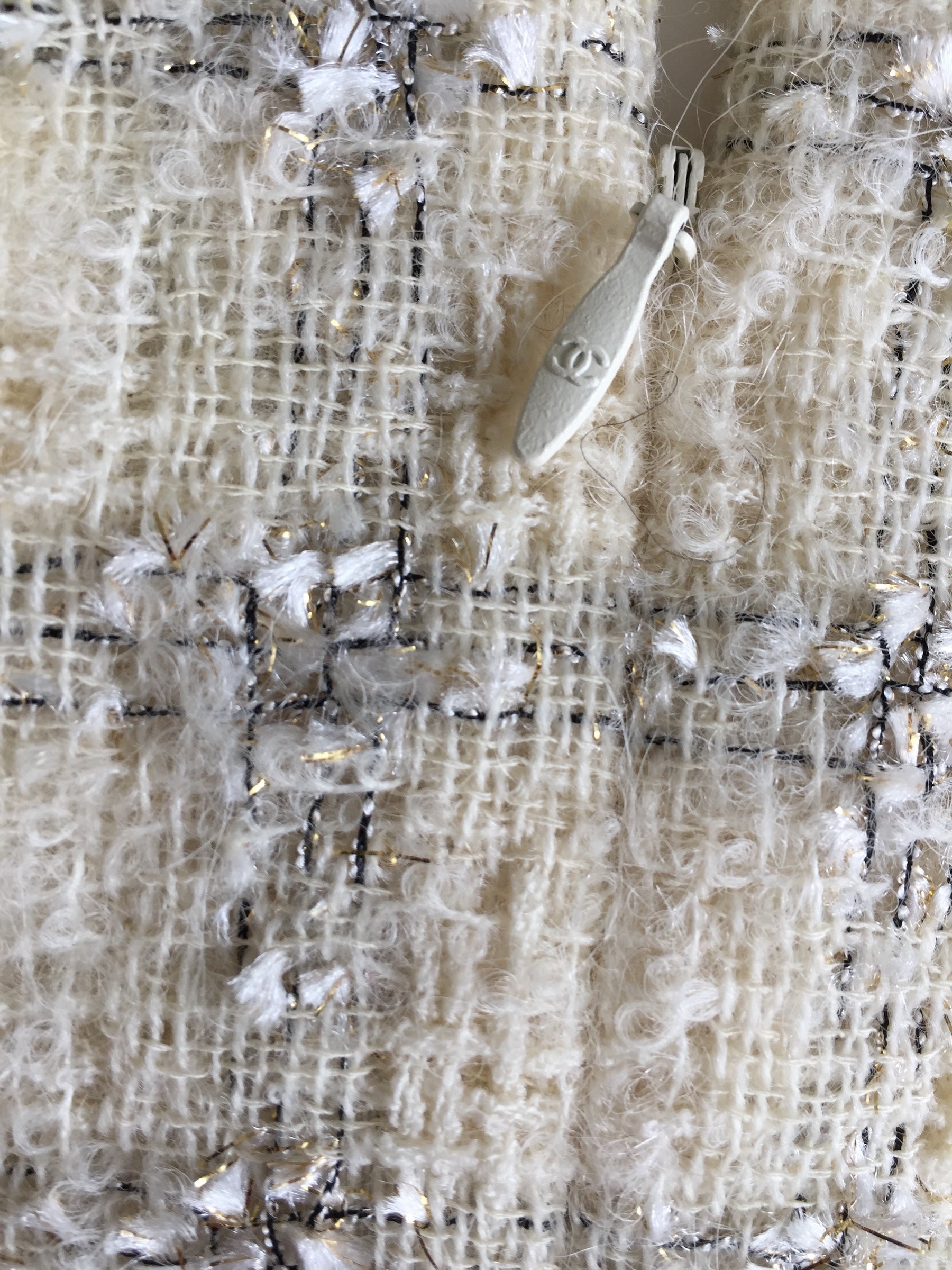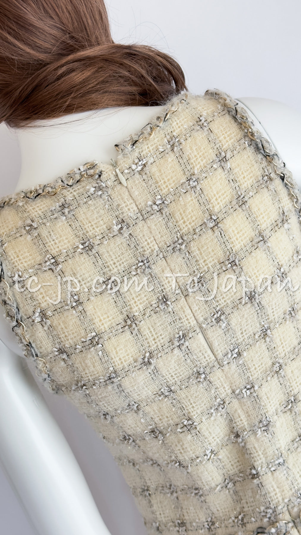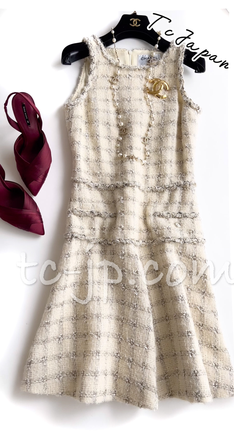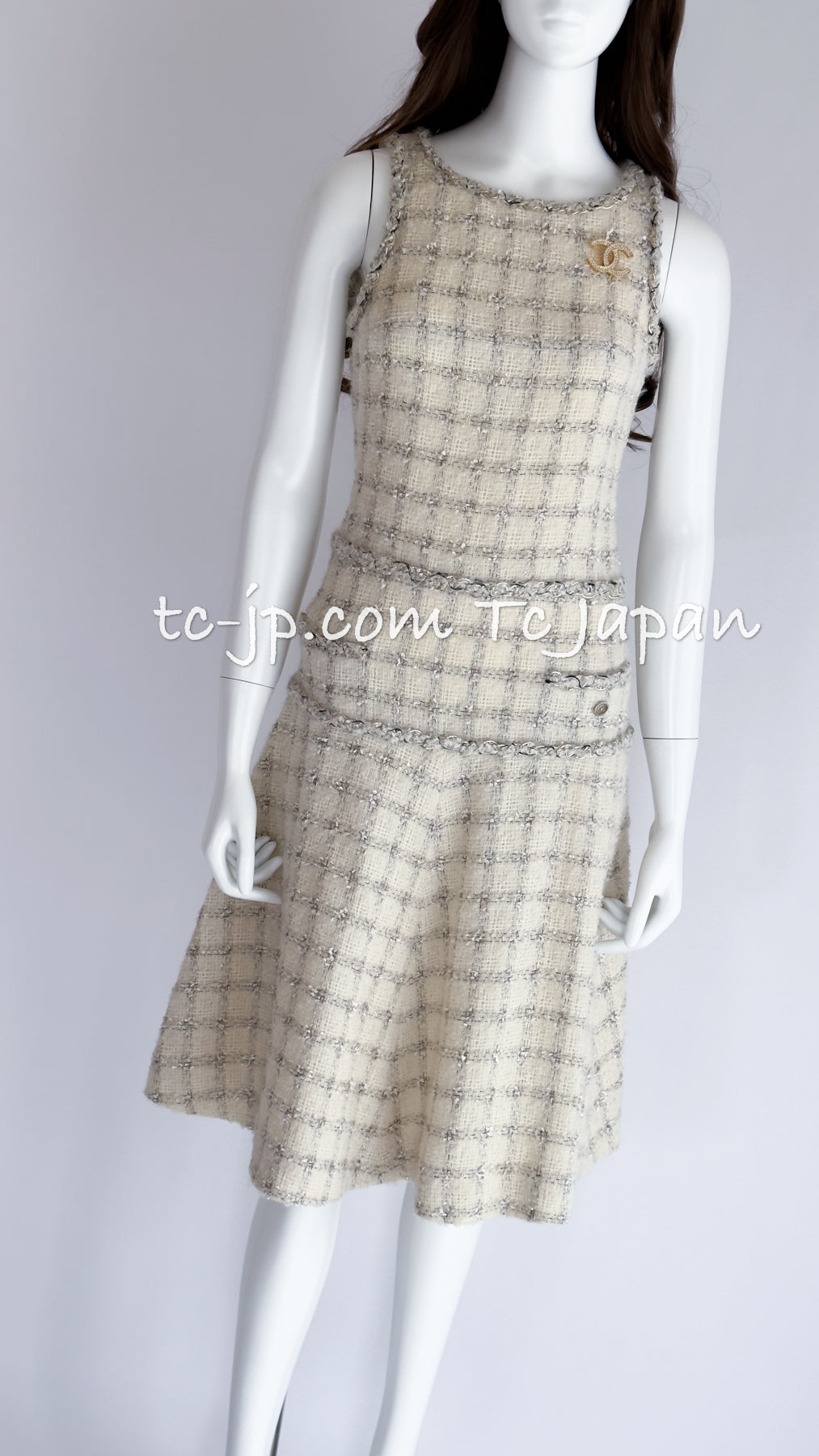 CHANEL 11A $6K Uma Thurman ivory Wool Gold Chain Trimming Dress 34 36 38 シャネル アイボリー ウール チェーン トリム ワンピース 即発