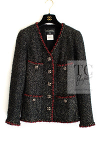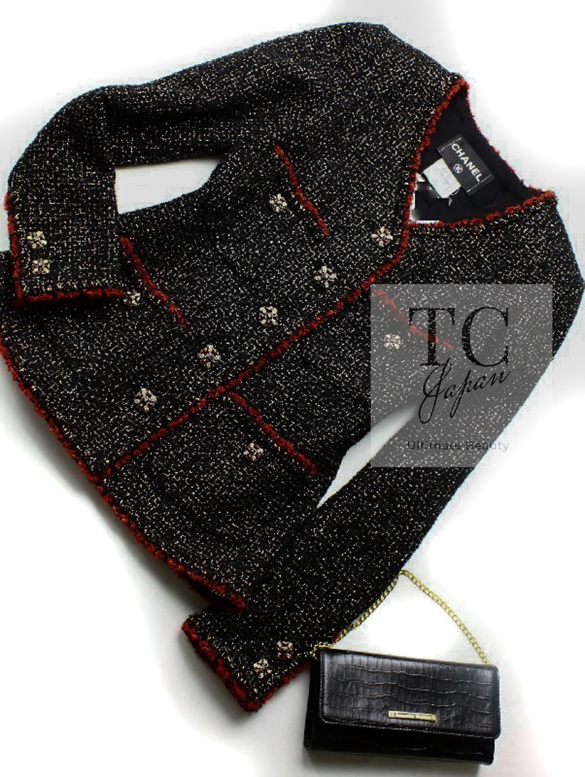 CHANEL 11A Black Red Metallic Fantasy Wool Tweed Jacket 36 38 シャネル ブラック レッド メタリック ファンタジー ウール ツイード ジャケット 即発