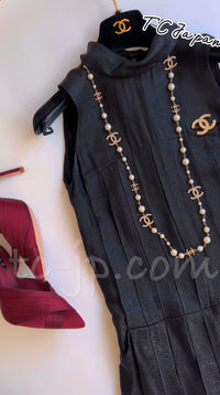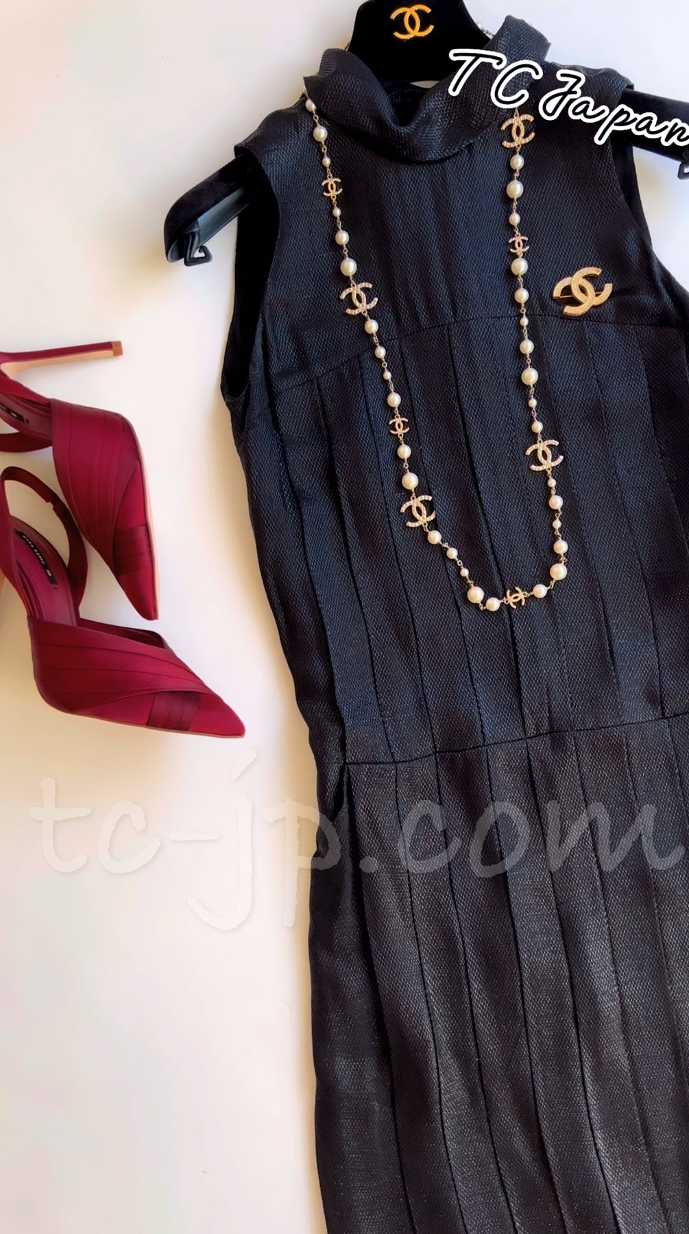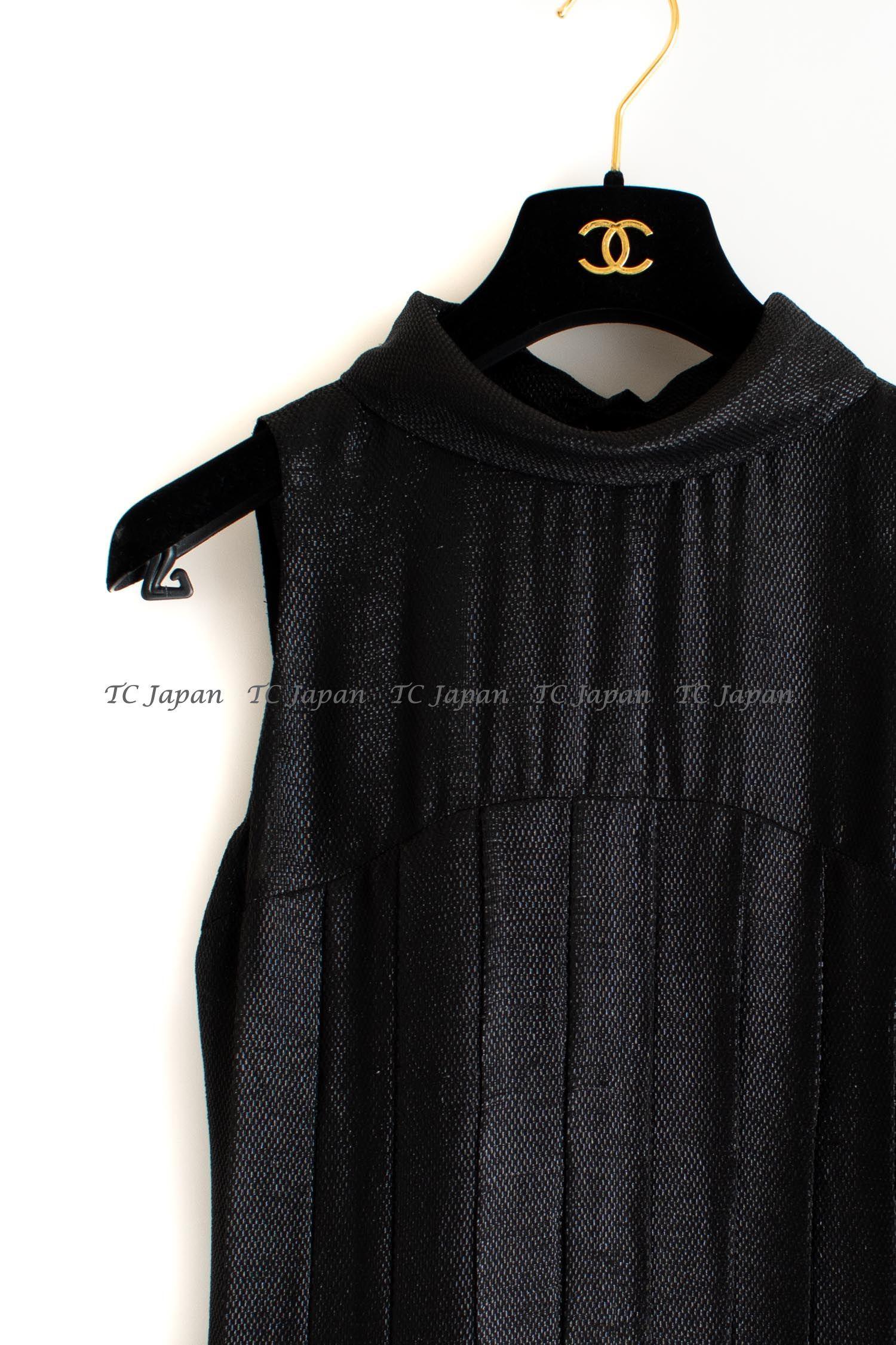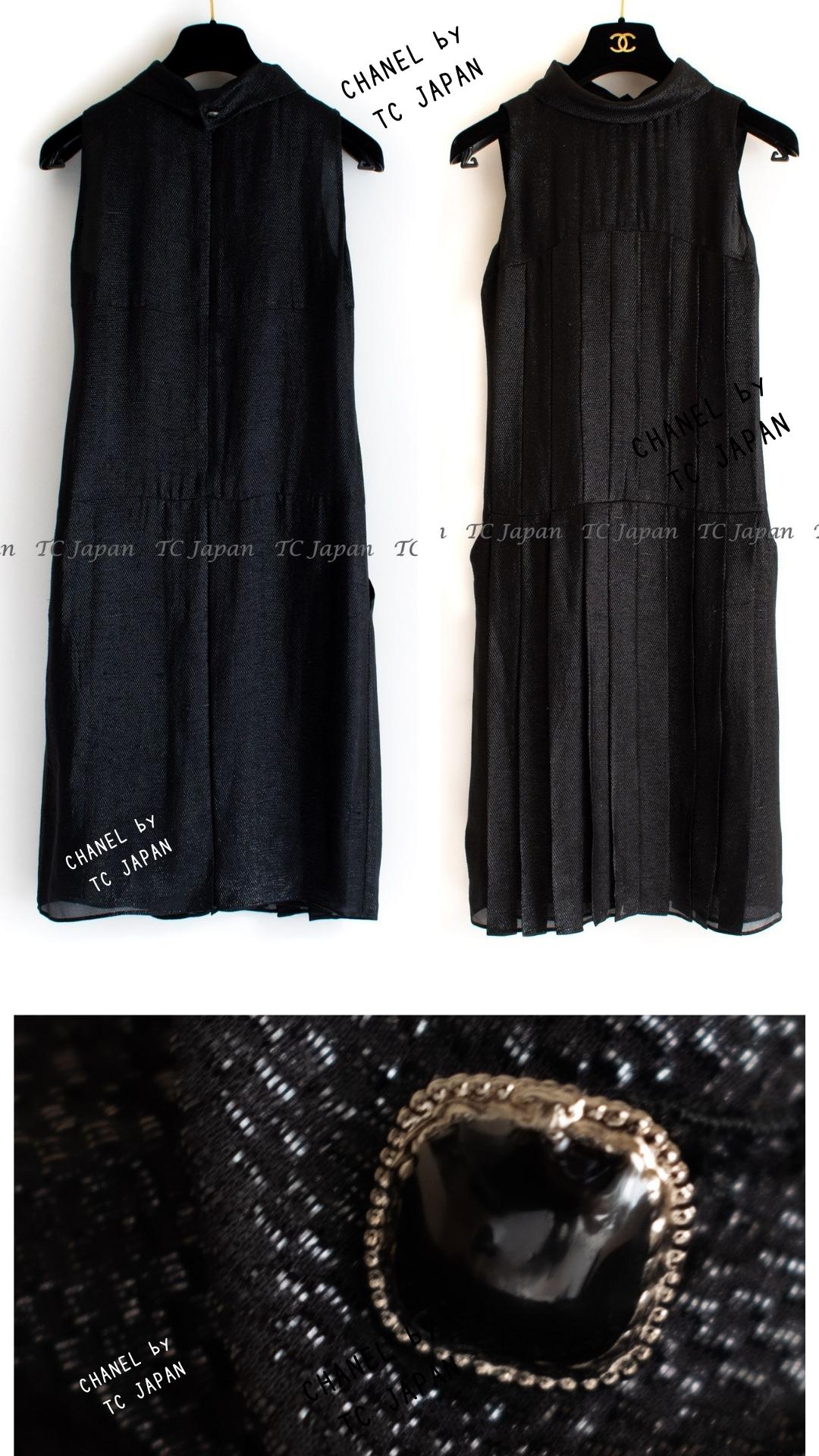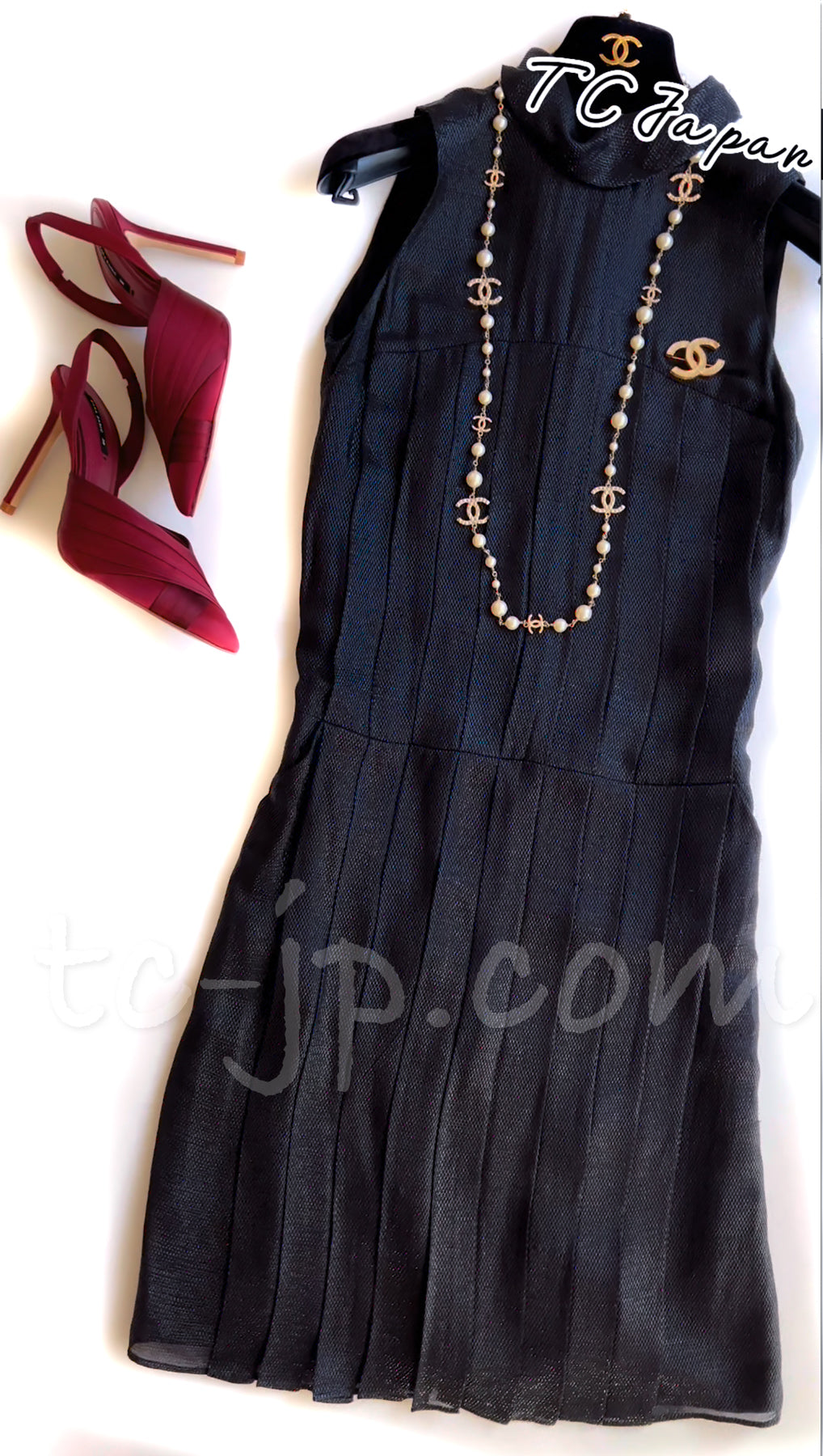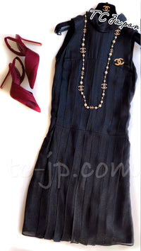 CHANEL 11A Black Silk Blend Shimmer Dress 38 シャネル ラメ プリーツ ブラック・ワンピース ドレス 即発