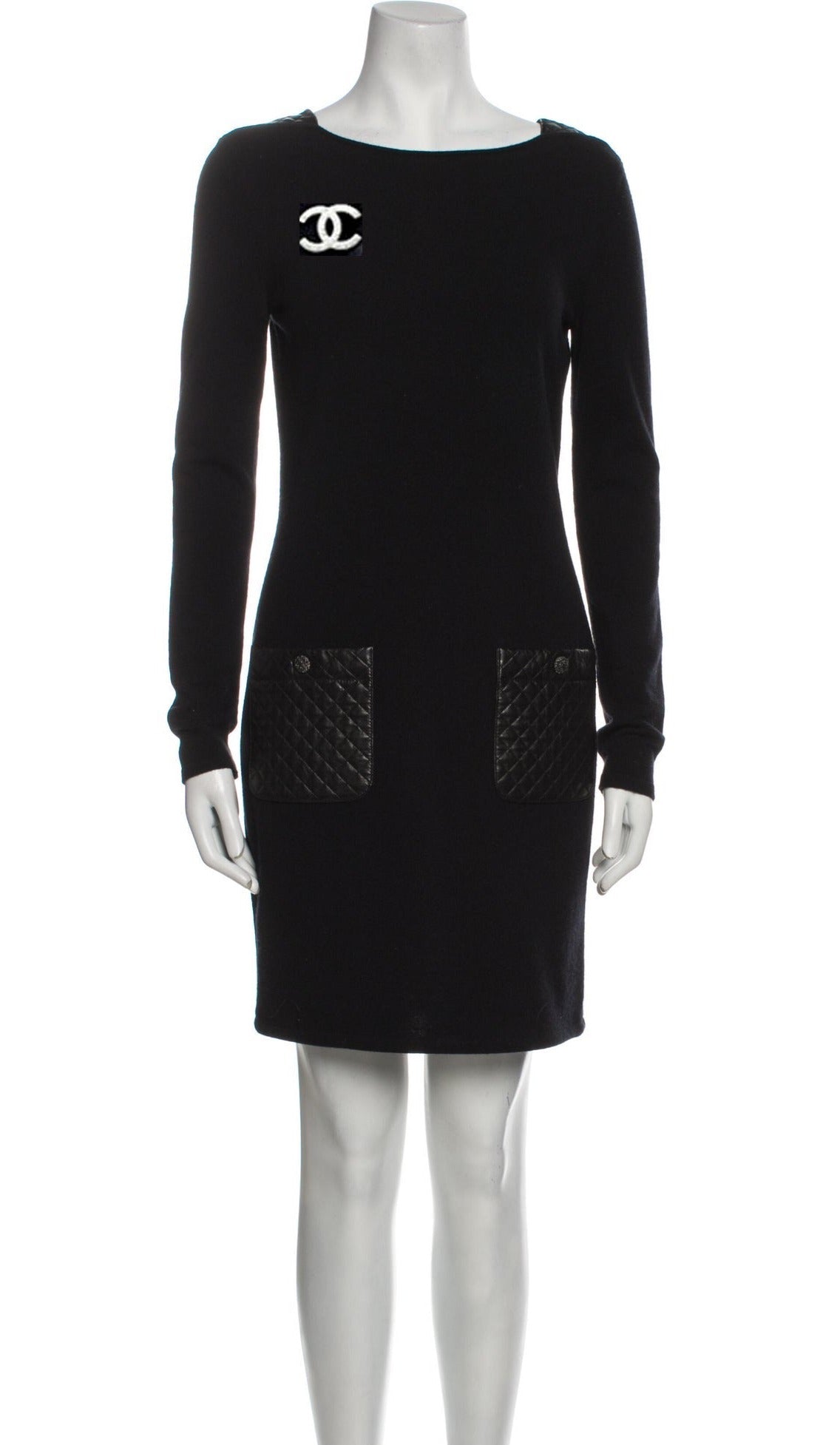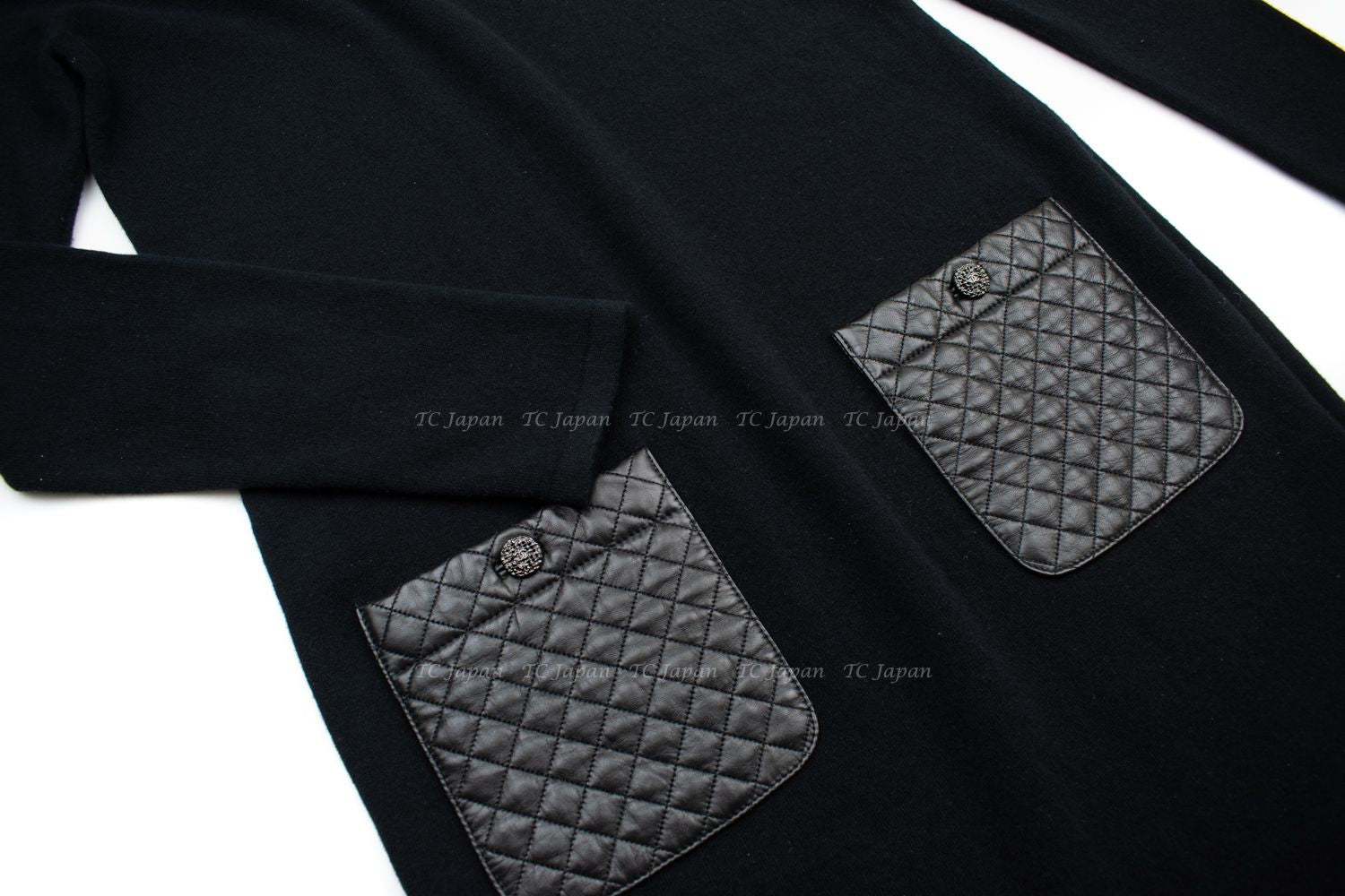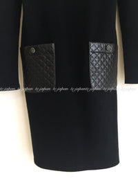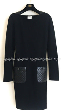 CHANEL 12A Black Wool Cashmere Lambskin Pocket Dress 36 シャネル ブラック ウール カシミア ラムスキン レザー マトラッセ ポケット ワンピース 即発