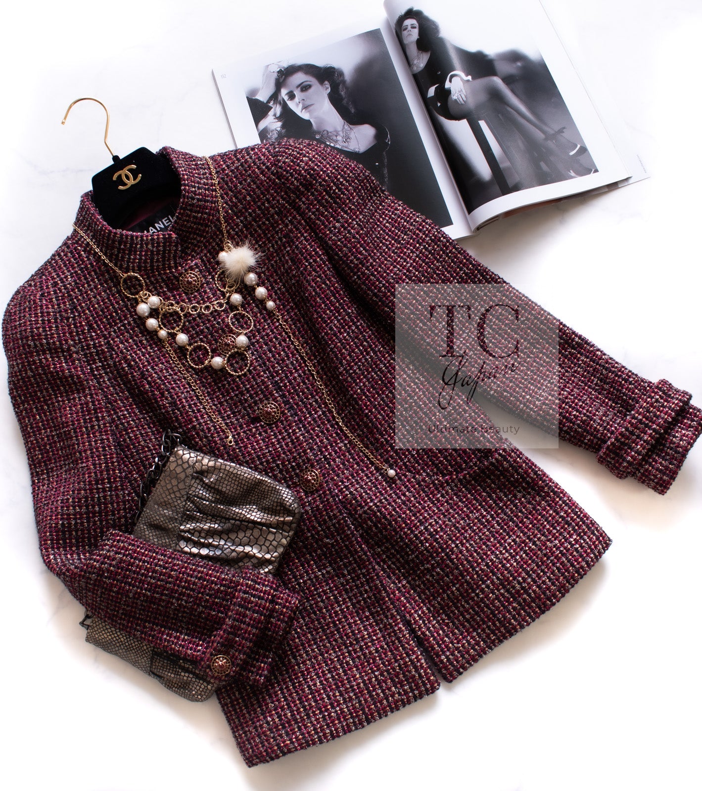 CHANEL 12PF Burgundy Wine Red Griopix Jacket Skirt Suit 34 シャネル バーガンディー ワイン レッド グリポア宝石ボタン ジャケット スカート スーツ 即発