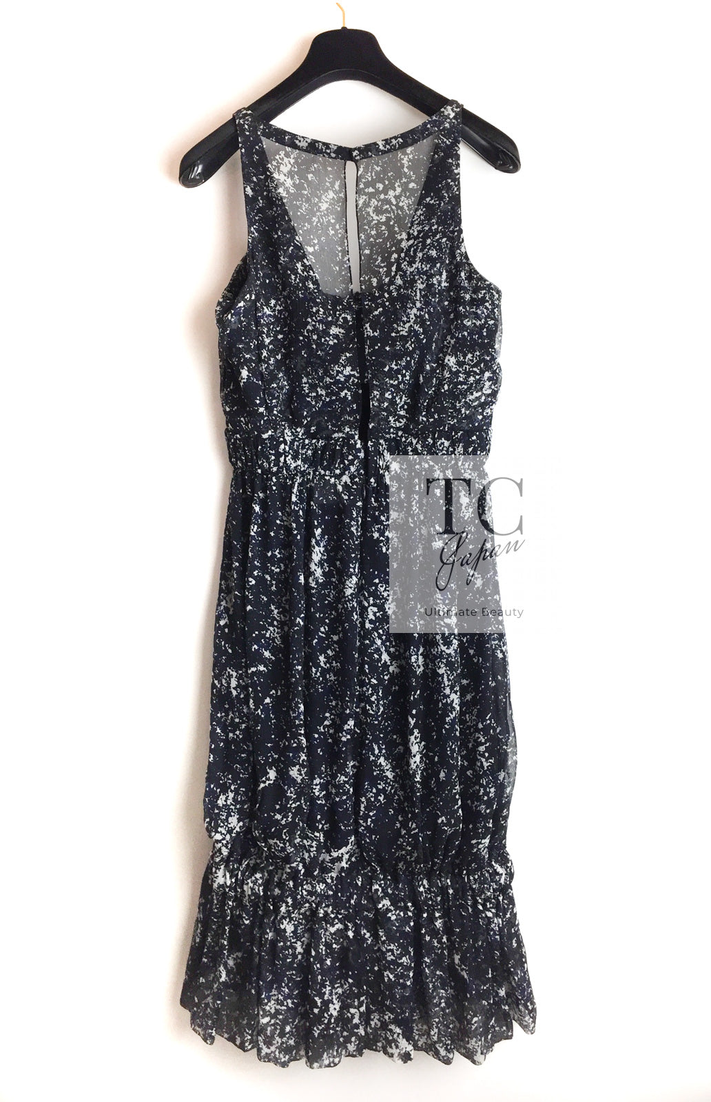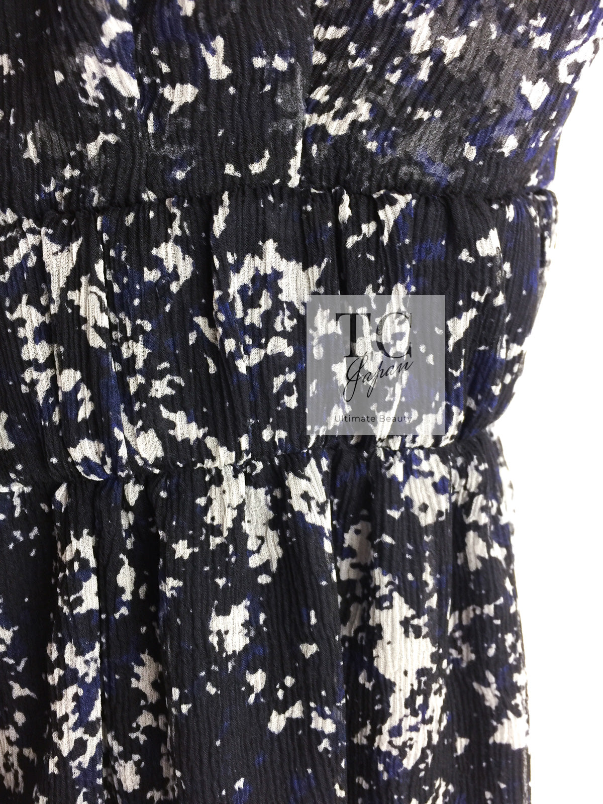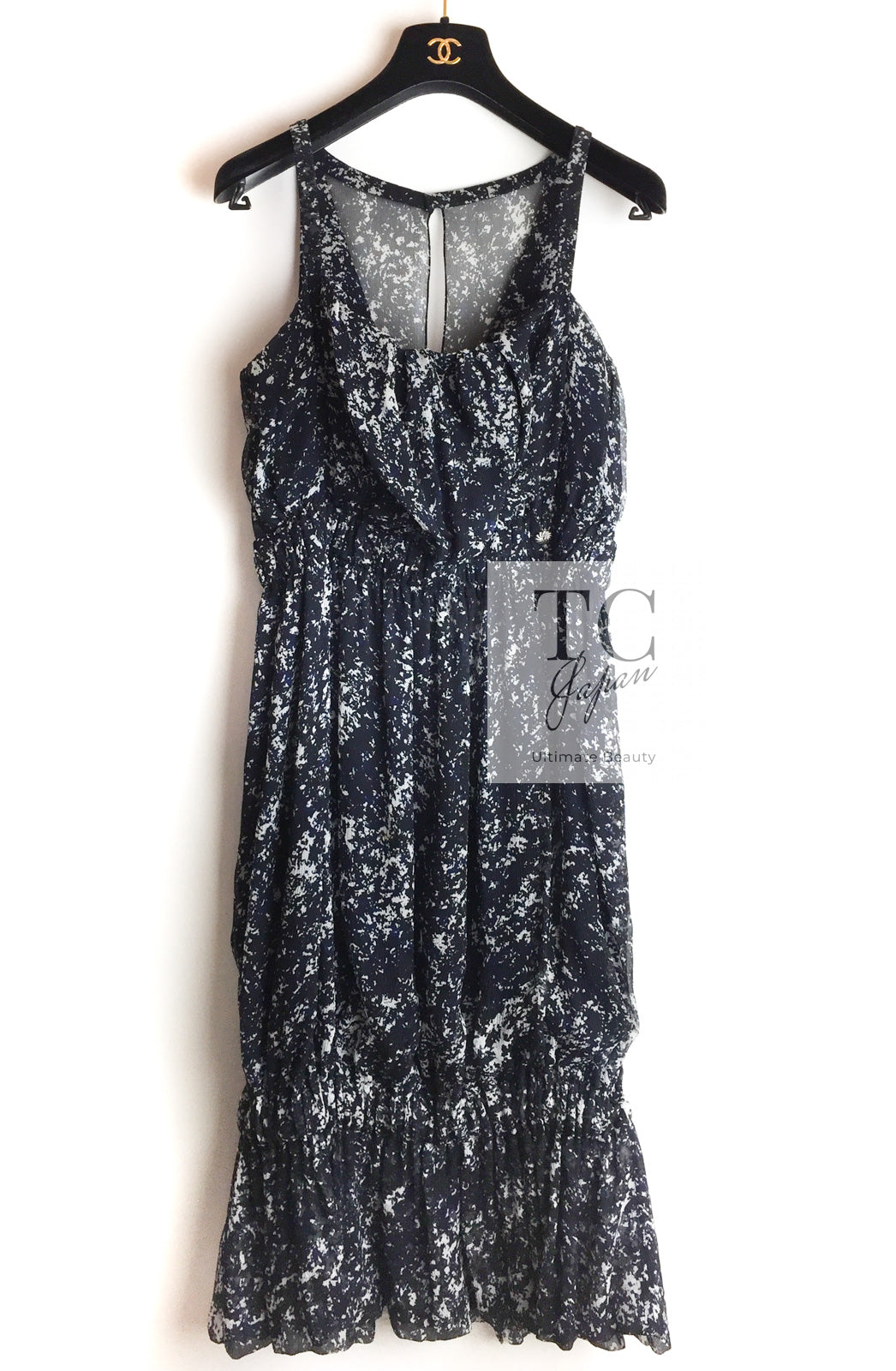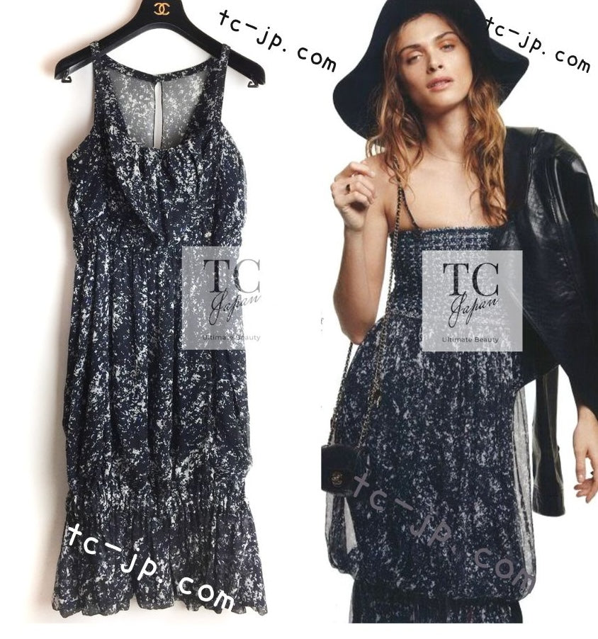 CHANEL 12S Navy Blue Silk Chiffon Dress 40 シャネル ネイビー ブルー 濃紺 シルク シフォン ワンピース 即発