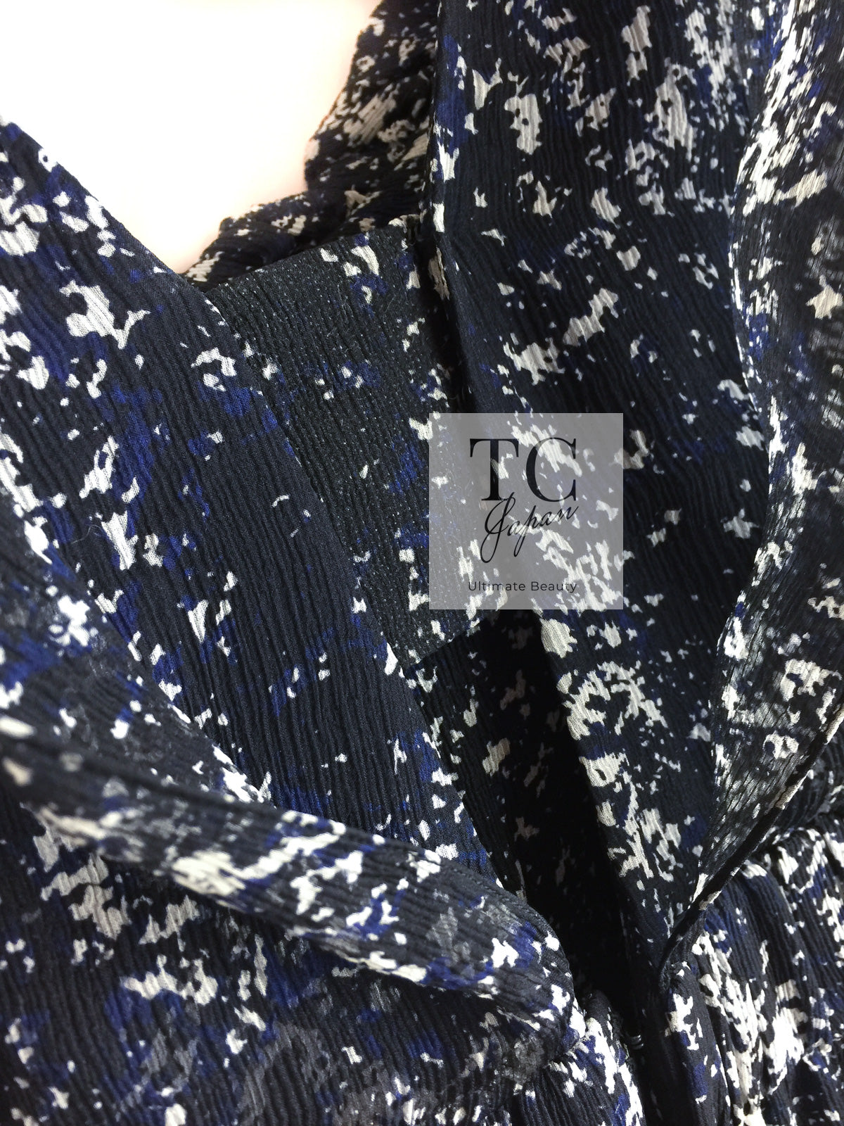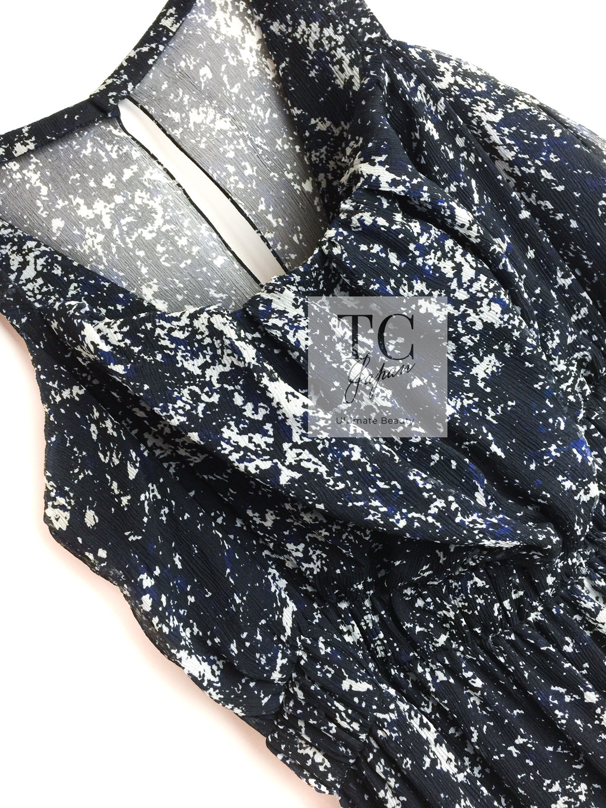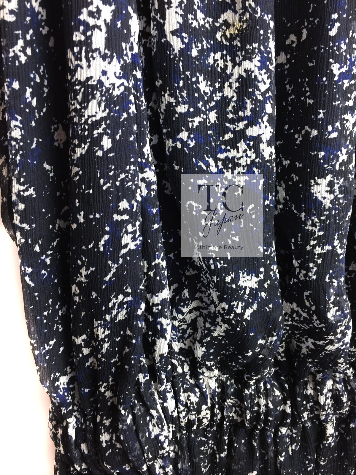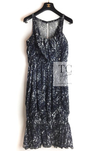 CHANEL 12S Navy Blue Silk Chiffon Dress 40 シャネル ネイビー ブルー 濃紺 シルク シフォン ワンピース 即発