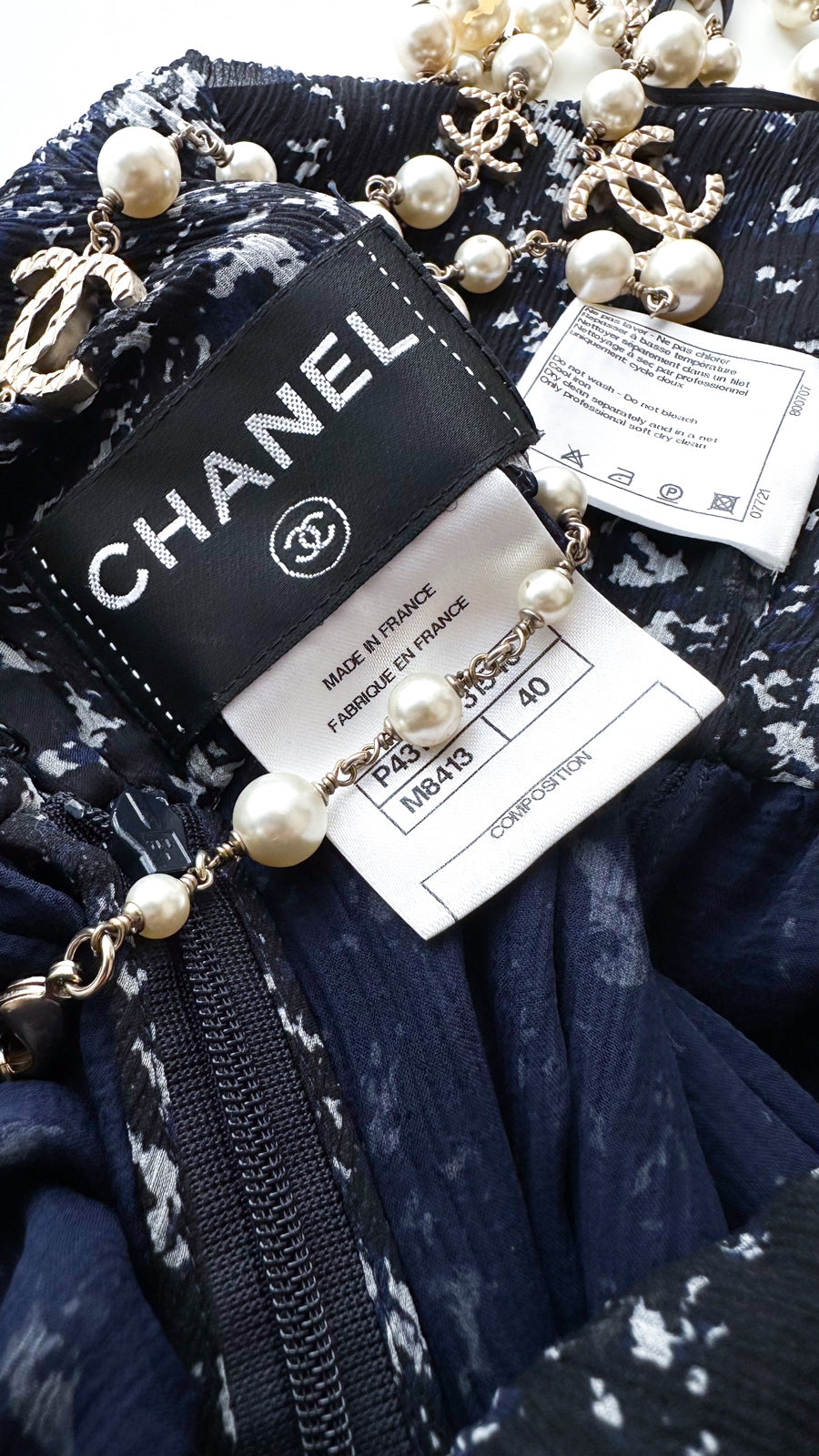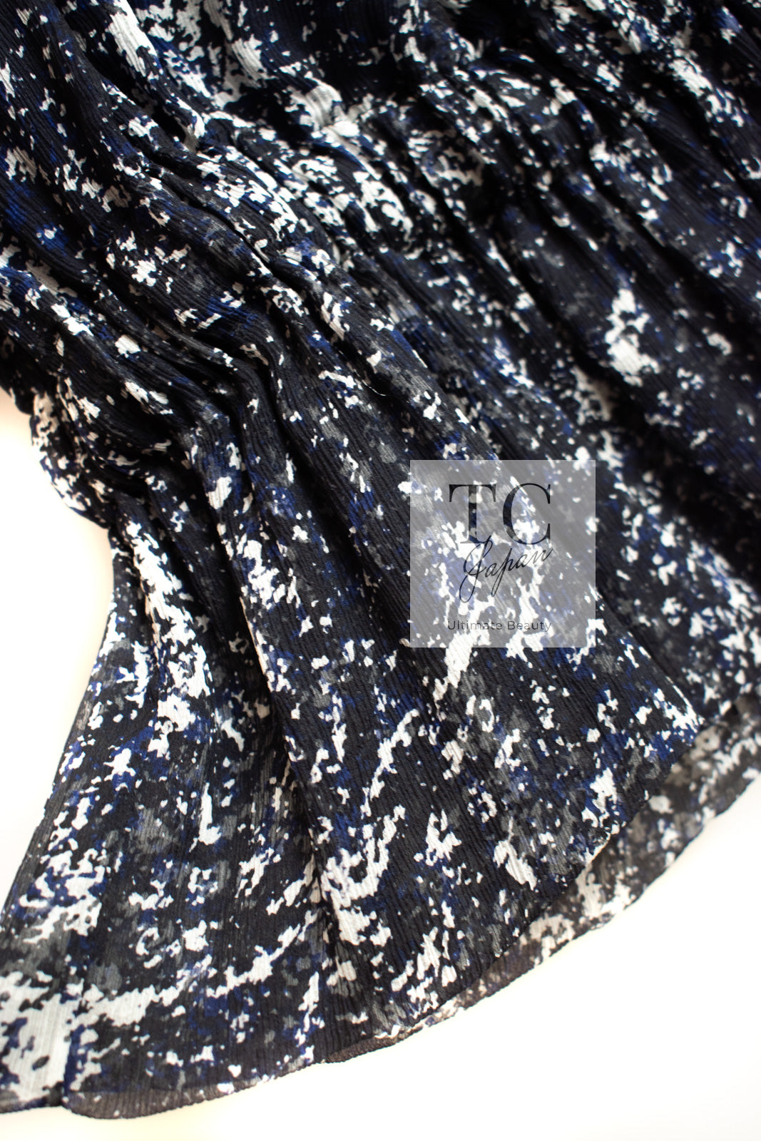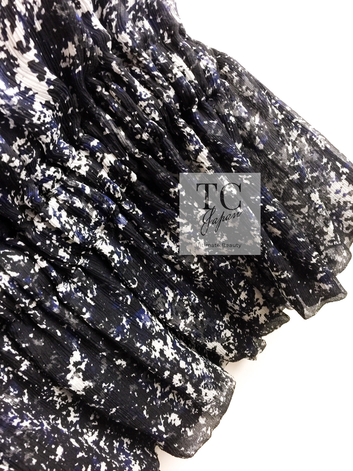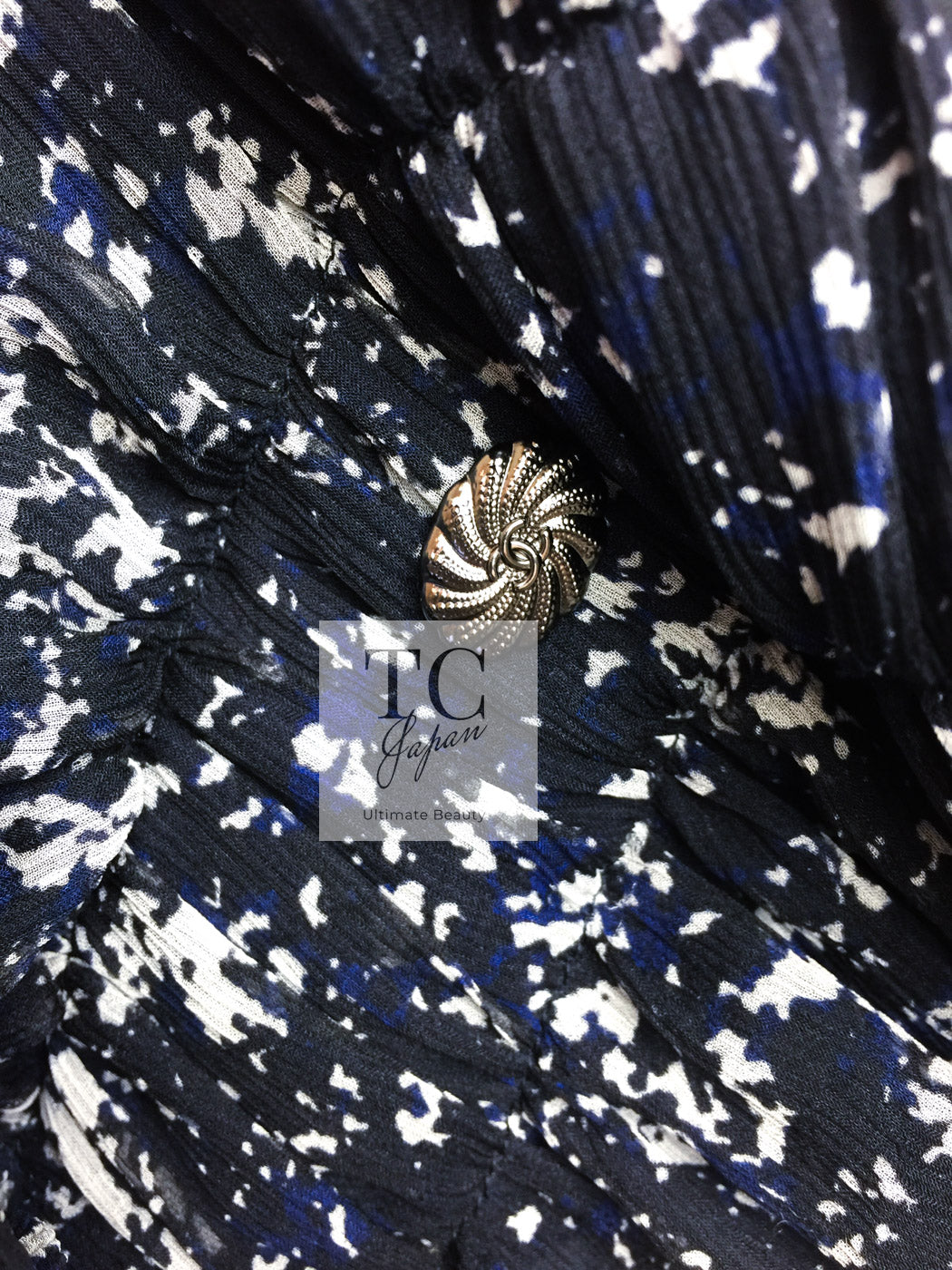 CHANEL 12S Navy Blue Silk Chiffon Dress 40 シャネル ネイビー ブルー 濃紺 シルク シフォン ワンピース 即発