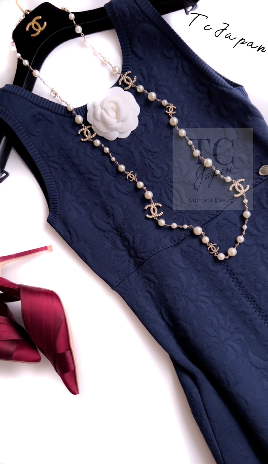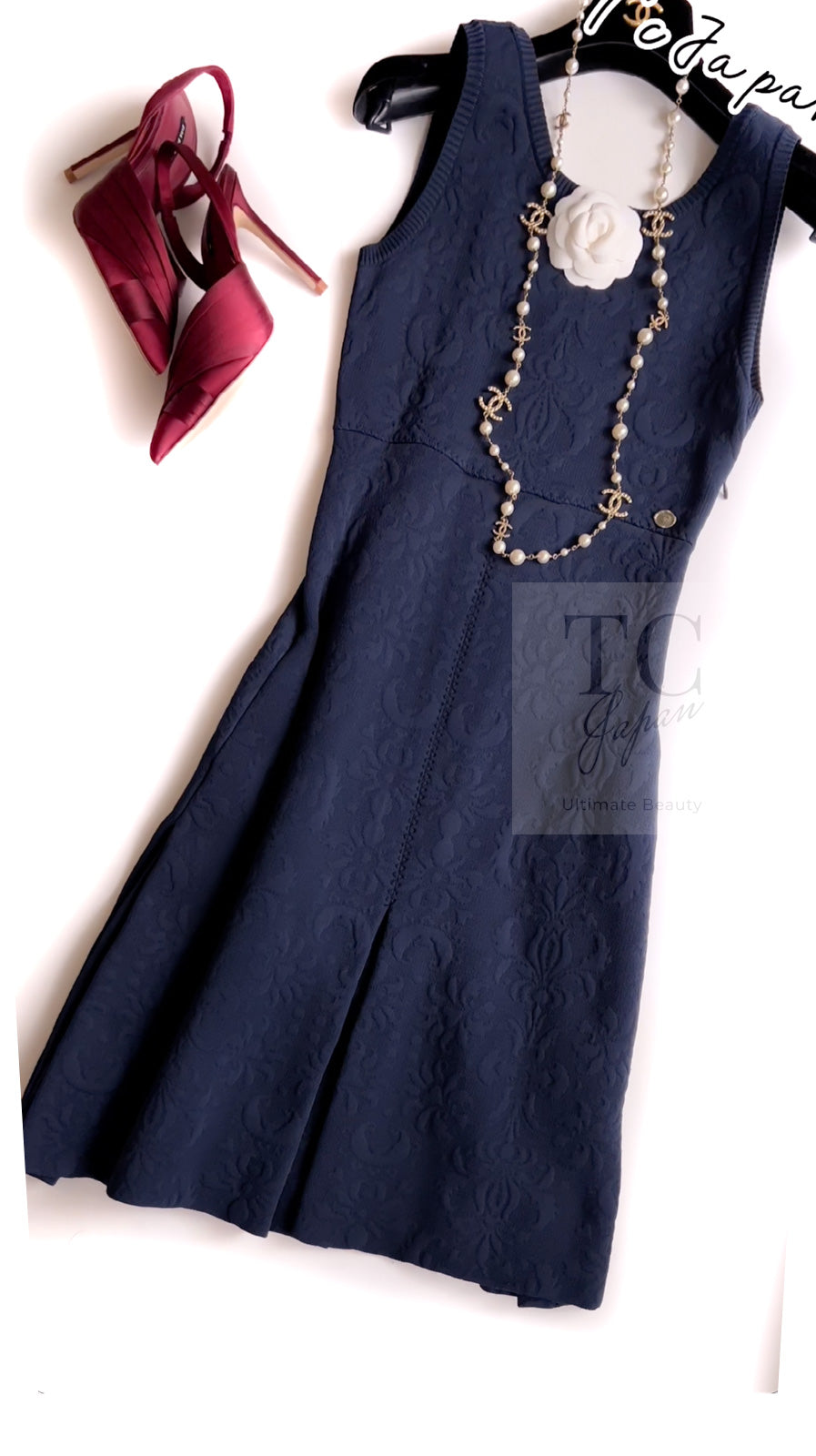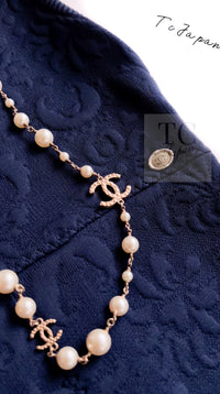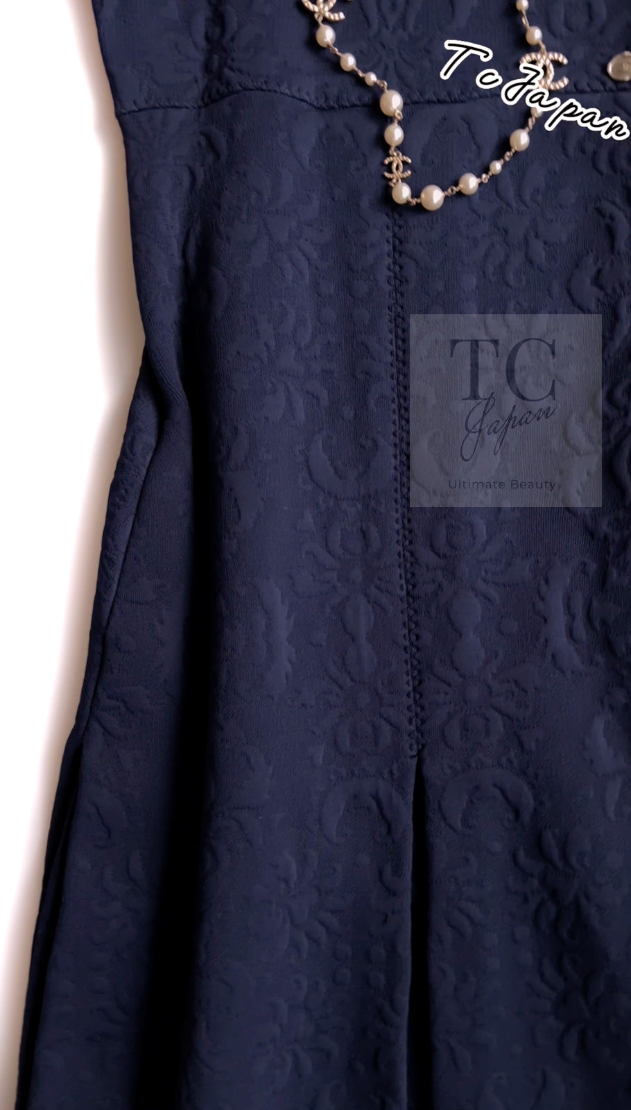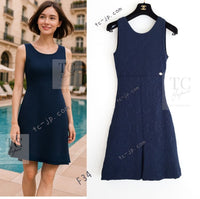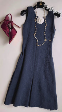CHANEL 13C Versailles Navy Jacquard Sleeveless Dress 34 36 シャネル ベルサイユ ネイビー ジャガード ニット ノースリーブ ワンピース 即発